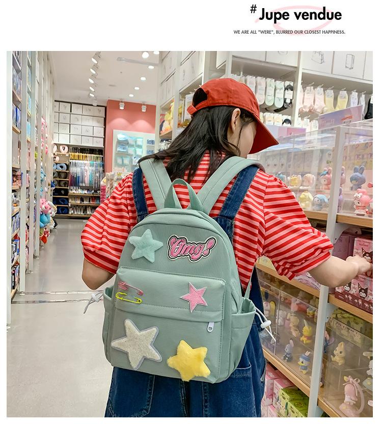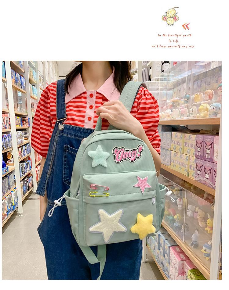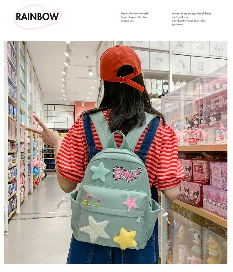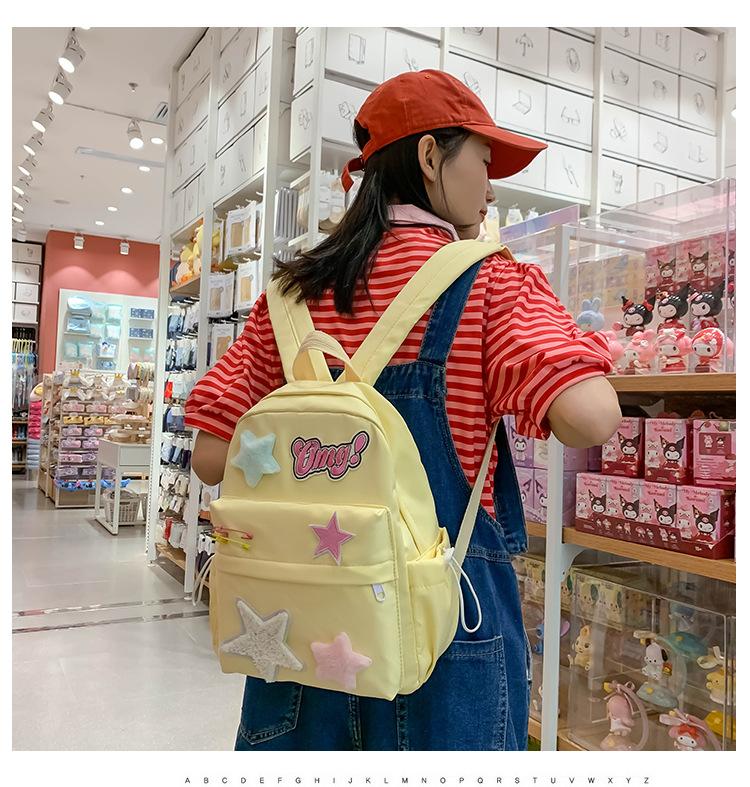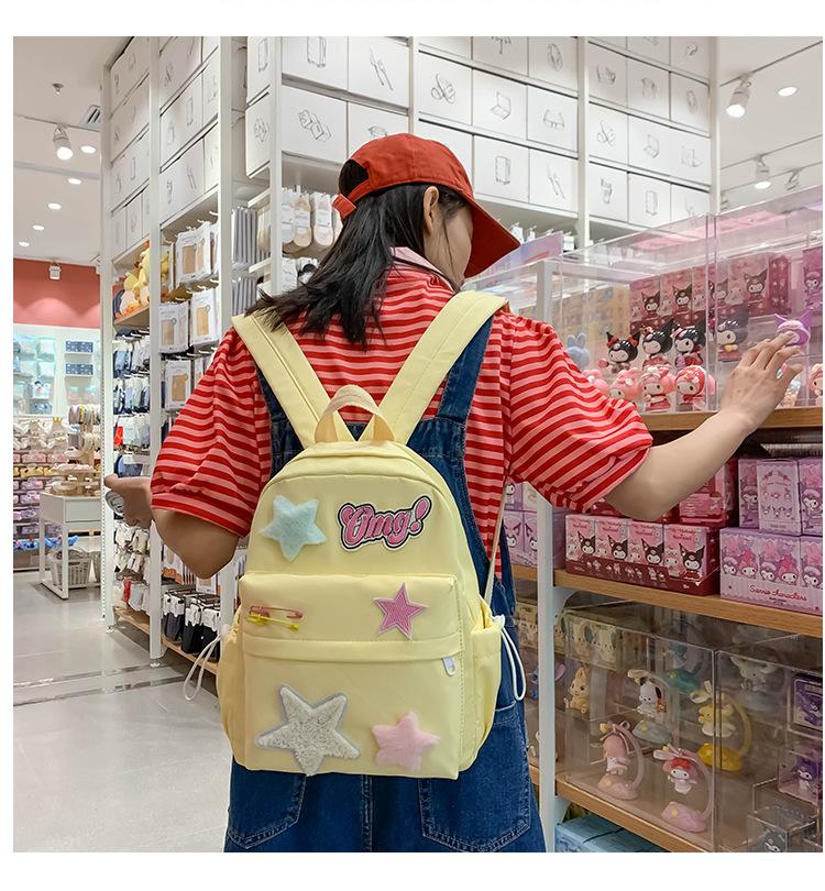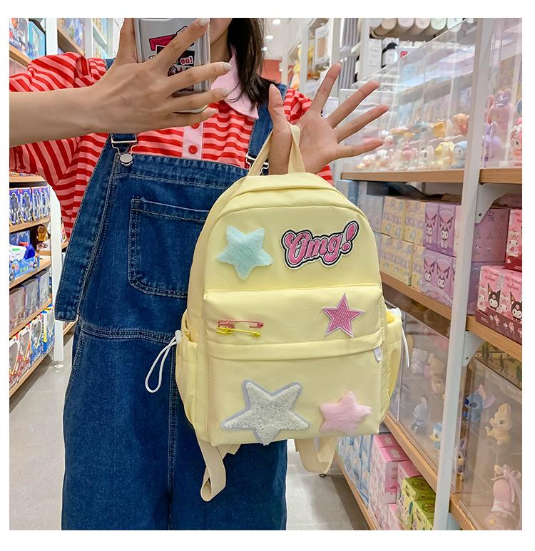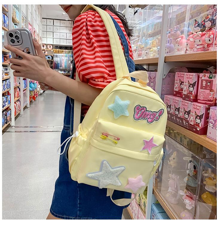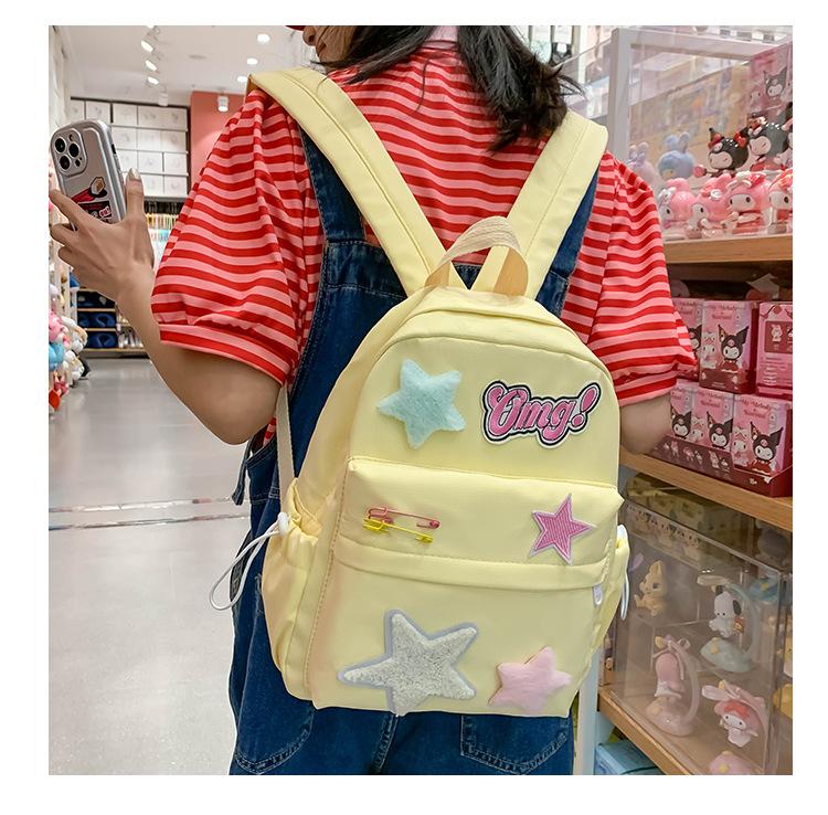 Mochila de campus con diseño de estrella amarilla lechosa, dulce y fresca, con contraste de colores, textura de estudiante de secundaria, para chica atractiva, mochila de gran capacidad para todo tipo de combinaciones