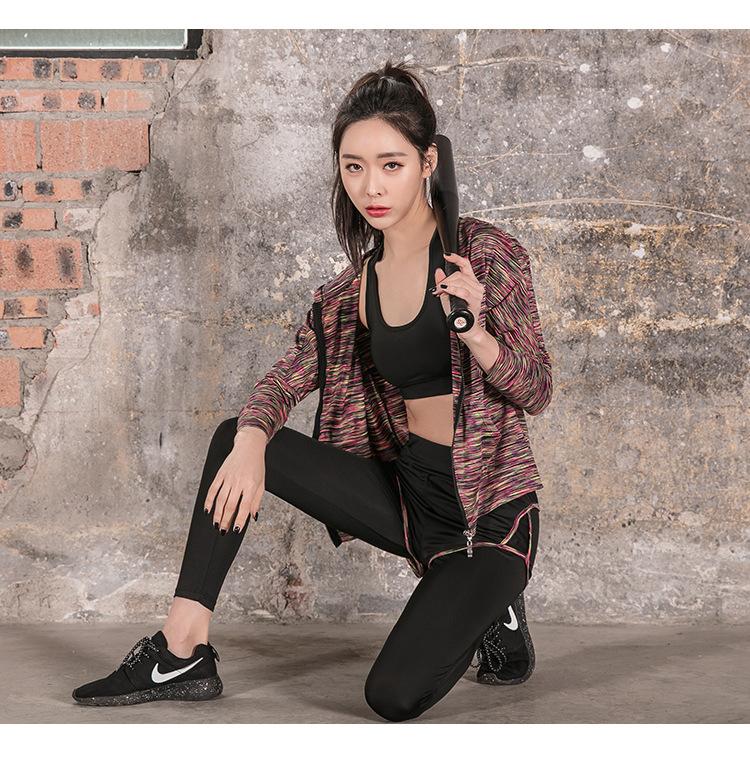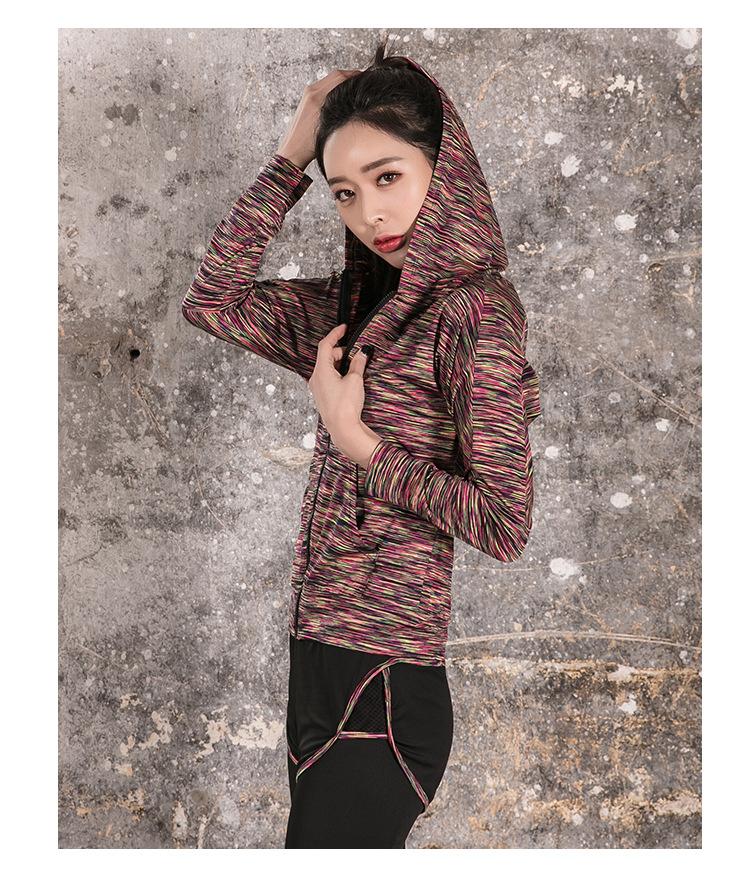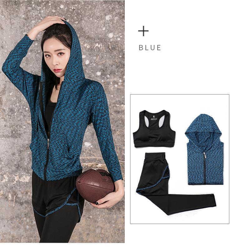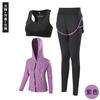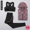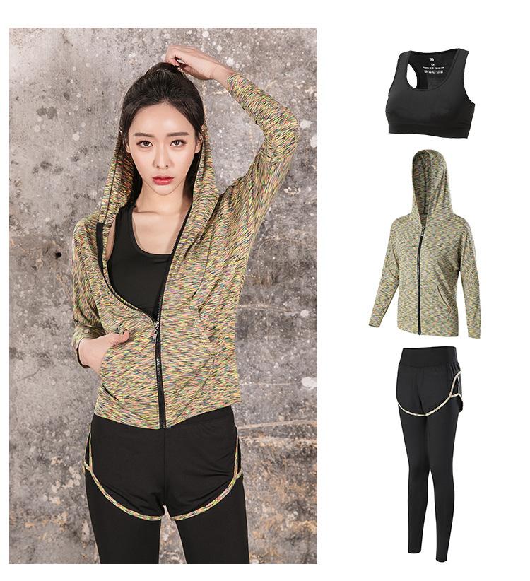 Ropa de yoga, traje de fitness para mujer, primavera y verano, secado rápido, con capucha, chaqueta deportiva para correr, pantalones ajustados de dos piezas falsos, ropa deportiva