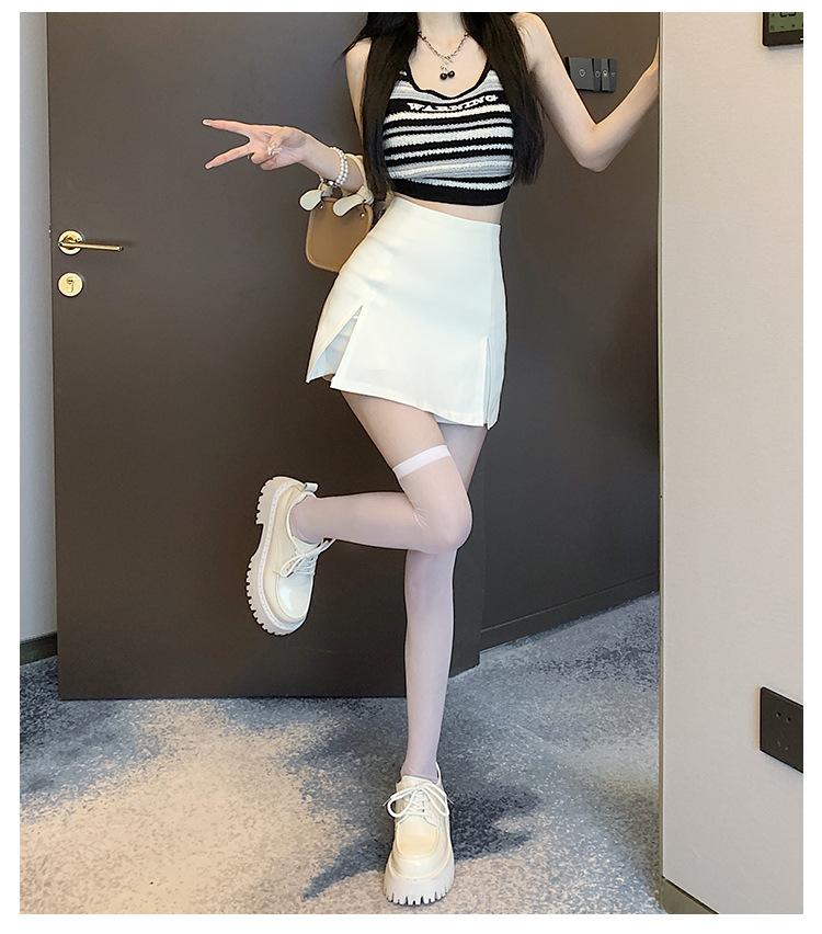 Falda de dos lados con abertura pequeña para mujer, talla grande, verano 2024, nueva falda que combina con todo, falda de cintura alta, línea A