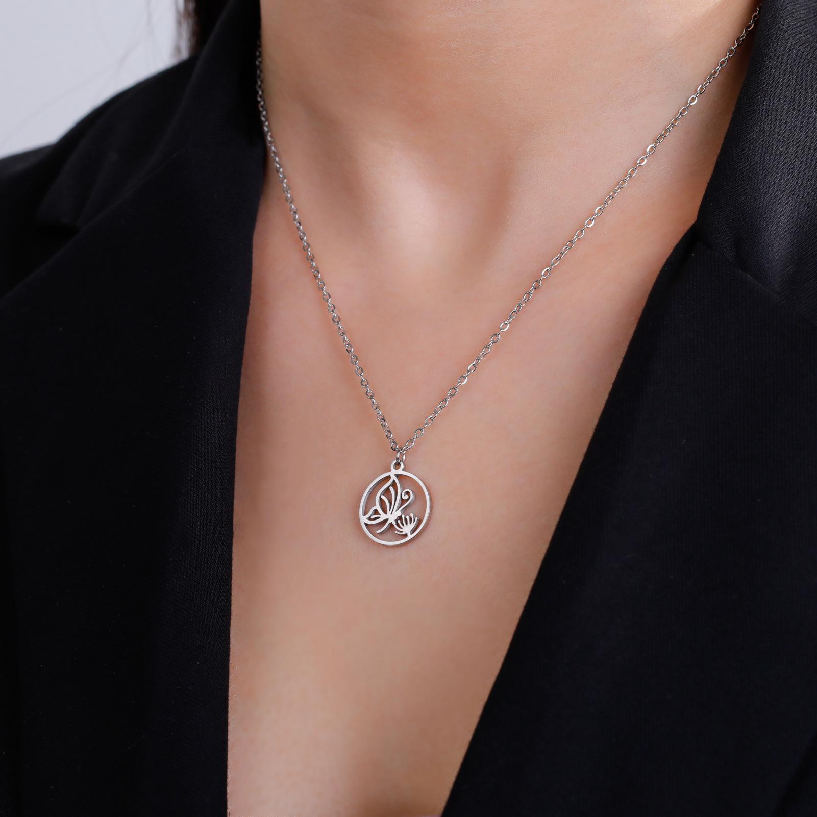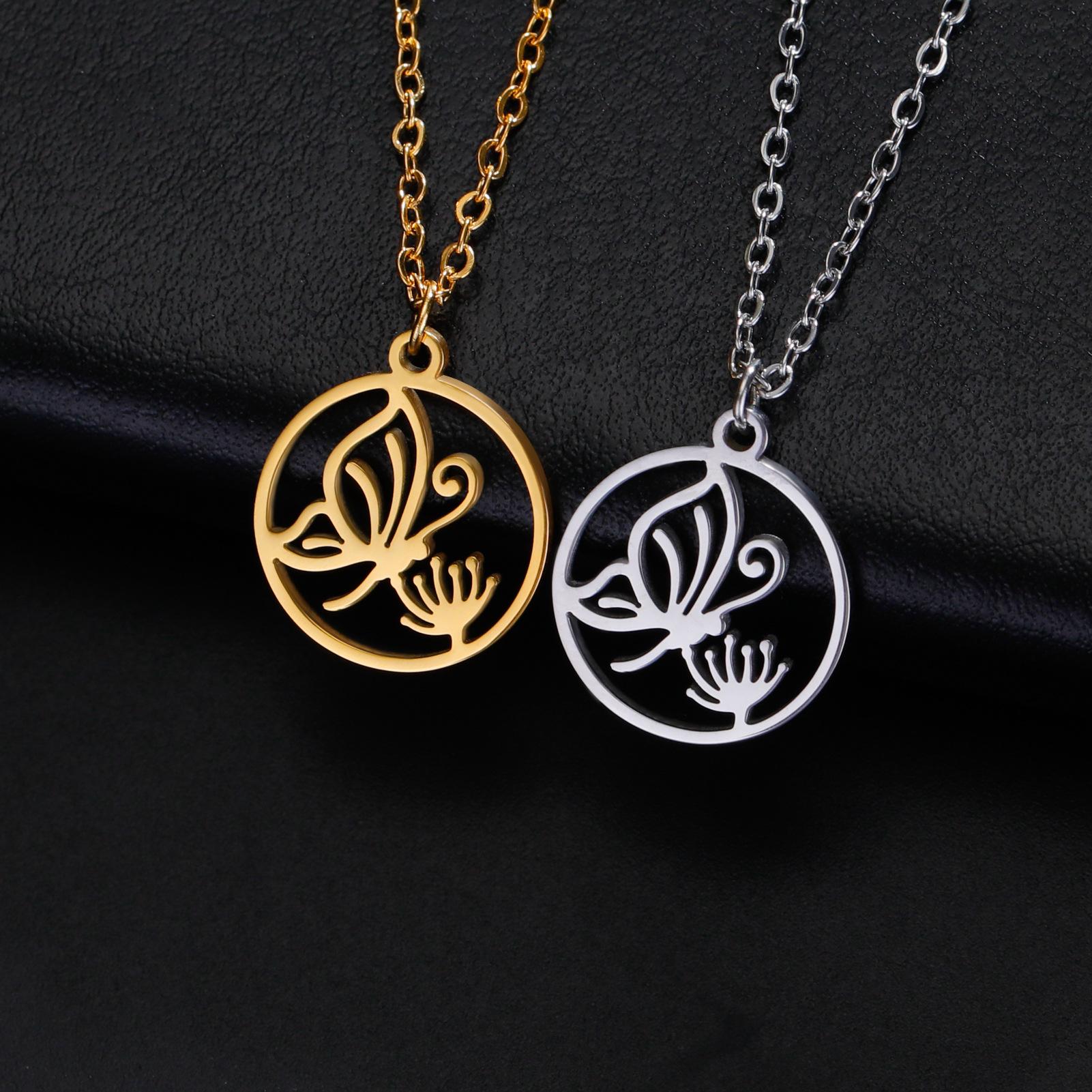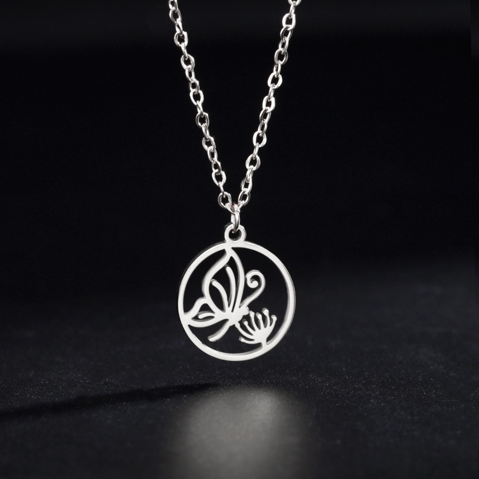 Collar de acero de titanio de venta caliente transfronteriza de comercio exterior, collar de mariposa para mujer, colgante de mariposa personalizado, collar de acero inoxidable
