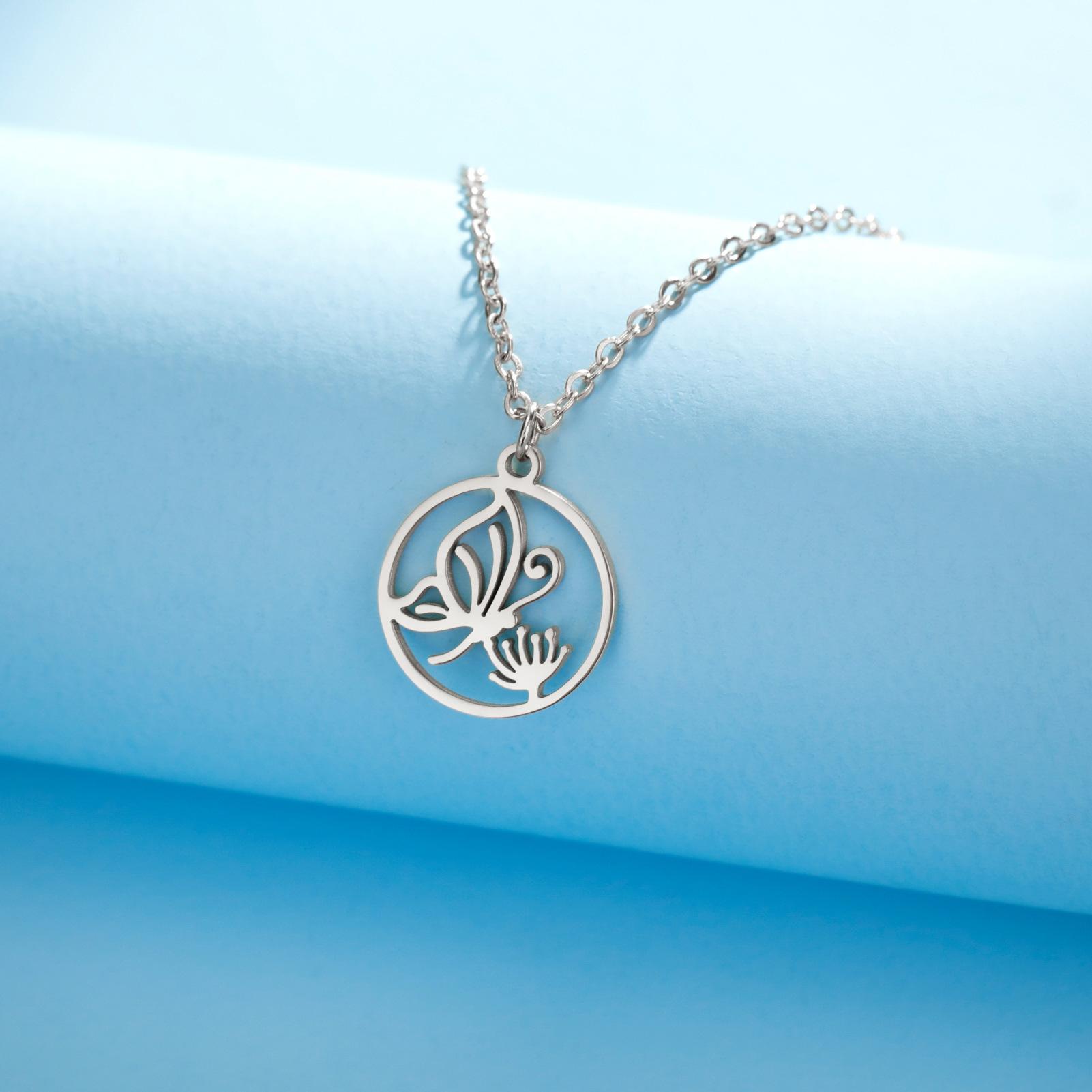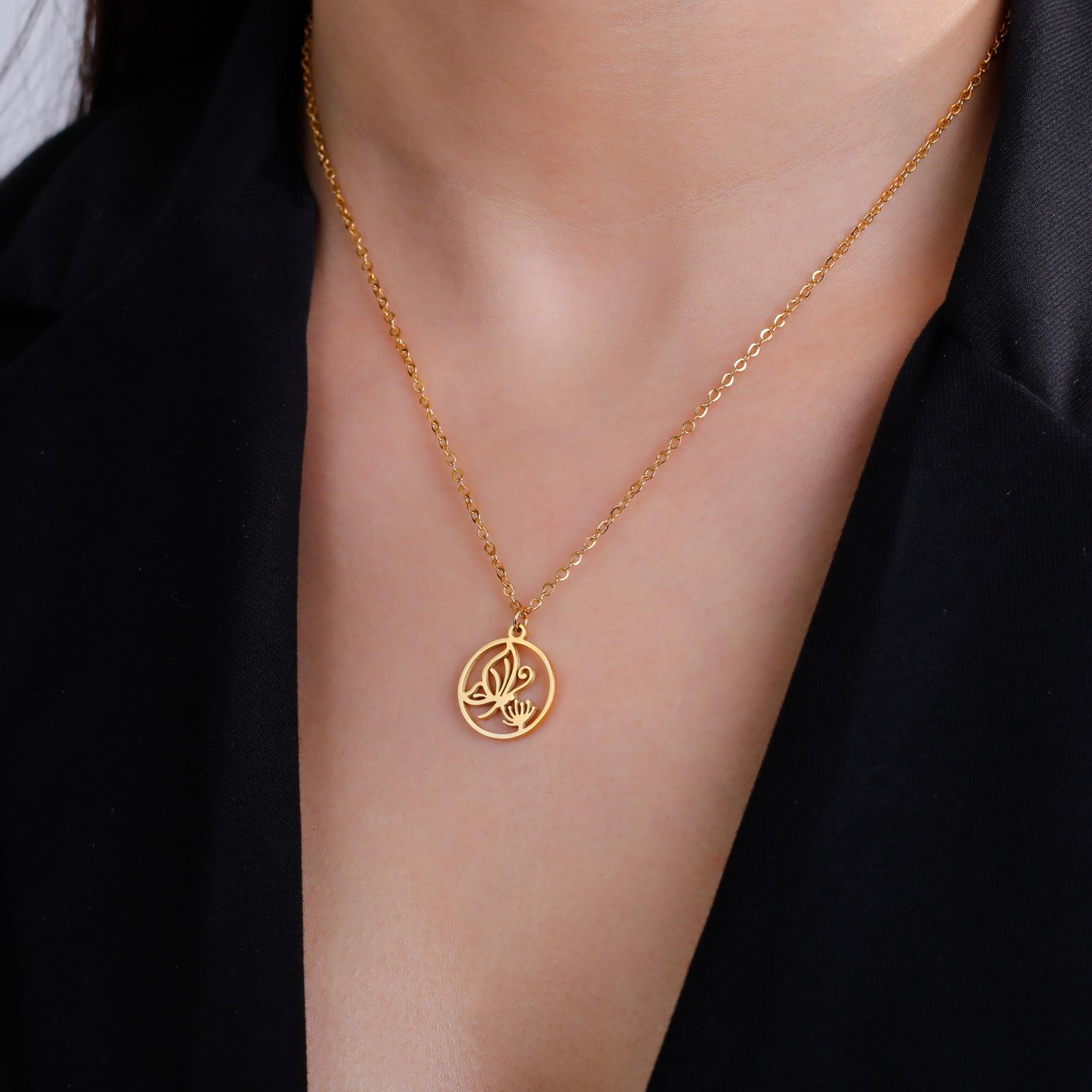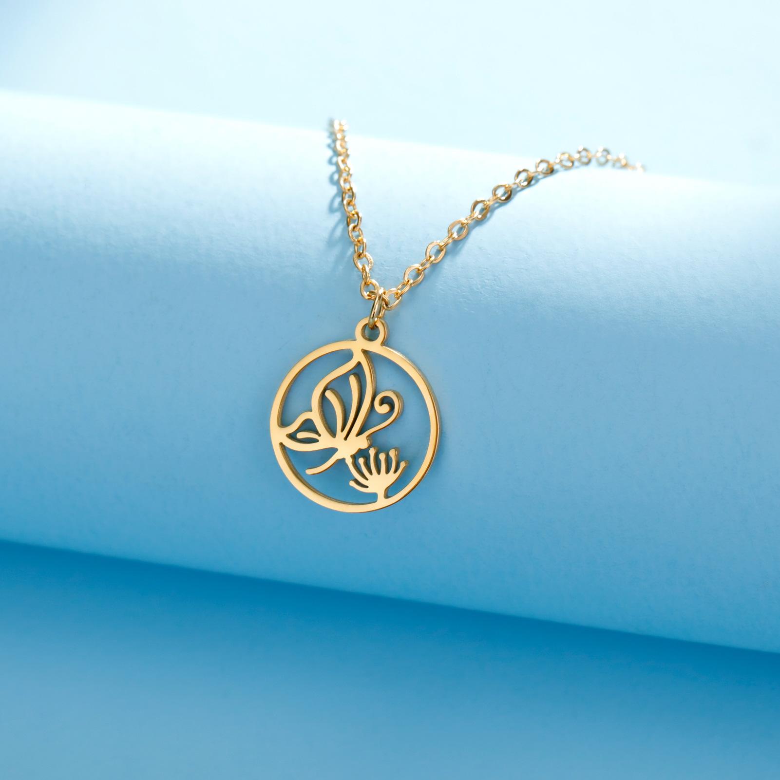 Collar de acero de titanio de venta caliente transfronteriza de comercio exterior, collar de mariposa para mujer, colgante de mariposa personalizado, collar de acero inoxidable