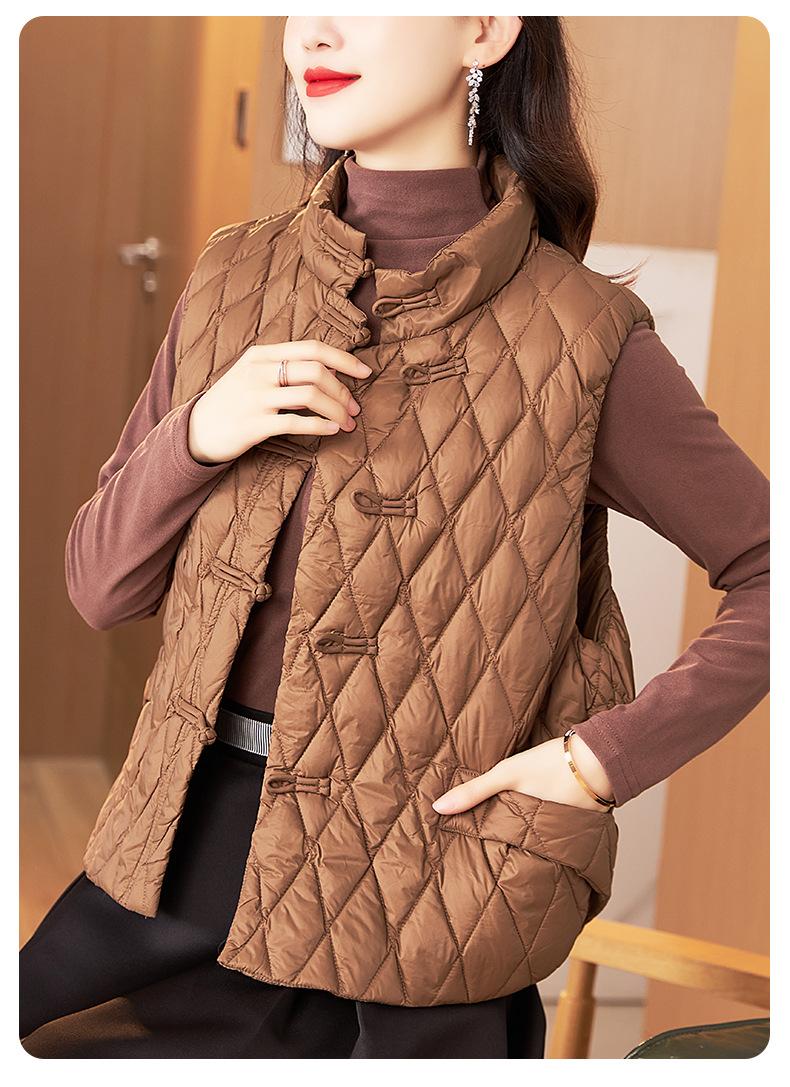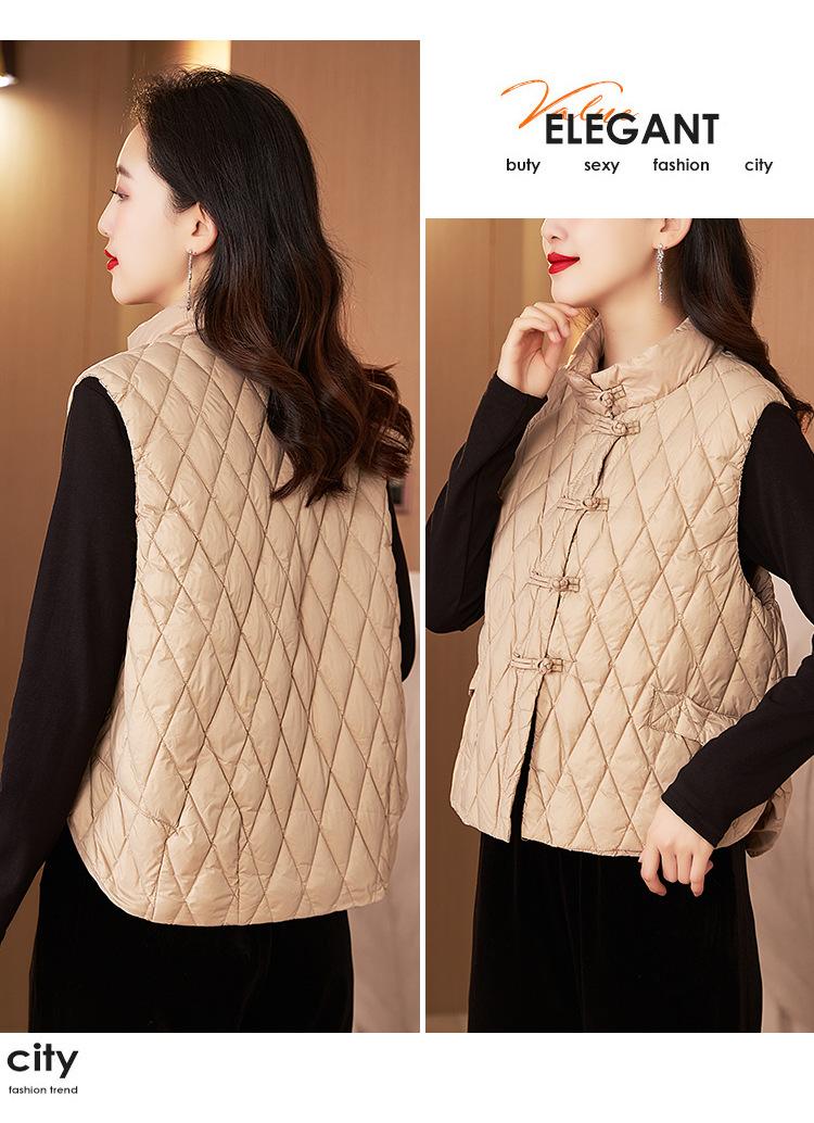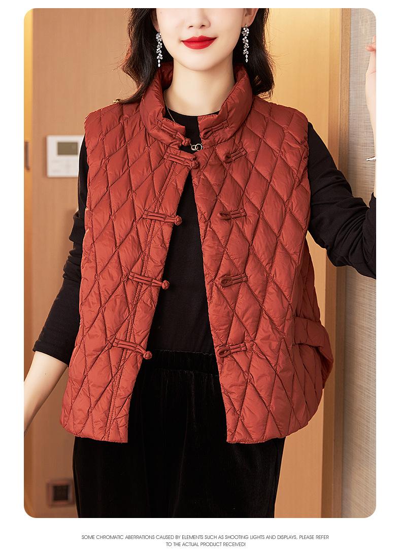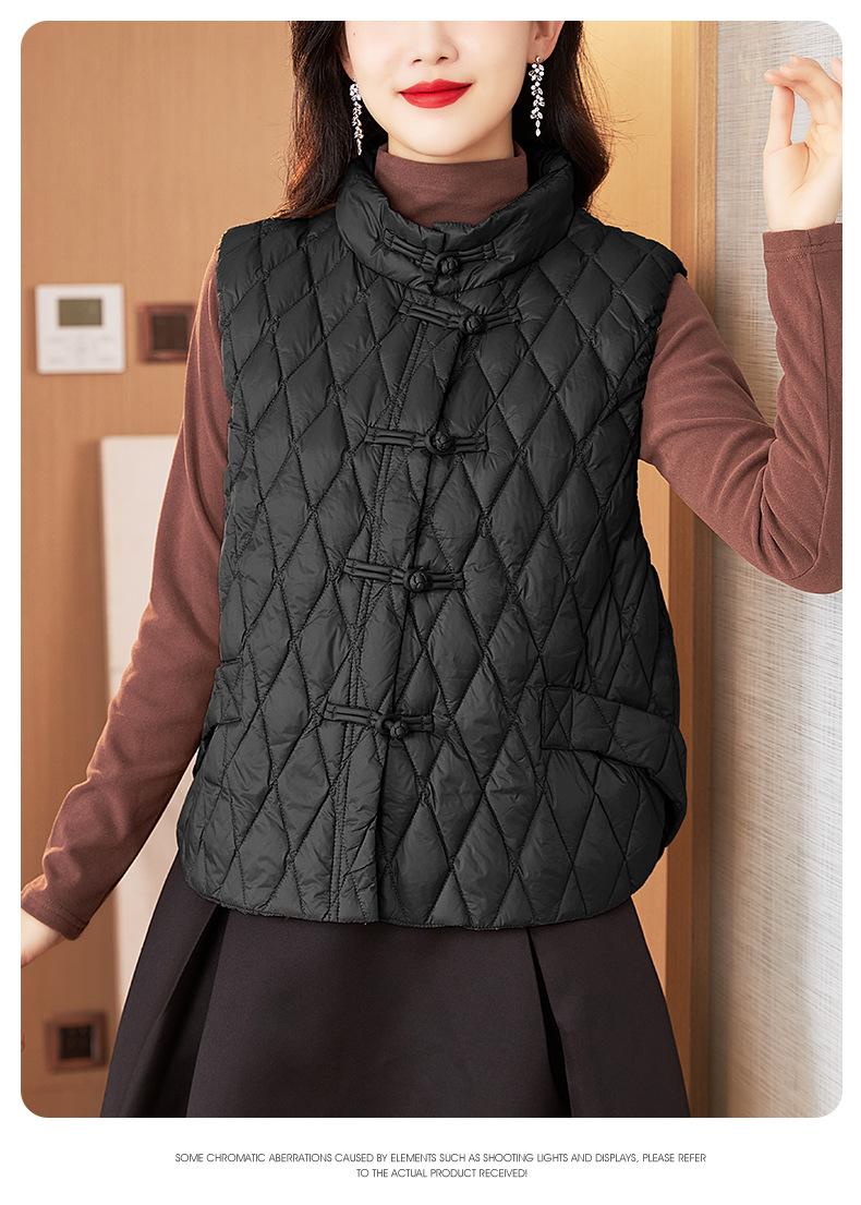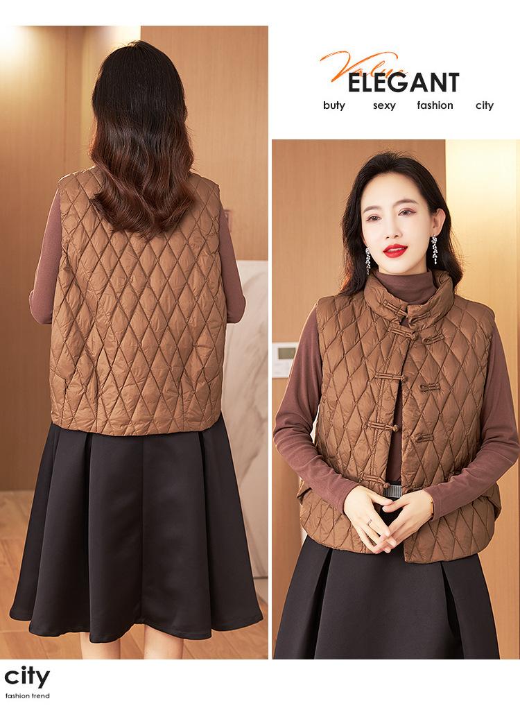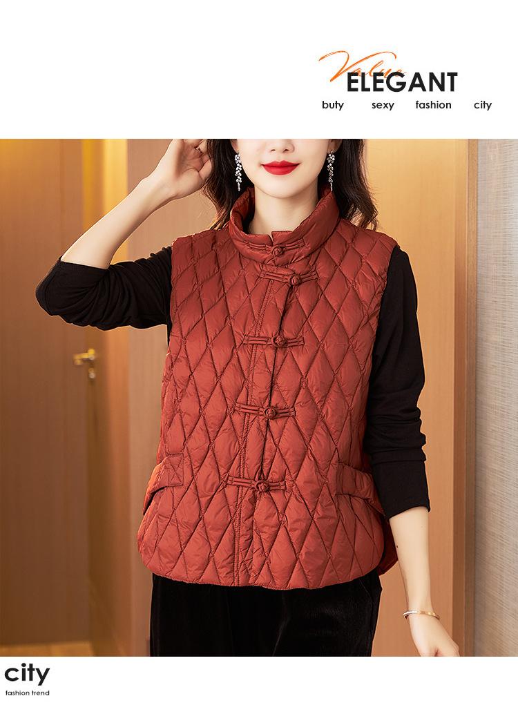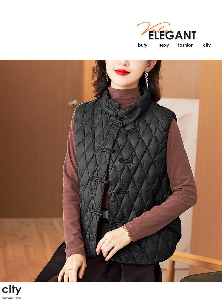 Nuevo chaleco artístico retro con hebilla para otoño e invierno 2023, chaleco pequeño acolchado de algodón ligero para mujer