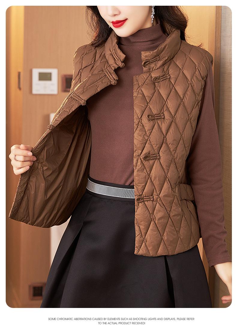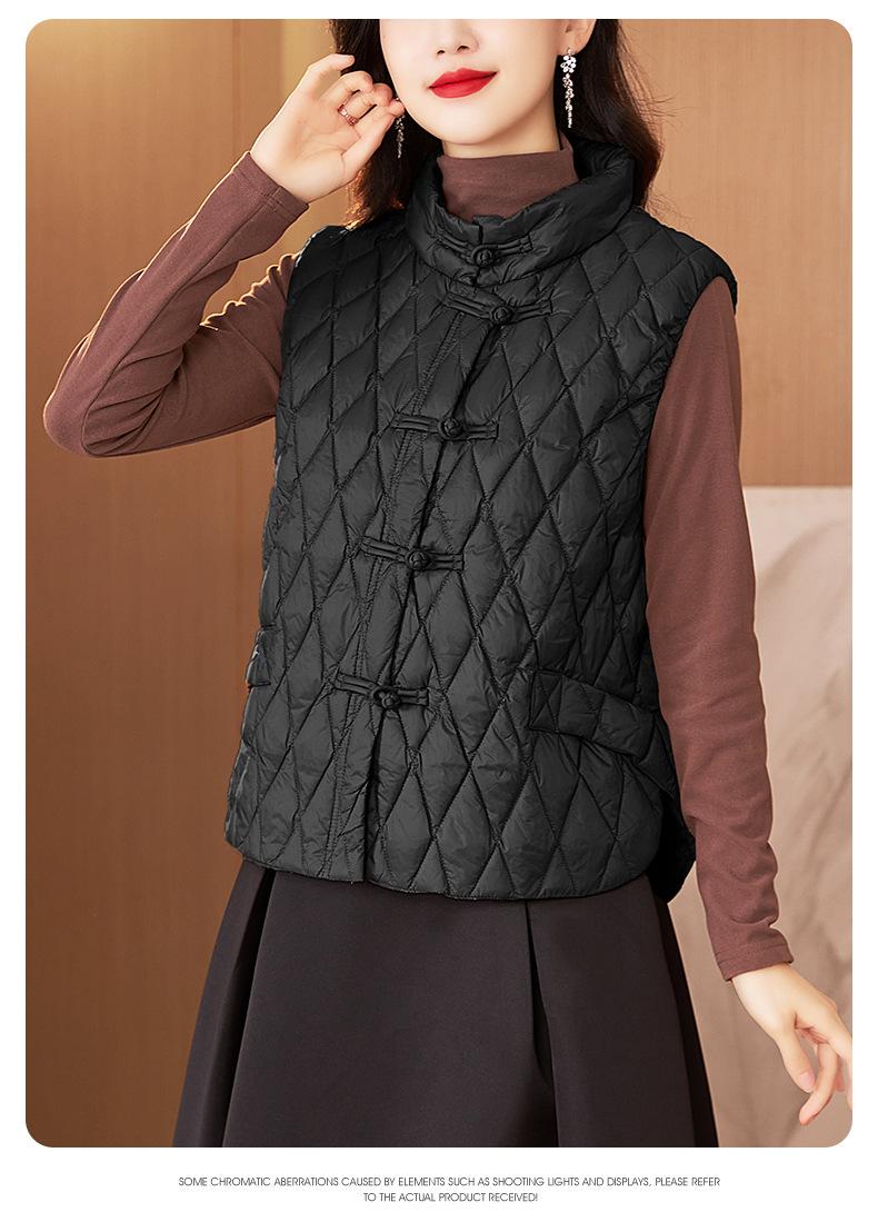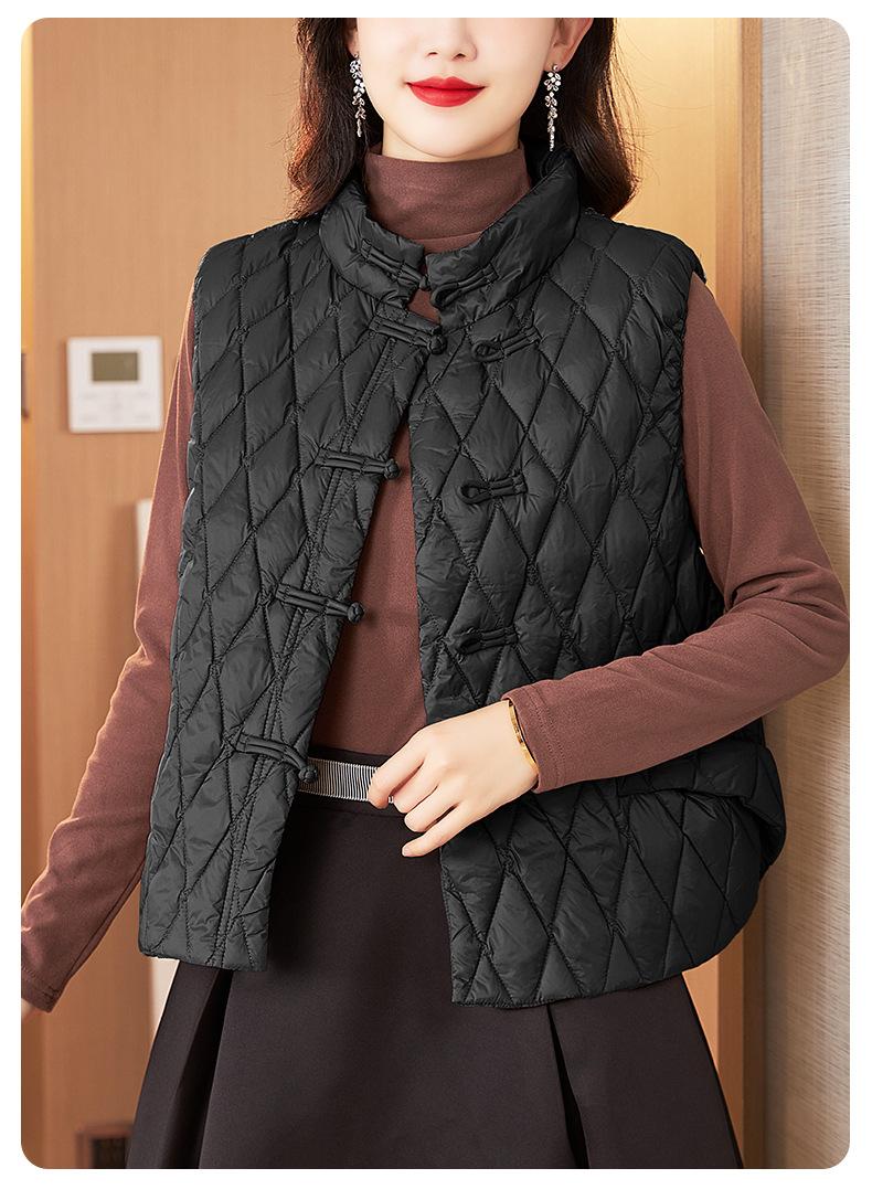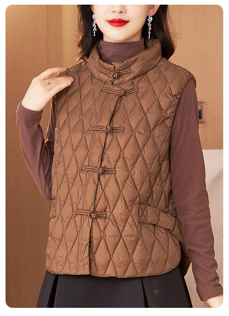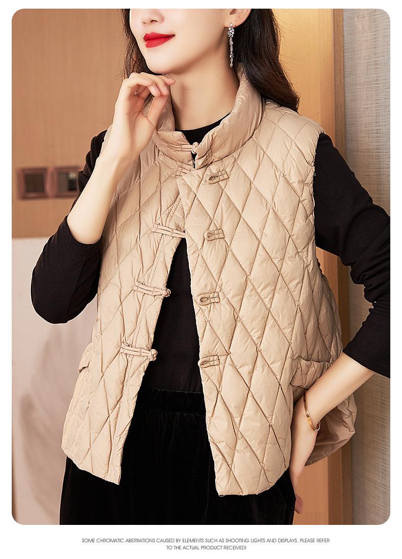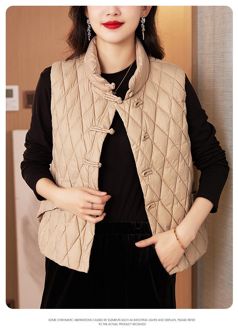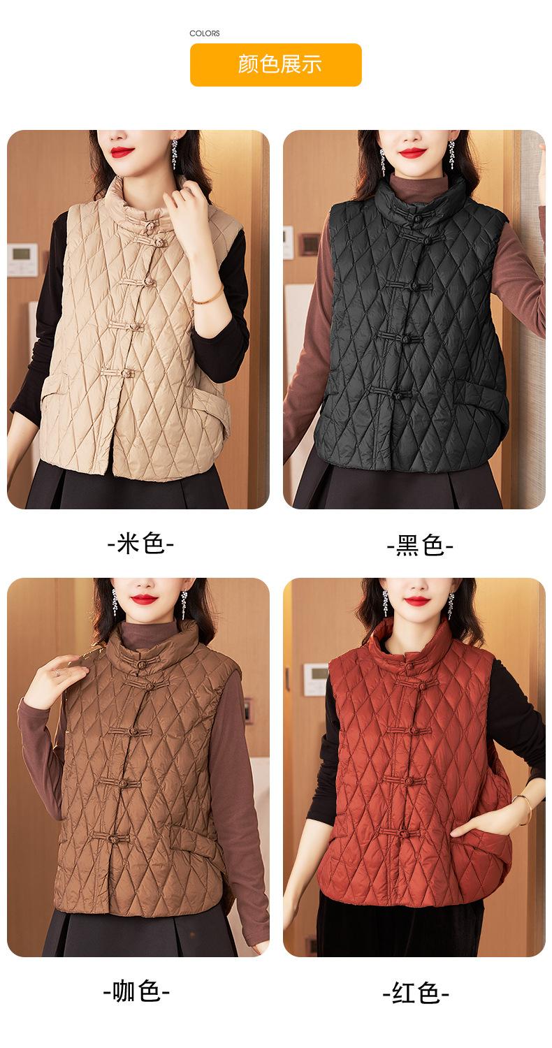 Nuevo chaleco artístico retro con hebilla para otoño e invierno 2023, chaleco pequeño acolchado de algodón ligero para mujer