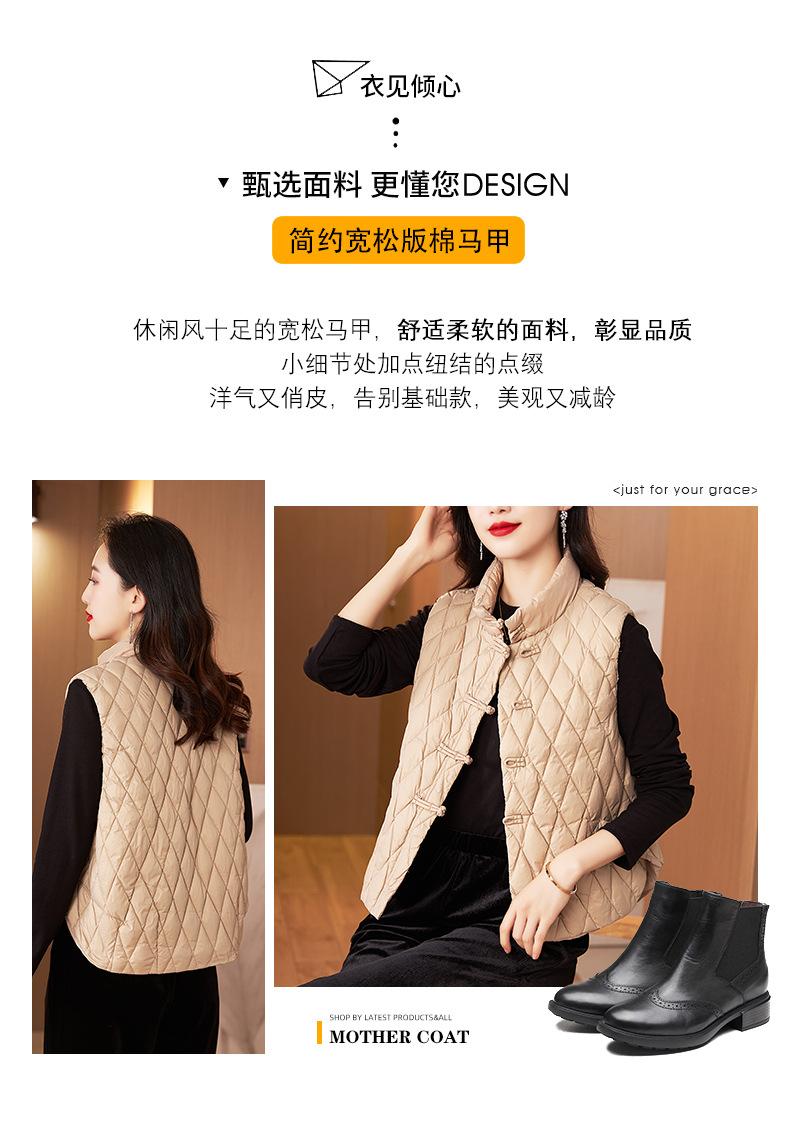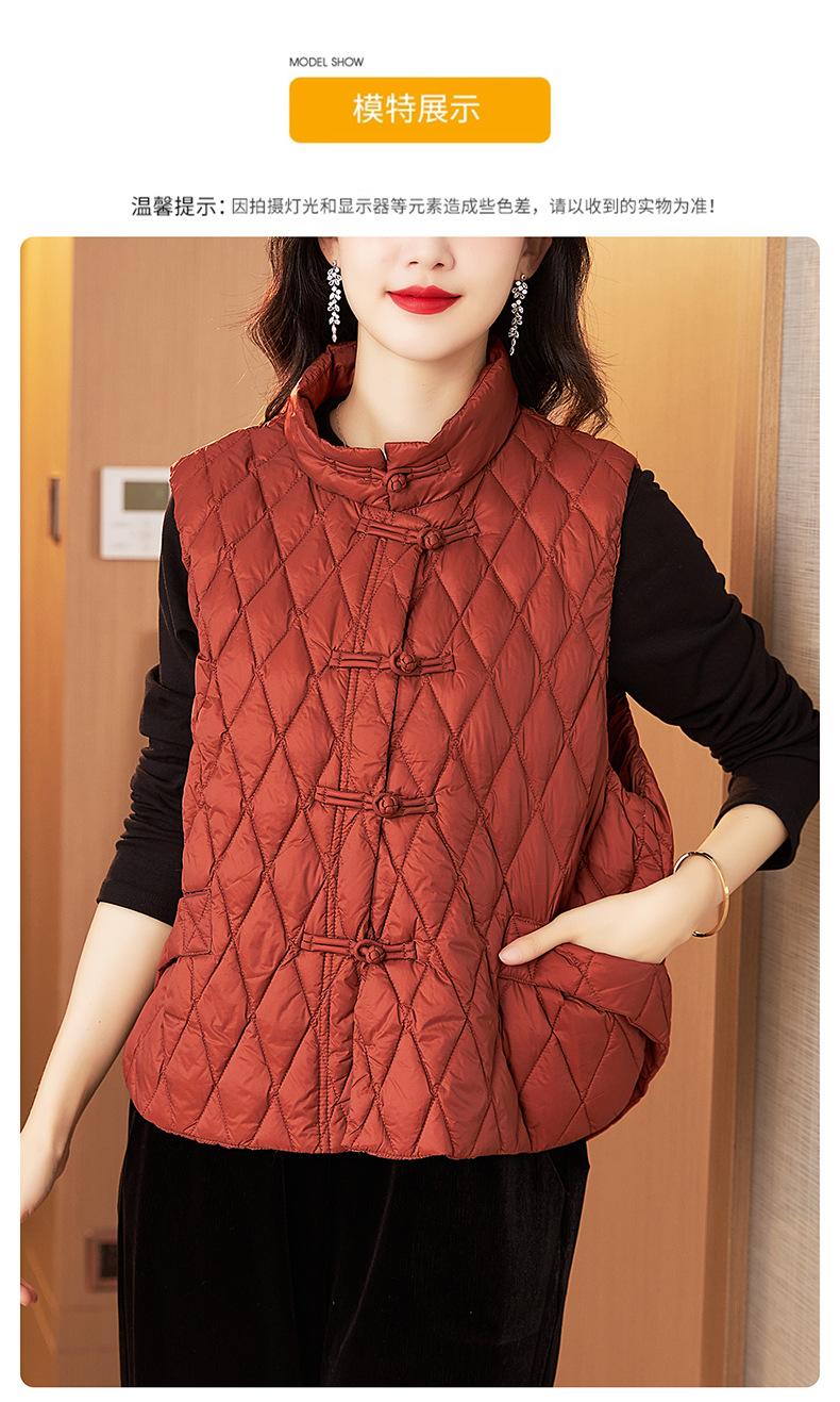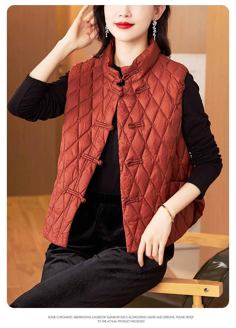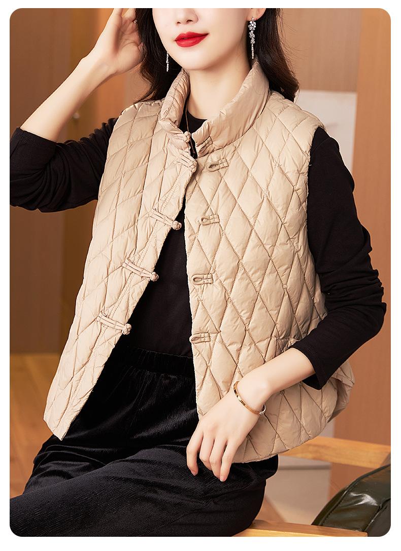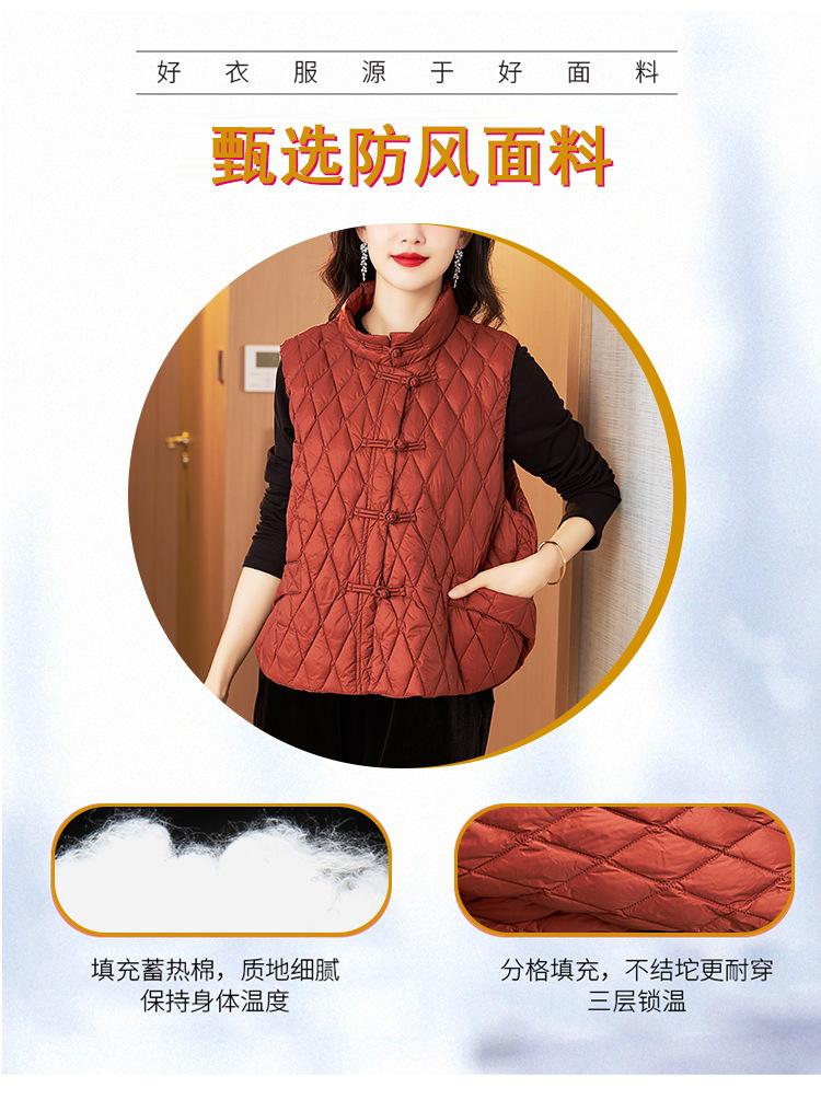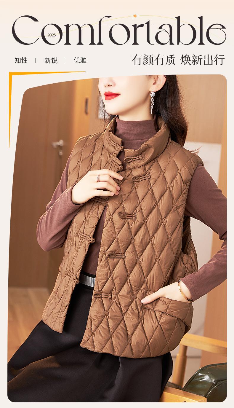 Nuevo chaleco artístico retro con hebilla para otoño e invierno 2023, chaleco pequeño acolchado de algodón ligero para mujer