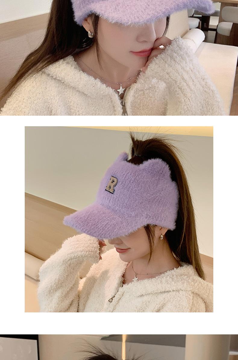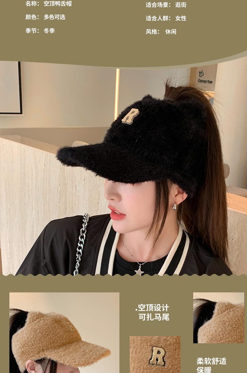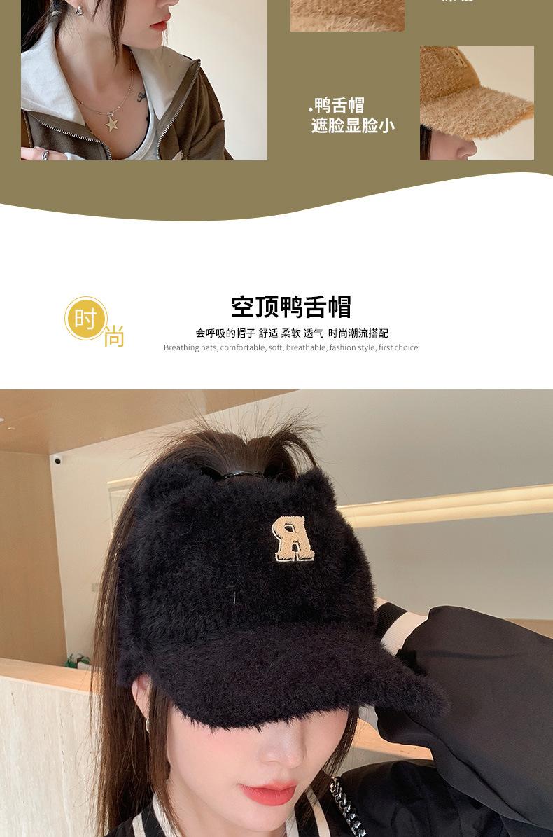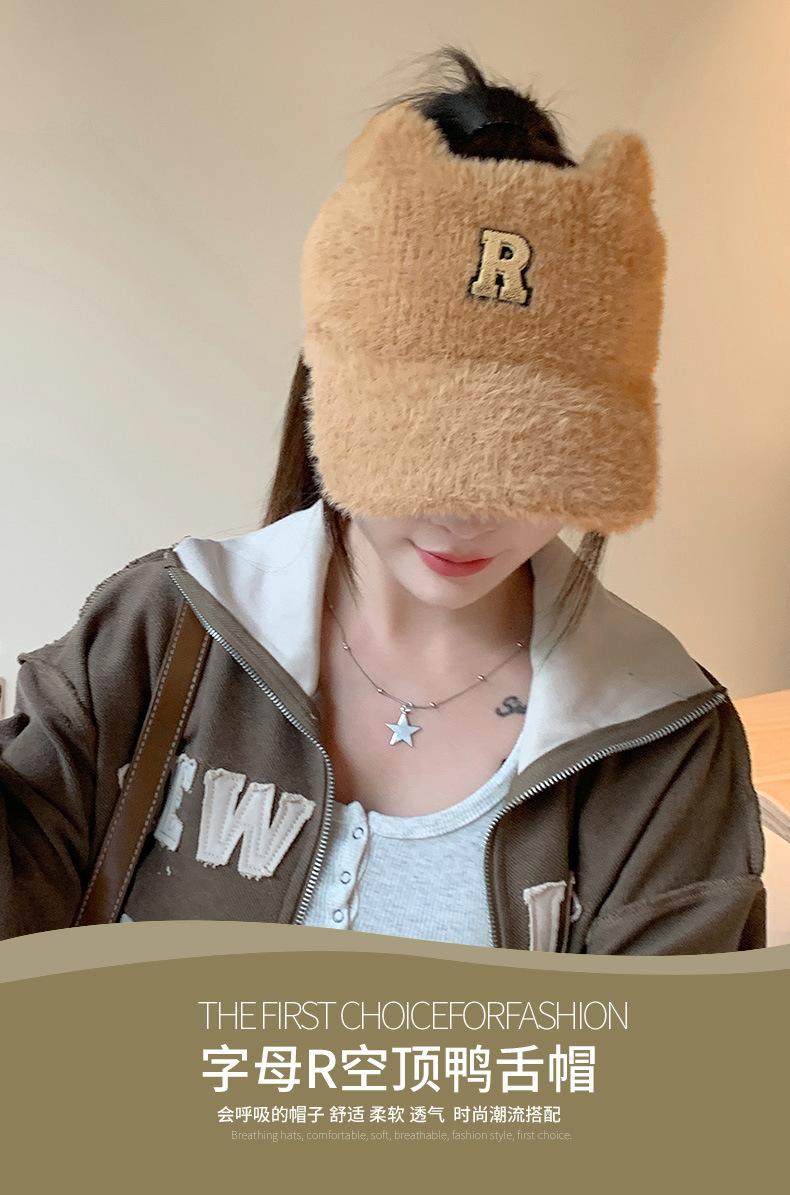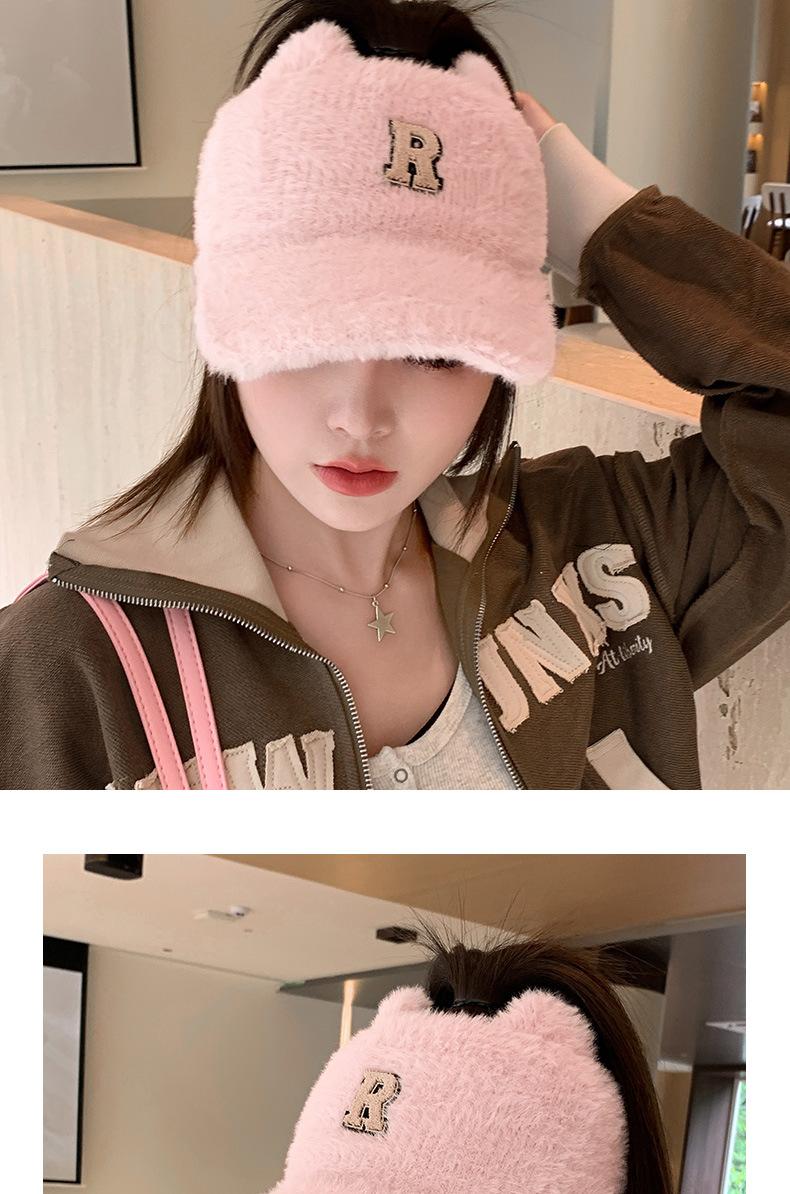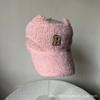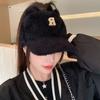 Gorra de béisbol de felpa para mujer, otoño e invierno, nueva, gruesa, cálida, vacía, con lindas letras que combinan con todo.