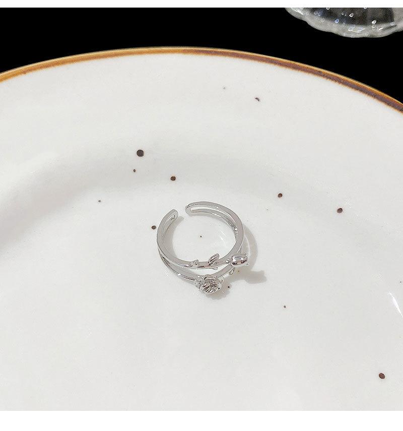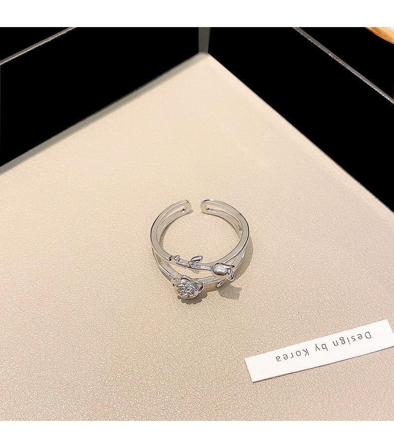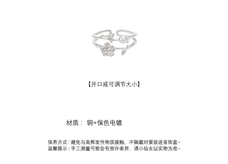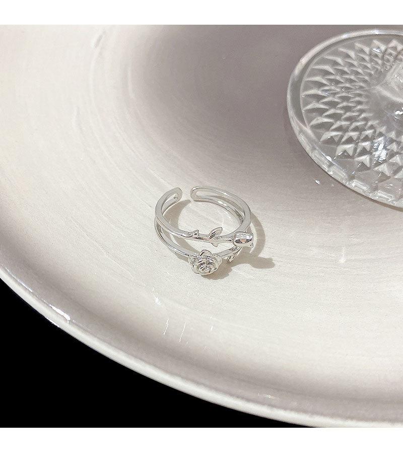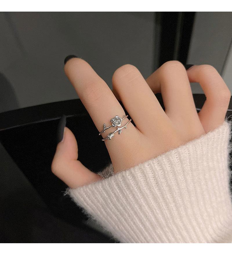Anillo abierto de doble capa de flor rosa plateada para mujer, estilo frío, diseño nicho, anillo para el dedo índice, joyería retro de alta gama