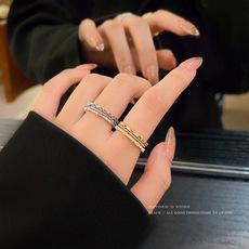 Anillo de plata con doble capa de apertura y diseño de nicho de estilo frío para mujer, joyería retro de alta calidad.