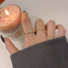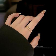 Set de anillos abiertos con línea ondulada para mujer, ajustable, de alta calidad, con circonita superbrillante, anillo, joyería de mano de temperamento a la moda