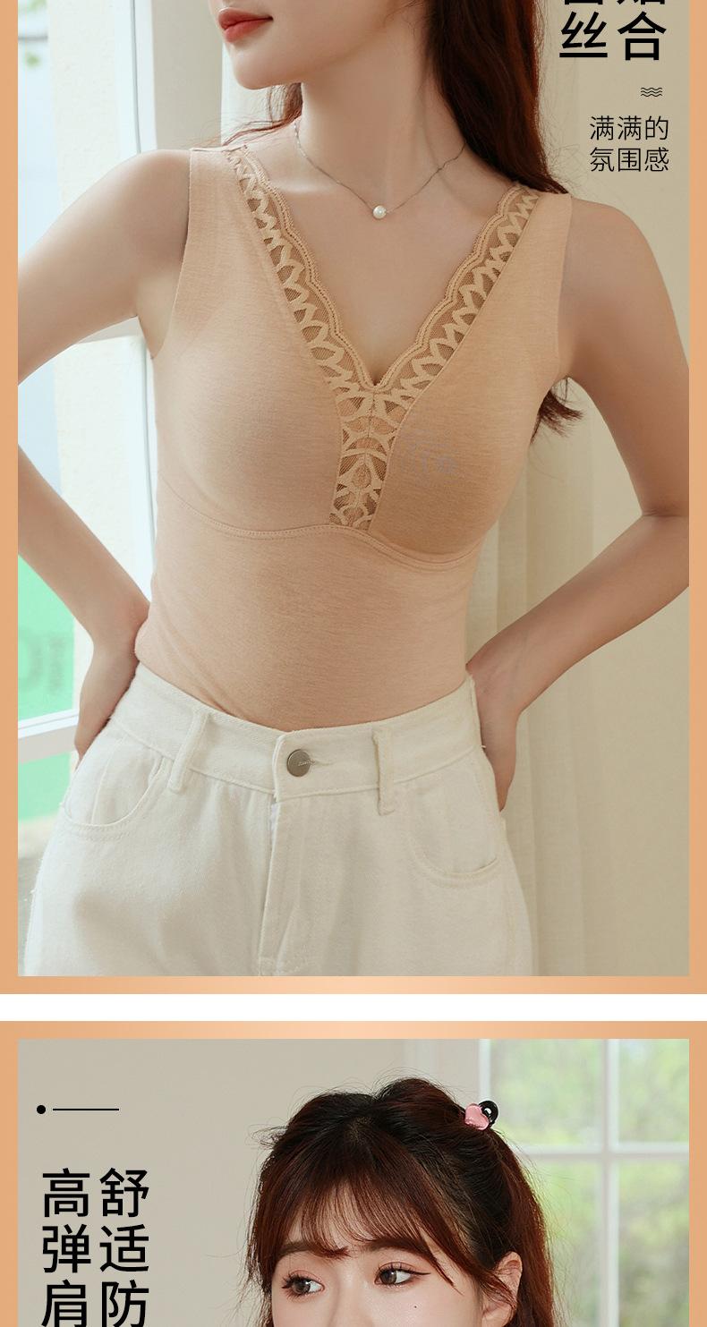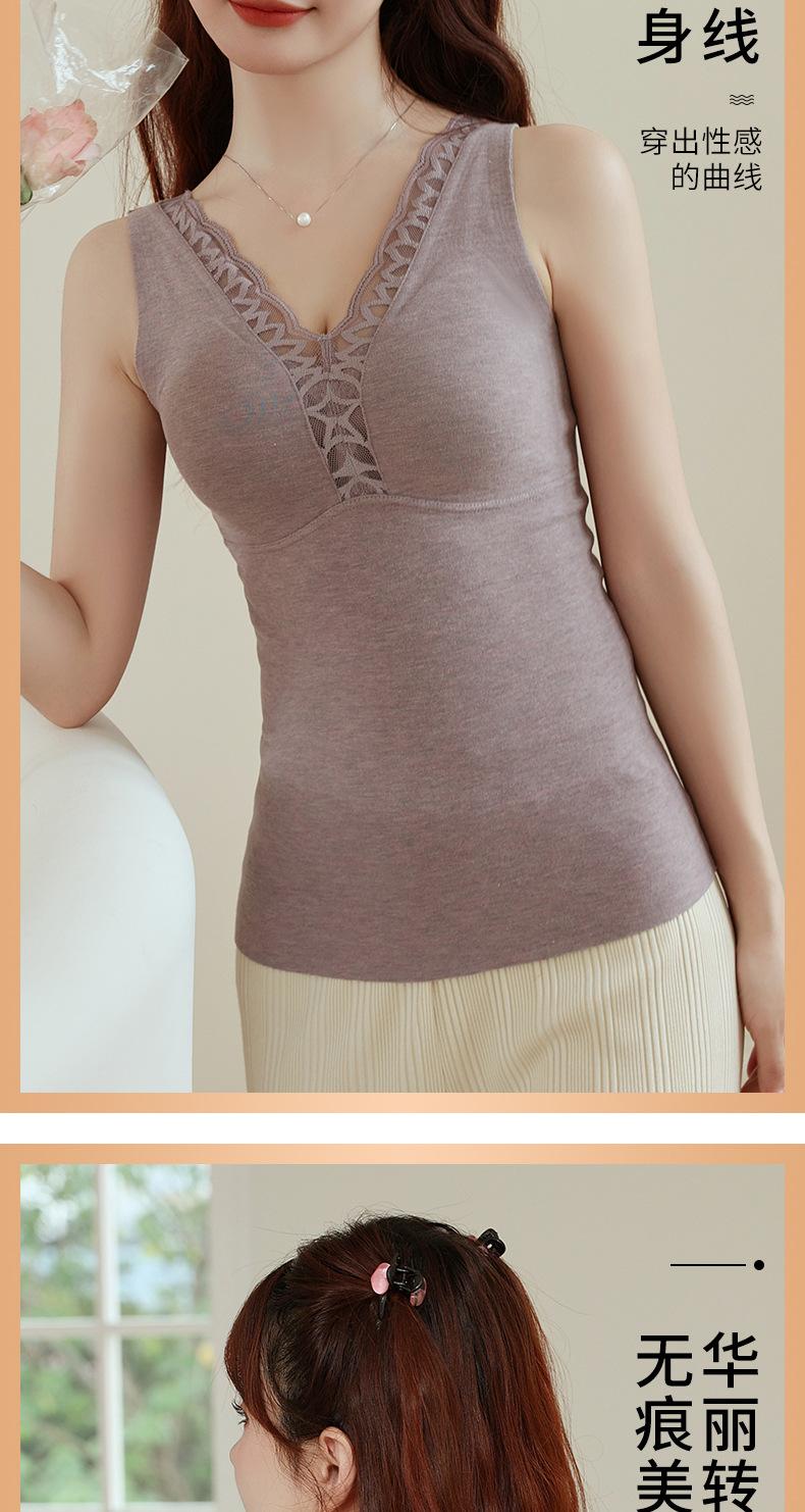 Otoño e Invierno nuevo jersey cuello en V calentamiento terciopelo ropa interior cálida con almohadilla en el pecho sin costuras adelgazante chaleco cálido para mujer