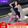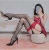 Medias de liga sexys de una pieza con costuras en contraste de color, borde rojo, medias de seda negra, puras, ultrafinas, que no se rayan.