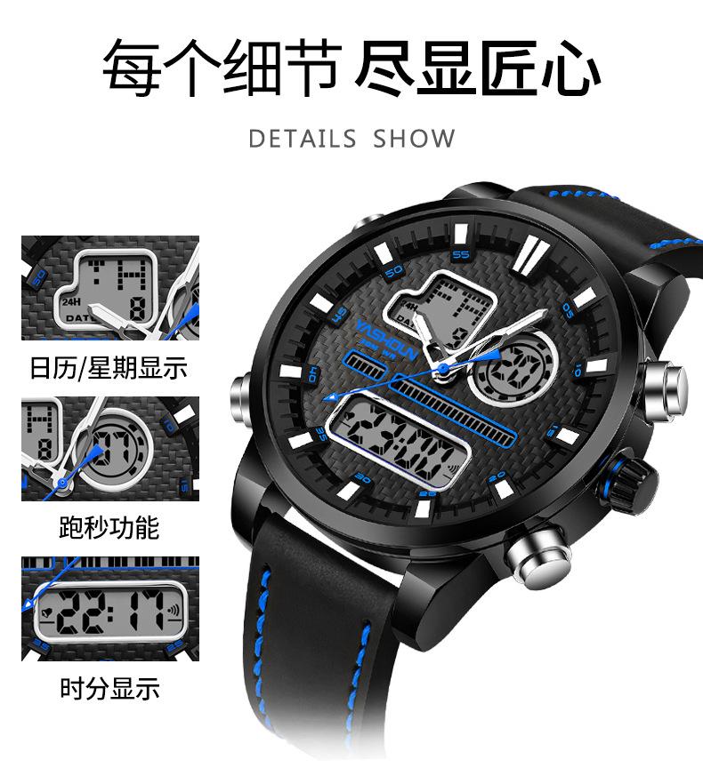 Decoration, Noctilucent, Alarm, Chronograph, Calendar, Step counting, 24 hour indication, perspective window, Week Display