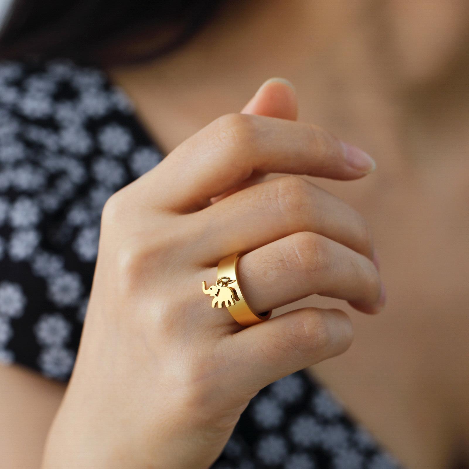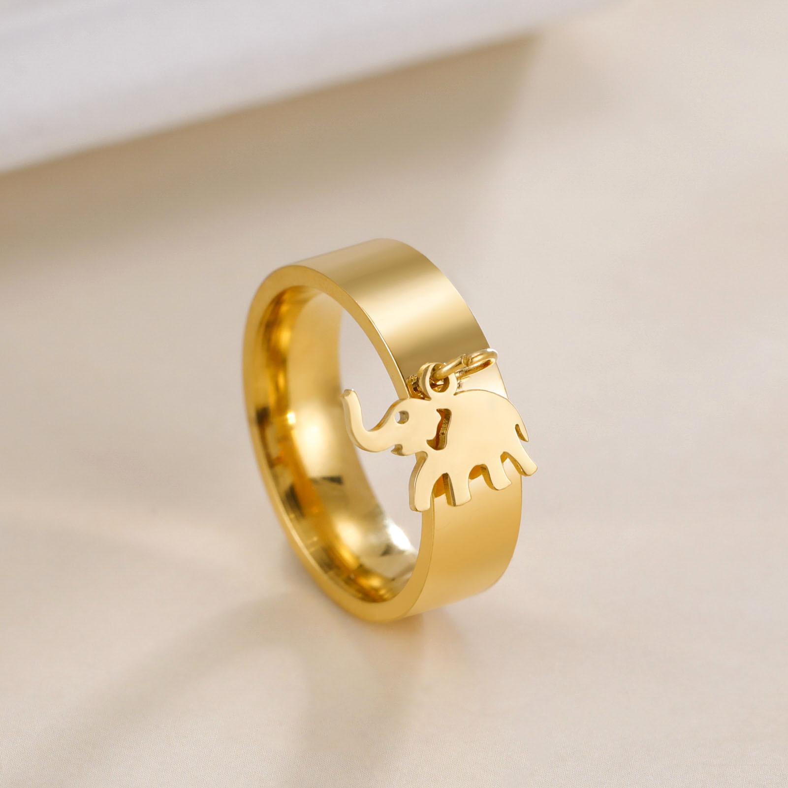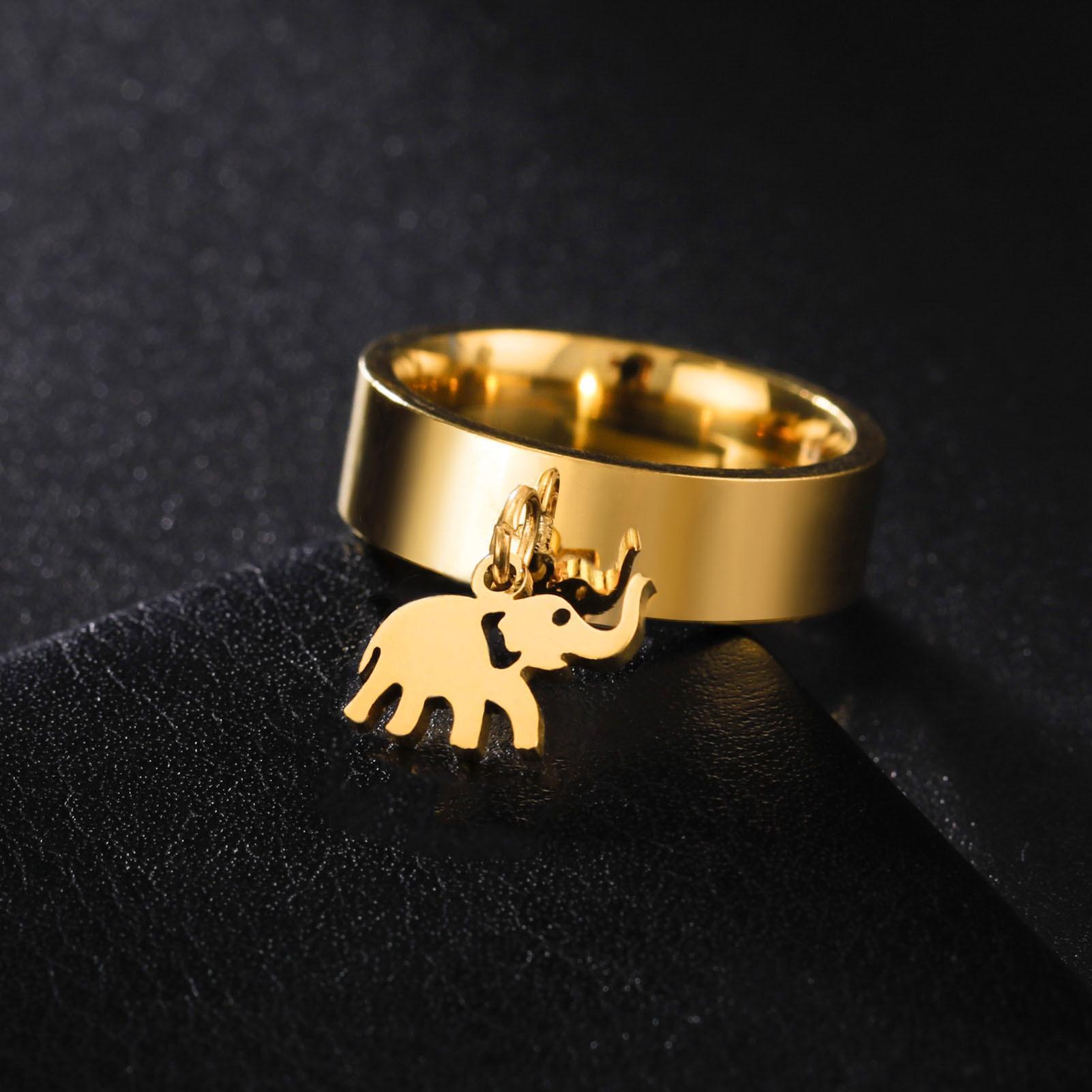 Venta caliente de exportación de comercio exterior corte de acero inoxidable anillo de soldadura dorado corte brillante elefante colgante anillo de acero inoxidable