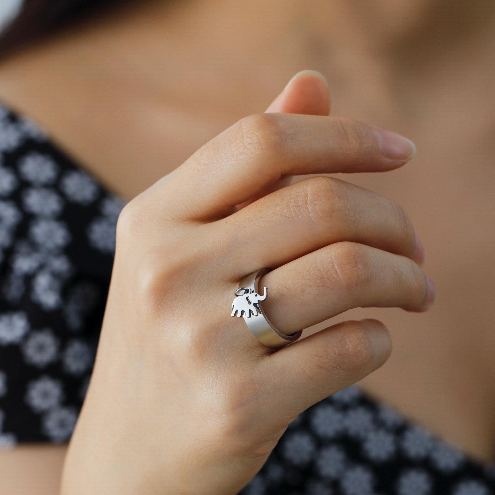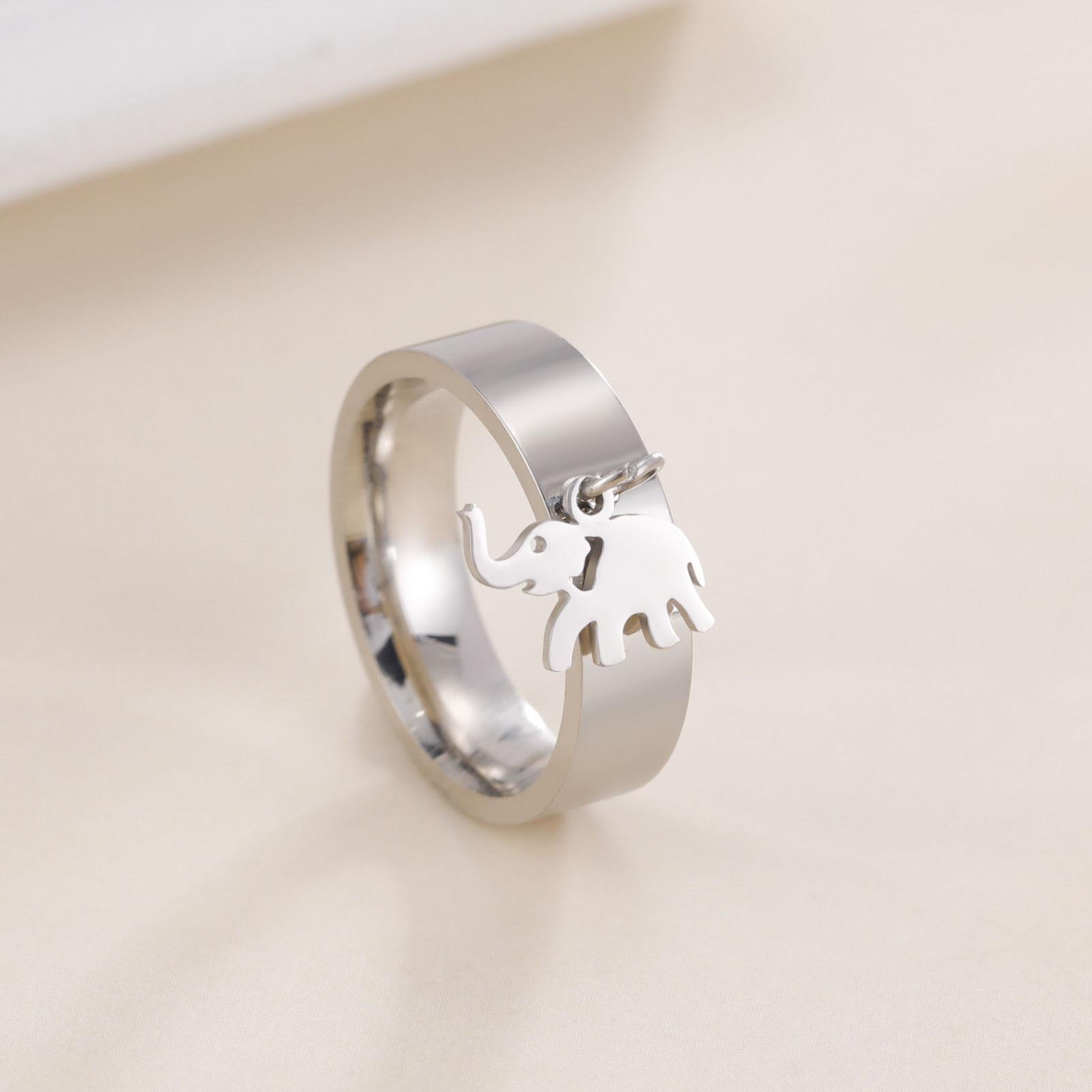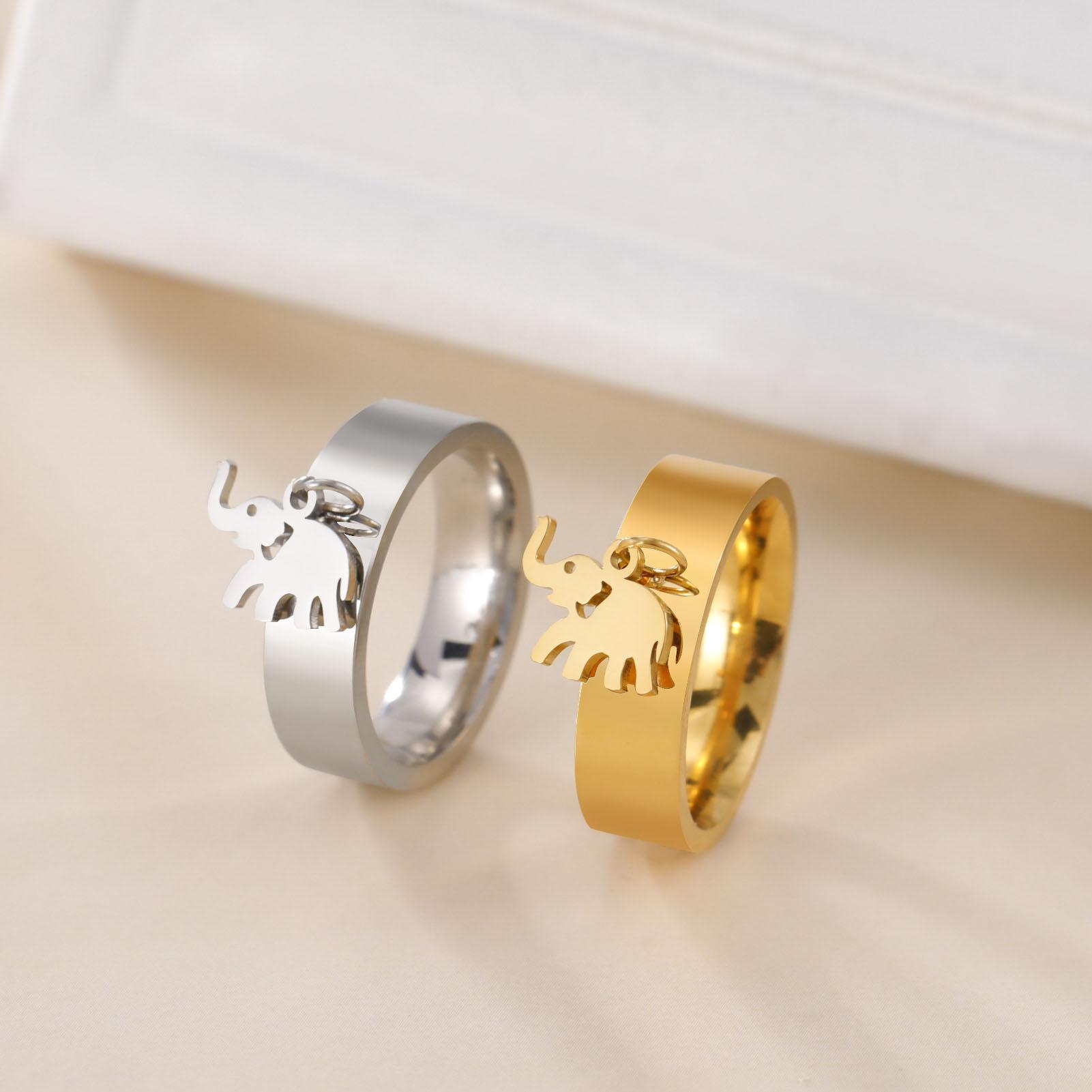 Venta caliente de exportación de comercio exterior corte de acero inoxidable anillo de soldadura dorado corte brillante elefante colgante anillo de acero inoxidable