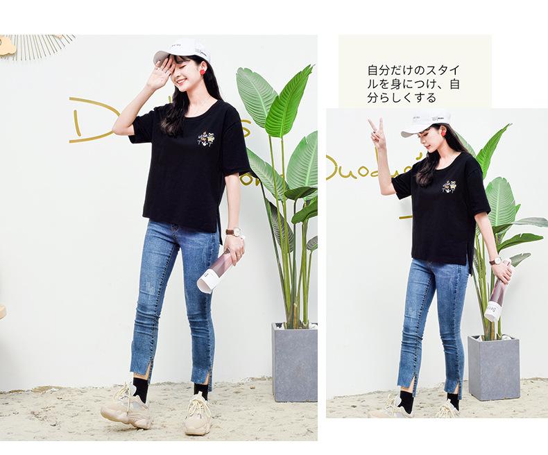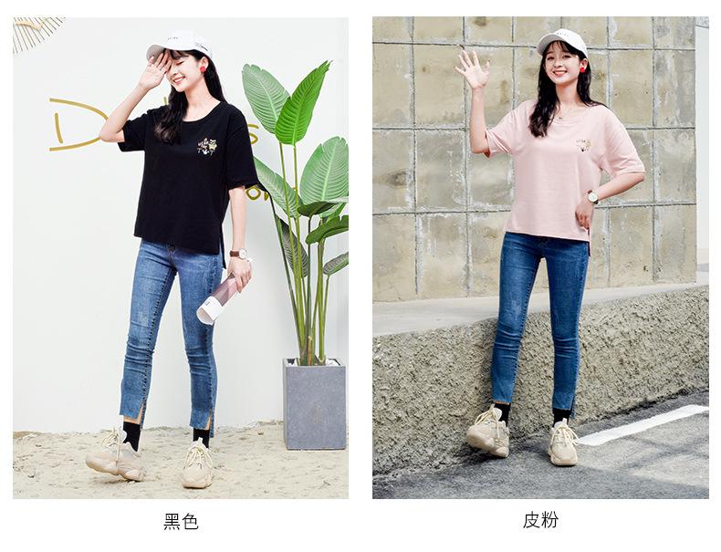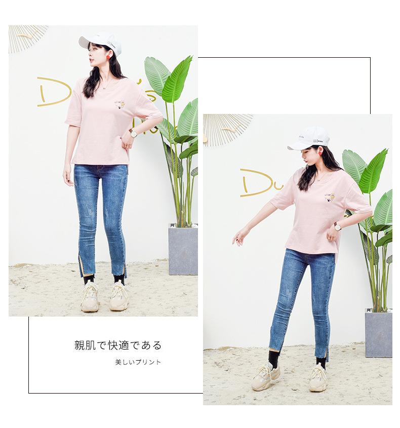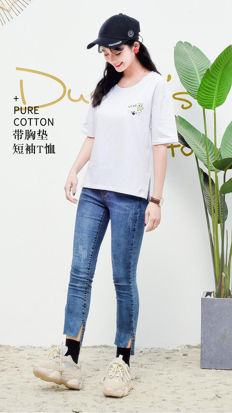 Playera de Algodón Puro Tipo Seda con Sujetador Incorporado, Top Holgado de Media Manga con Abertura Estampado Estilo Coreano, No Necesita Sujetador, Diseño Lindo de Dibujos Animados