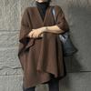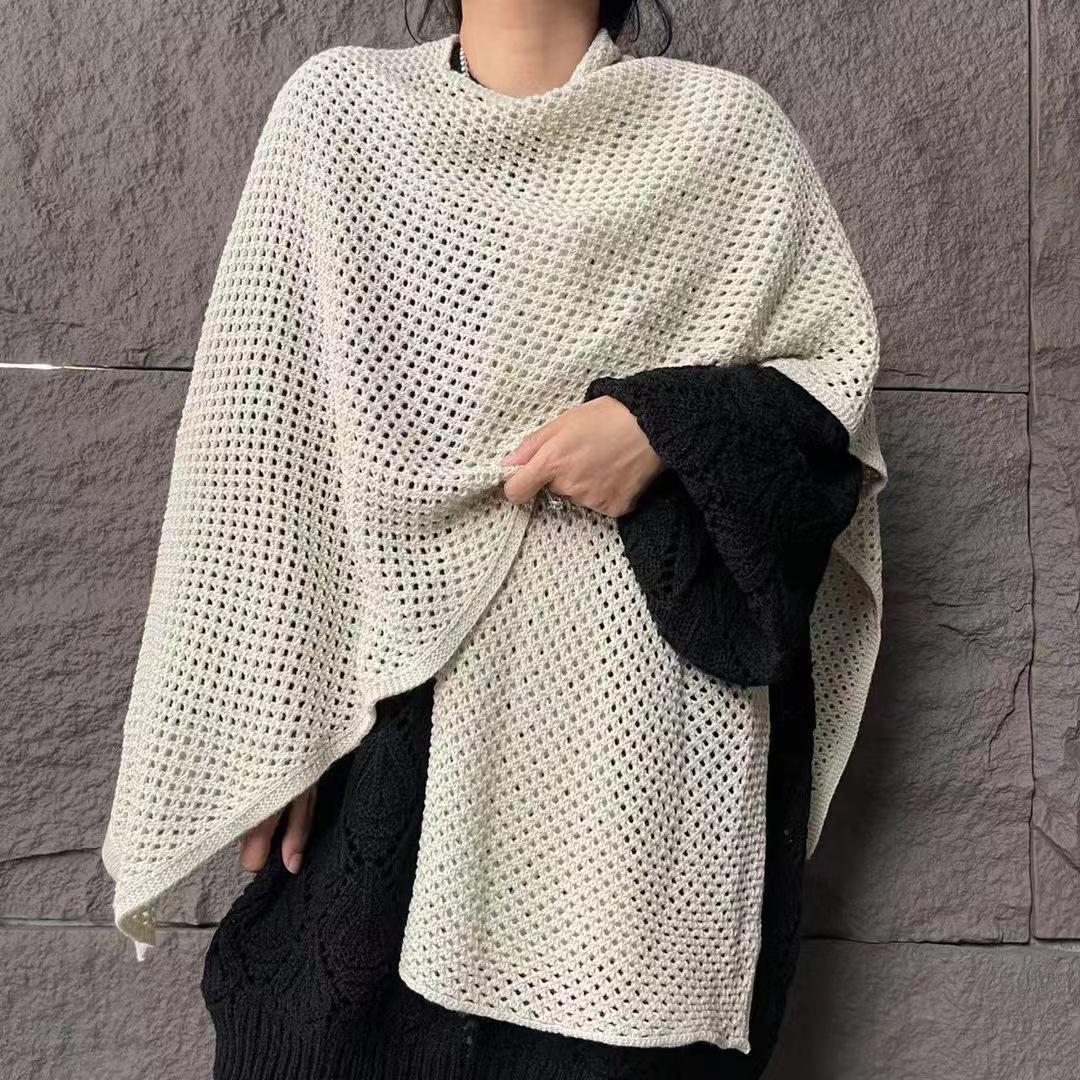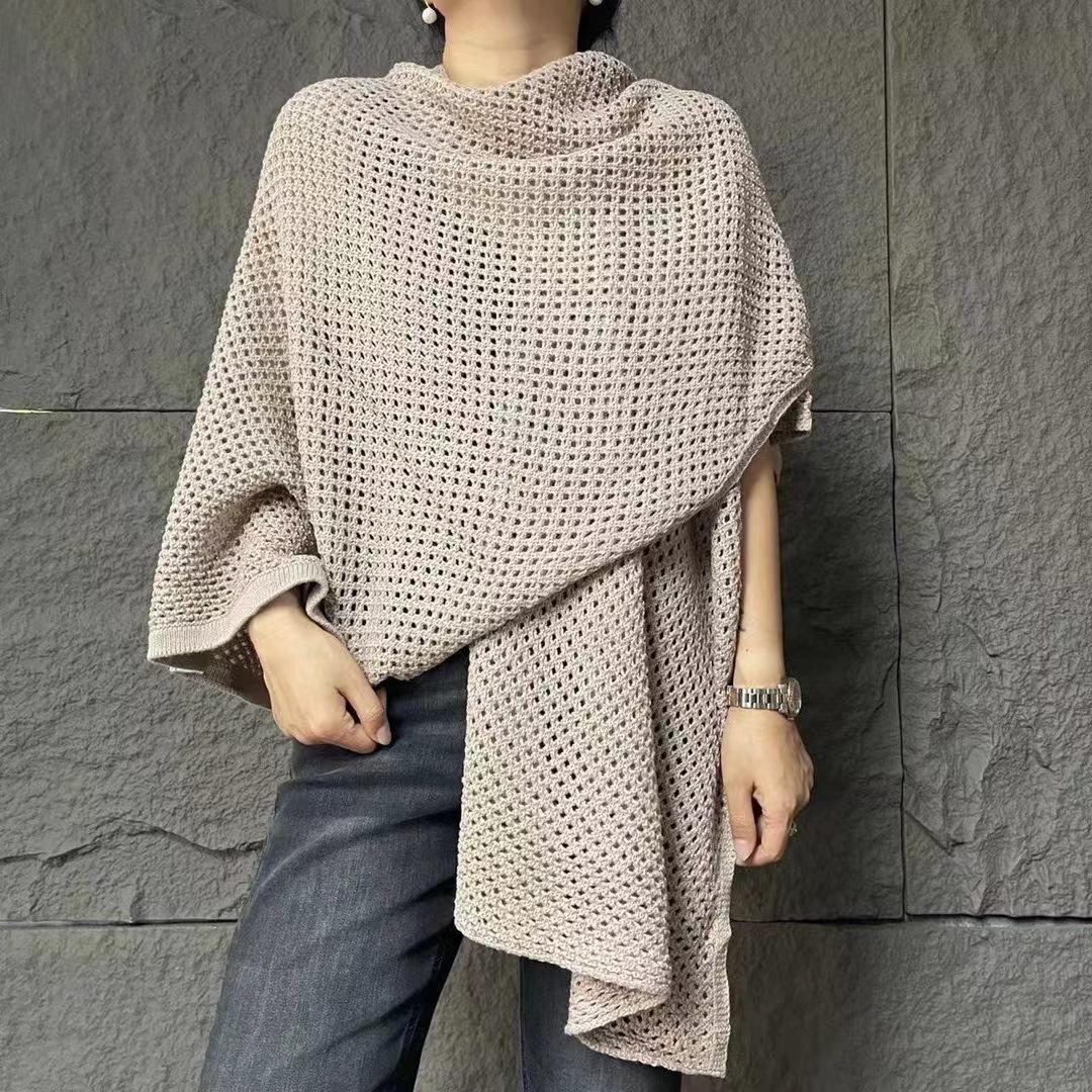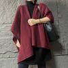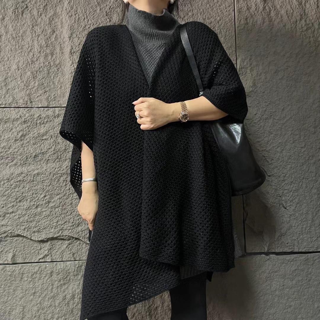 Nuevo Suéter de Punto Calado Holgado Vago de Color Sólido con Cuello en V Otoño e Invierno 2024 Nueva Moda Chaqueta Chal que Combina con Todo
