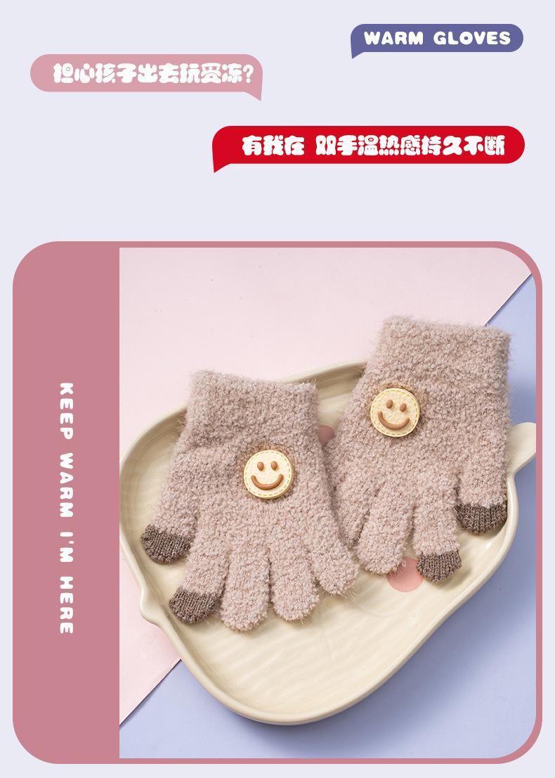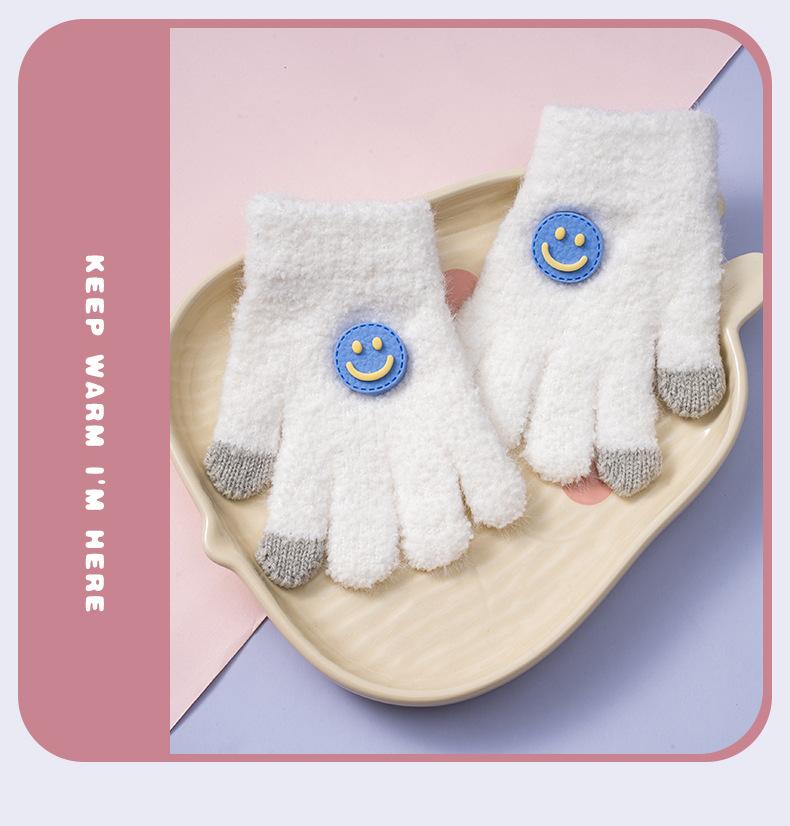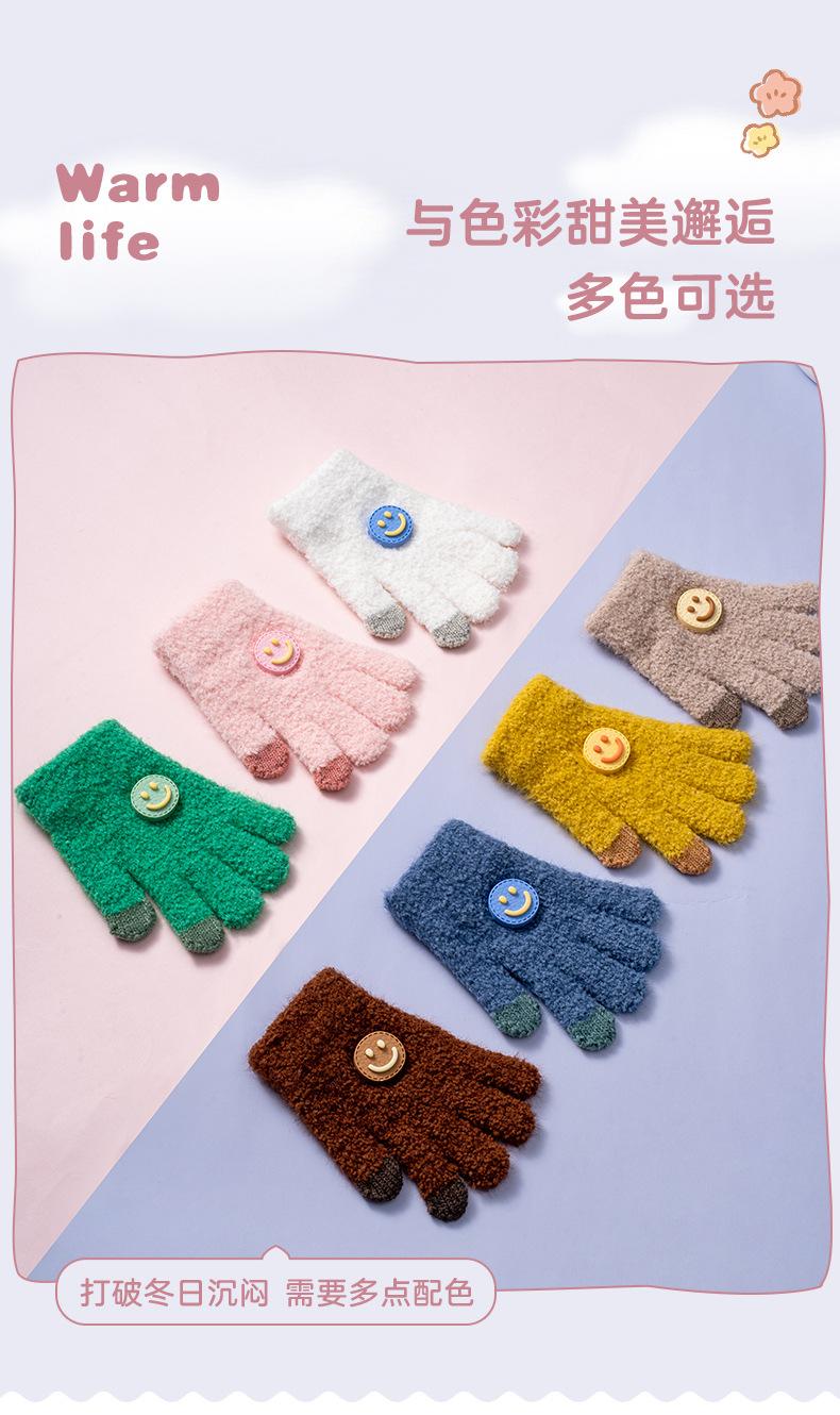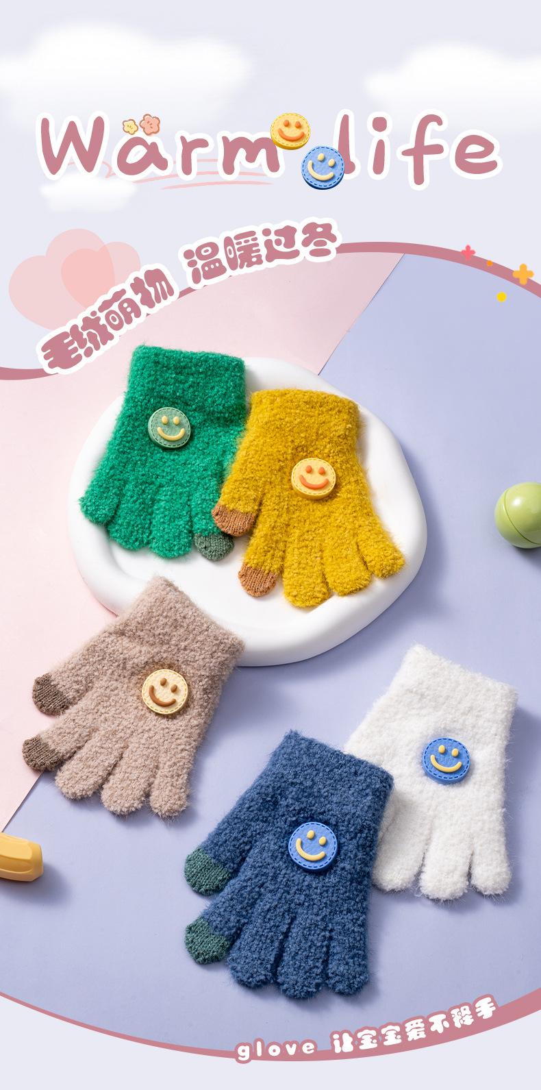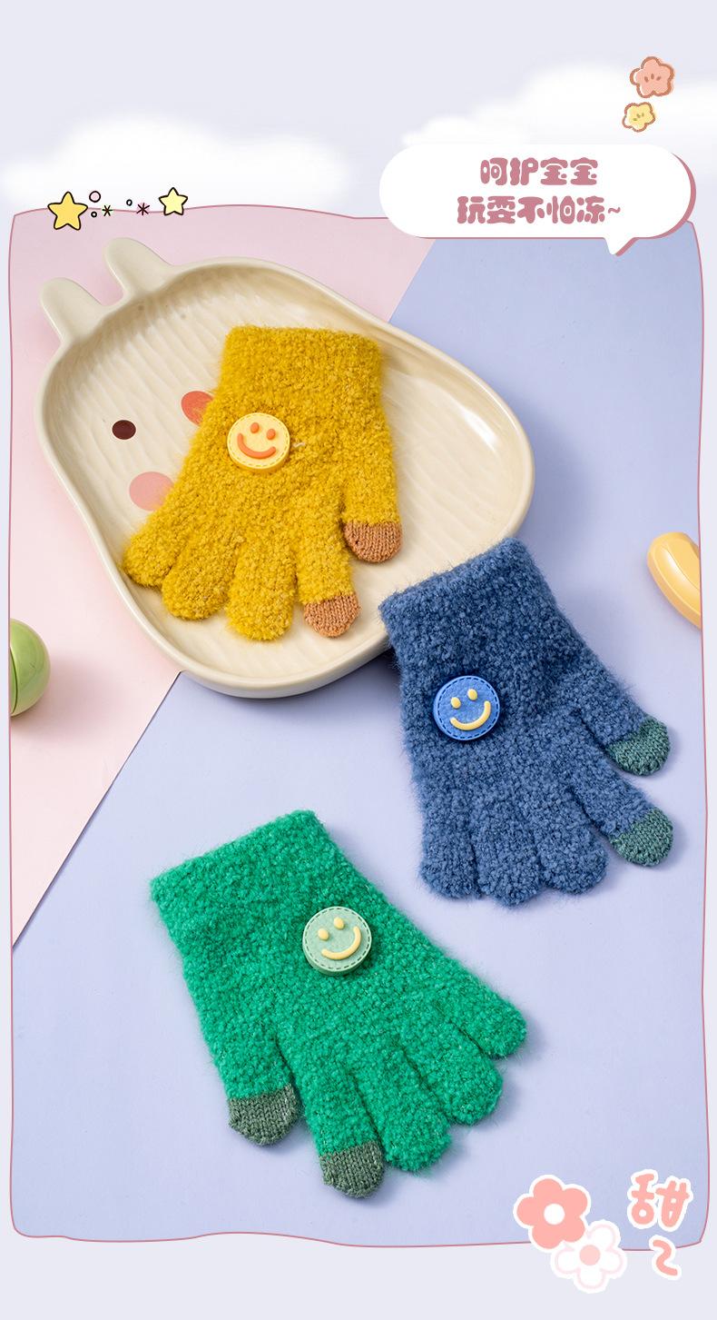 Guantes Nuevos de Otoño e Invierno para Niños Guantes para Niñas a Prueba de Frío y para Mantener el Calor Guantes de Lana Tejidos de Cinco Dedos para Bebé con Hebilla de Cara Sonriente para Niño