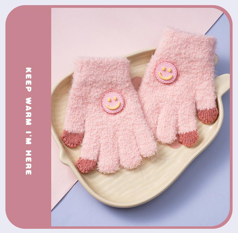 [Pink] (buckle smiling face) children's gloves