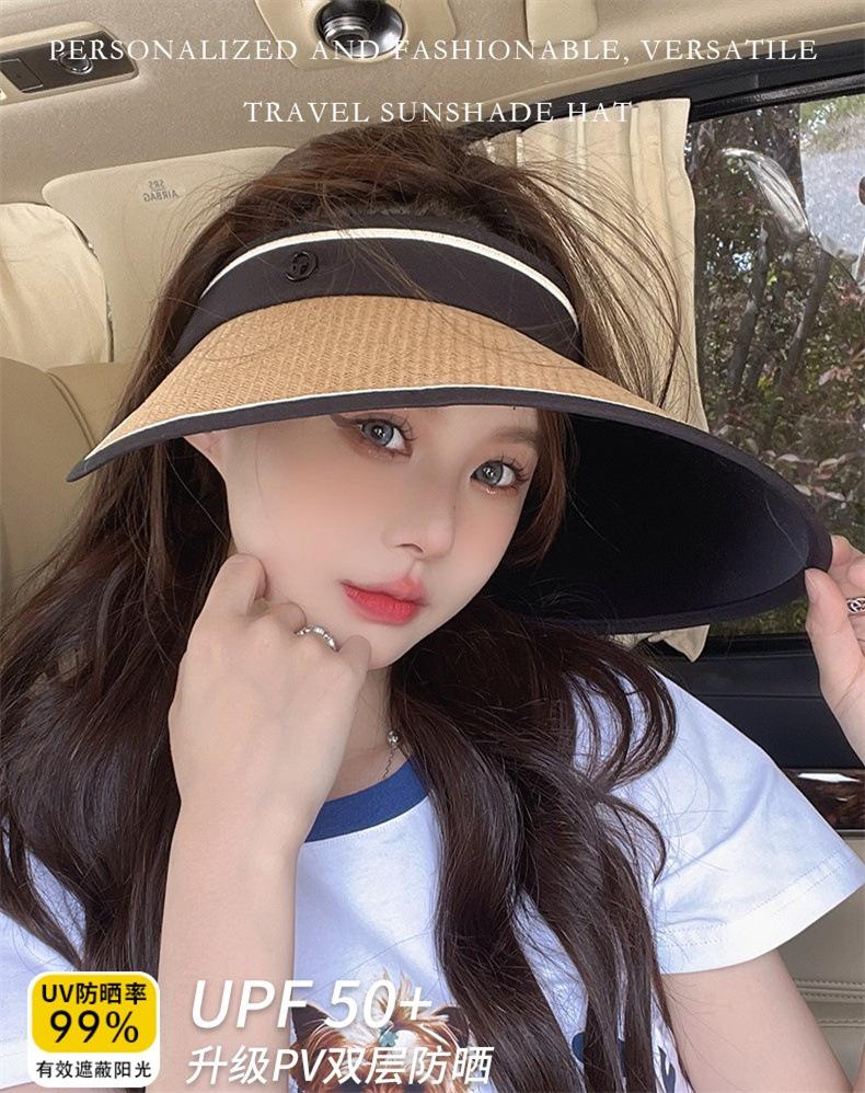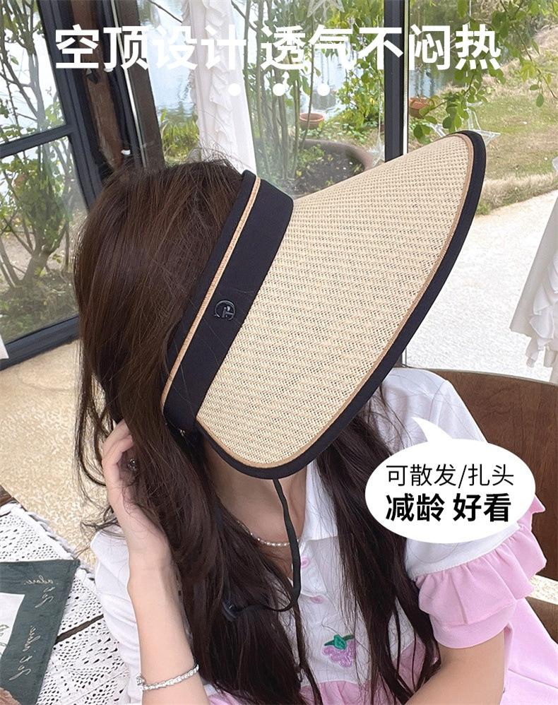 Gorra de protección solar parte superior vacía UV rafia sombrero parasol sombrero de copa vacía protección UV sombrero para el sol sombrero de paja verano Mujeres