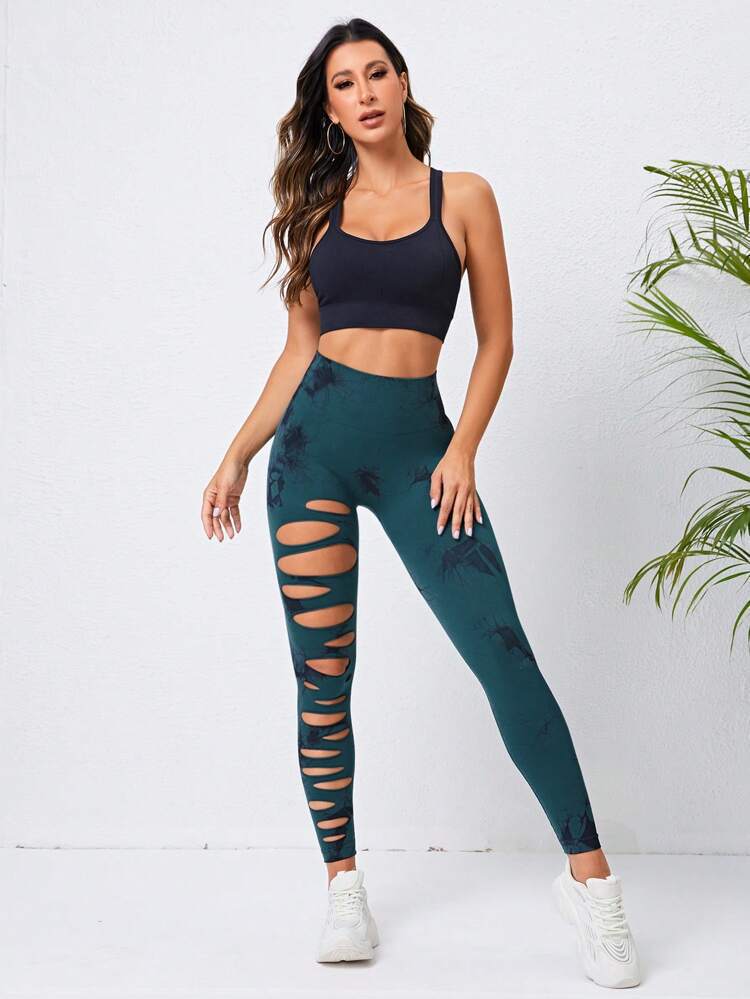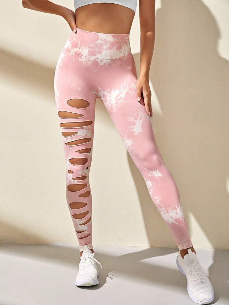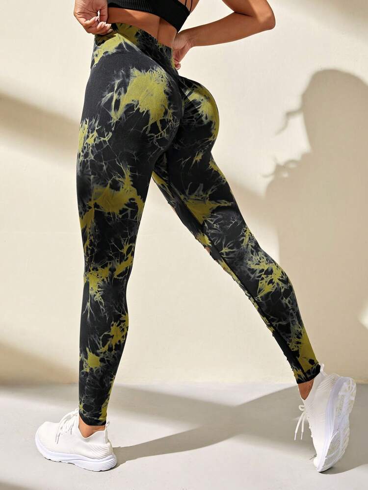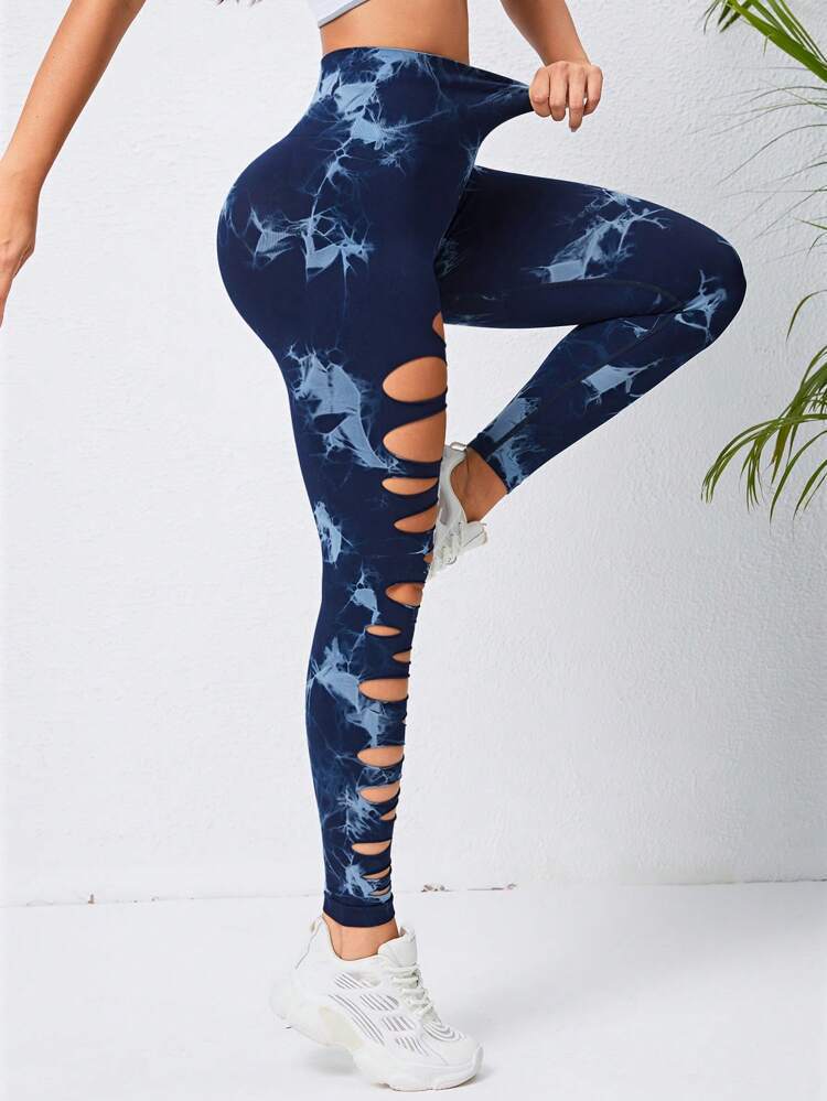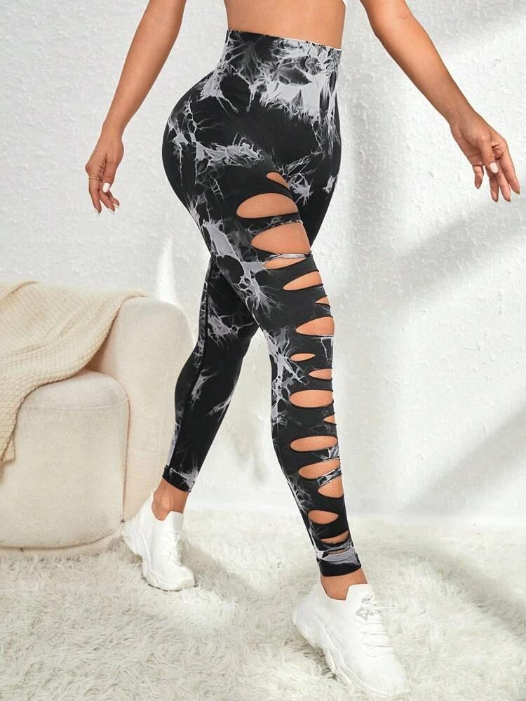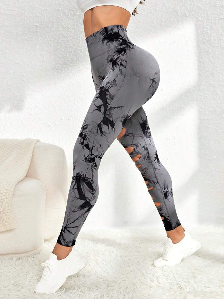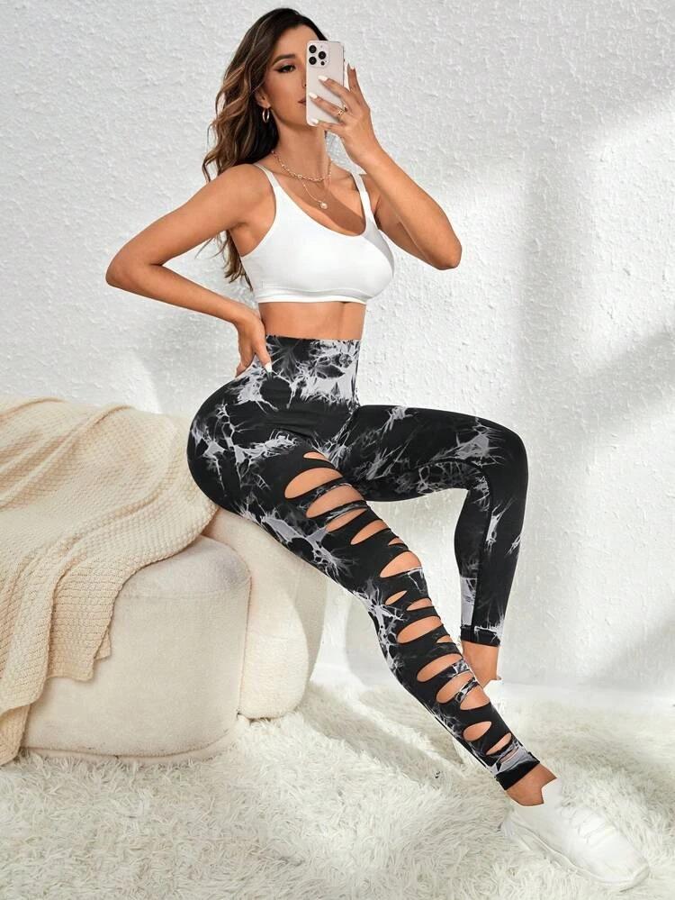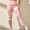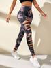 Pantalones de Yoga Huecos Tie-Dye Transfronterizos de Cintura Alta Levanta Glúteos Pantalones de Fitness Pantalones para Correr Ropa de Yoga Pantalones de Control de Abdomen para Mujer