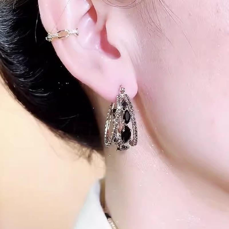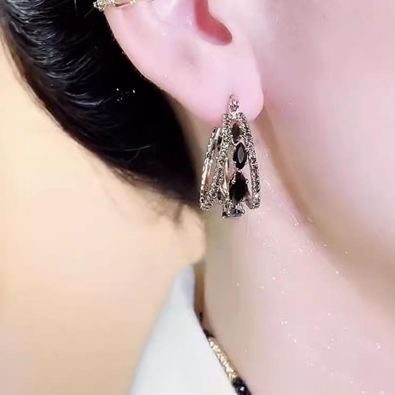 Pendientes de cristal de alta calidad, ligeros, lujosos y elegantes, pendientes franceses 2023, nuevos y modernos pendientes de cristal negro para mujer.