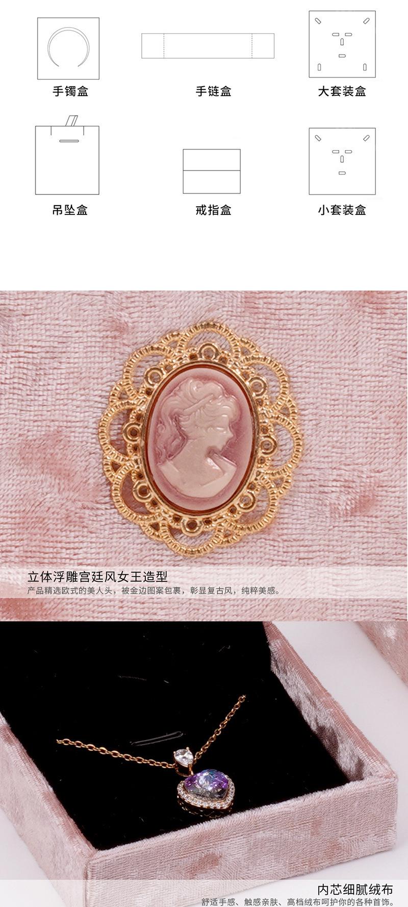 Caja de joyería rosa terciopelo estilo reina retro europea y americana, caja para guardar anillos, collares y otras joyas, caja de regalo
