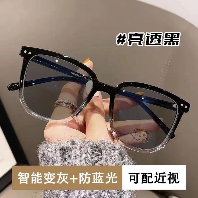 Lentes de montura negra para mujer que cambian de color, luz anti-azul, antirradiación, miopía, ojos, para hombre, luz plana, aspecto sencillo, artefacto, estilo coreano, modernos, montura grande