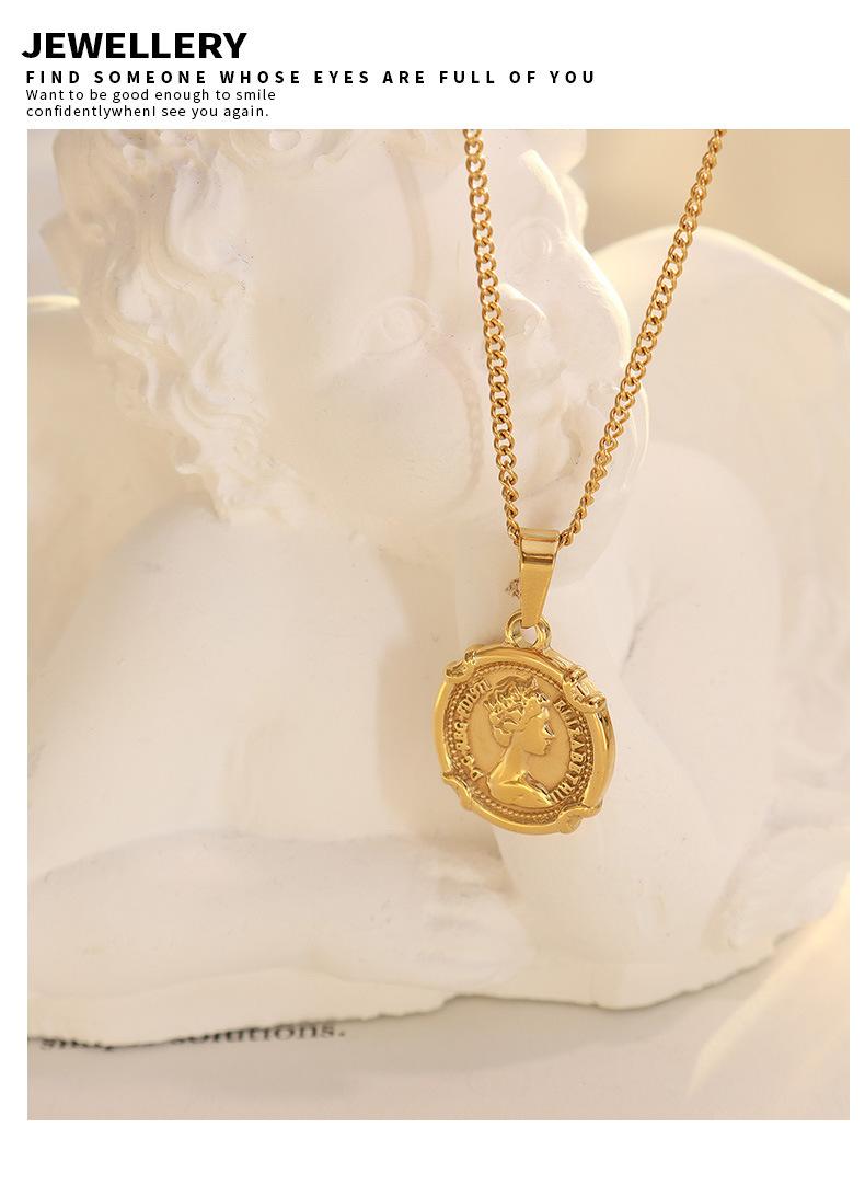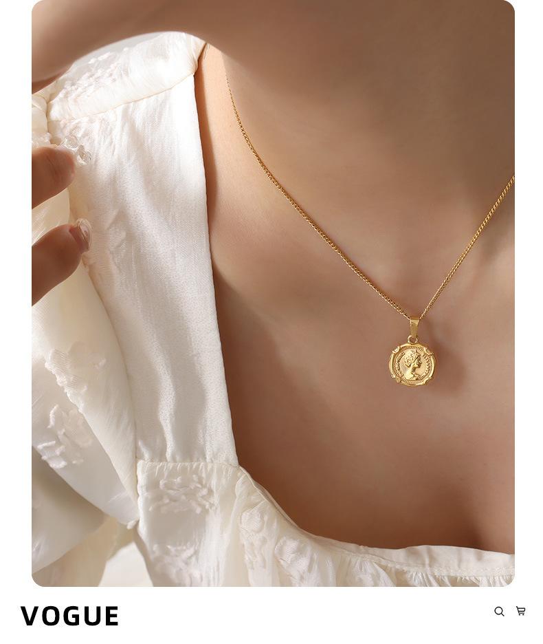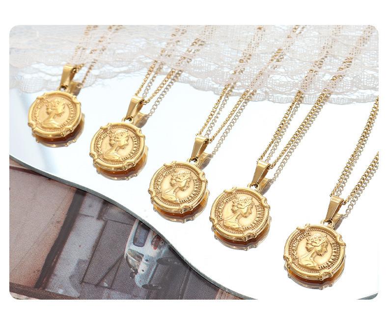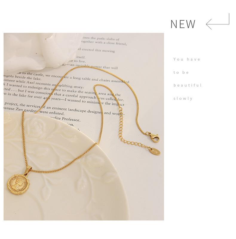 Collar con Colgante de Retratos de Reina de Palacio Retro Francés de Lujo Ligero ins para Mujer, Versátil, de Acero Inoxidable Transfronterizo, Joyería al por Mayor