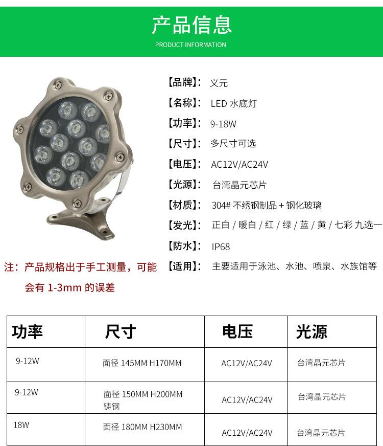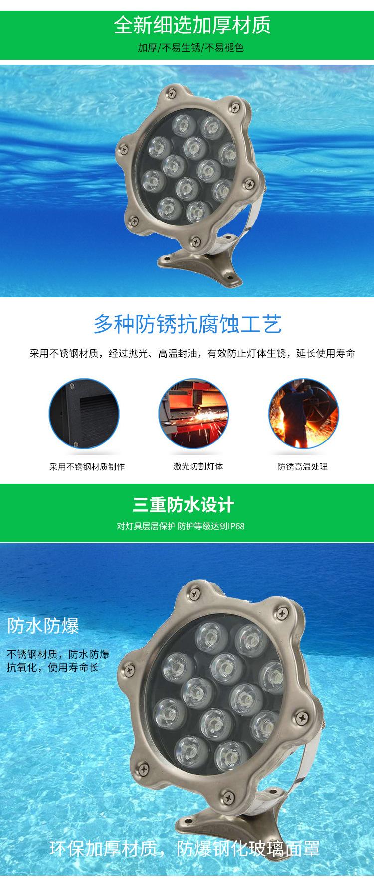 Venta al por mayor de luz LED subacuática para paisaje, foco para estanque de peces, bajo voltaje, 12 V/24 V, luz RGB colorida para piscina, fuente, luz para fuente