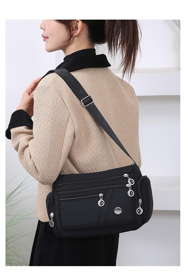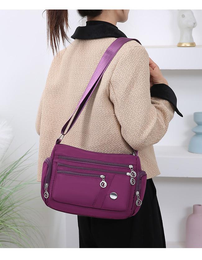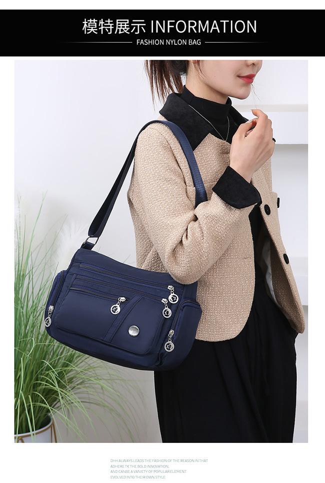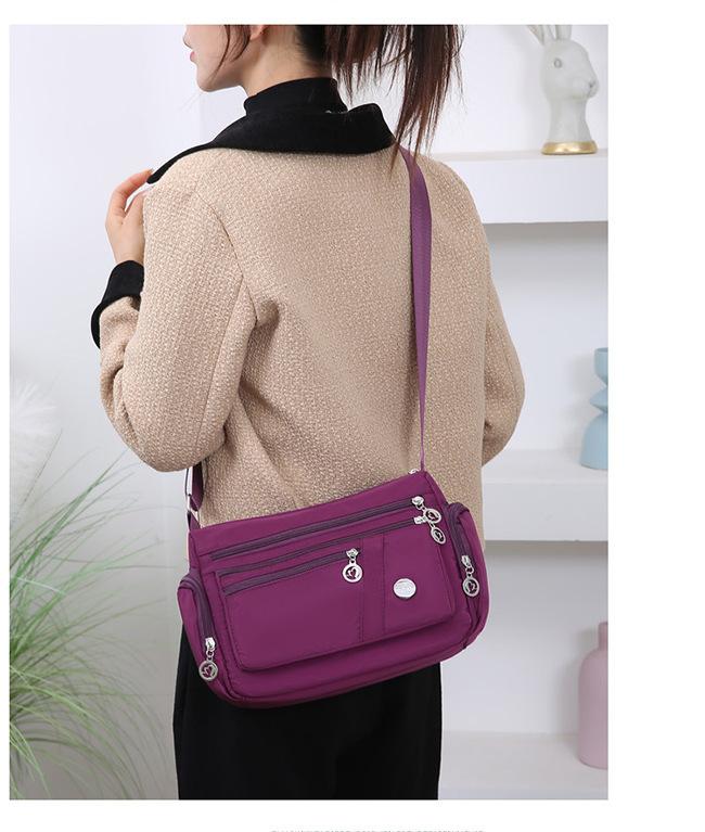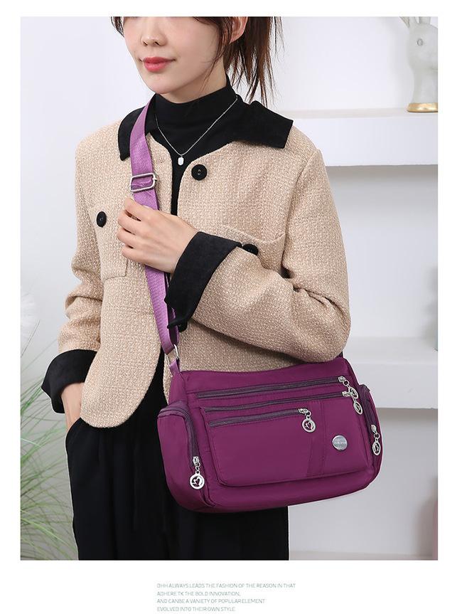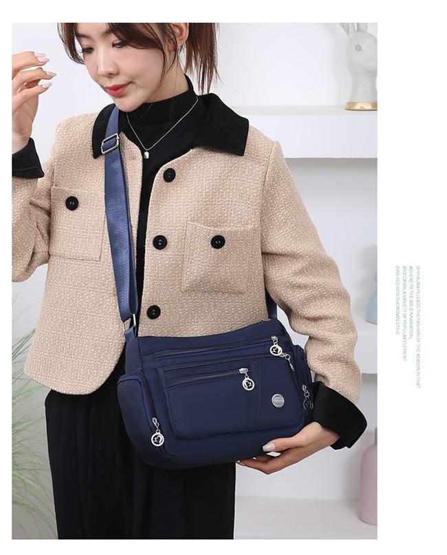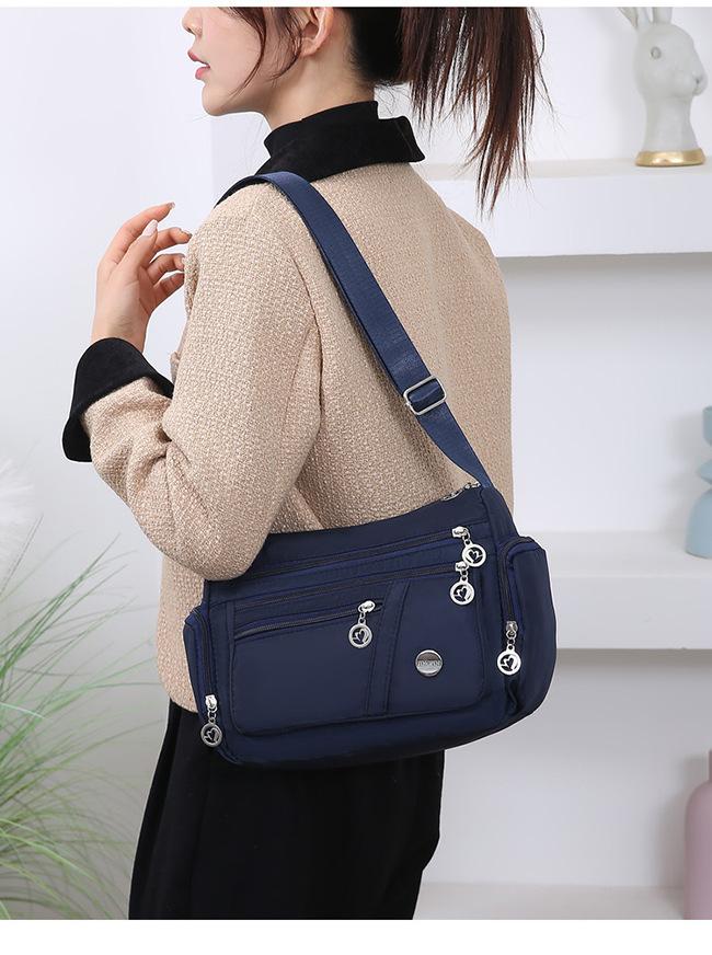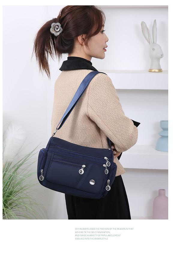 Bolso de hombro para mujer, de nailon, impermeable, multifuncional, de gran capacidad, para madres de mediana edad, estilo coreano, de color sólido, tipo mensajero