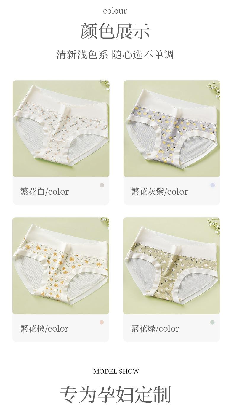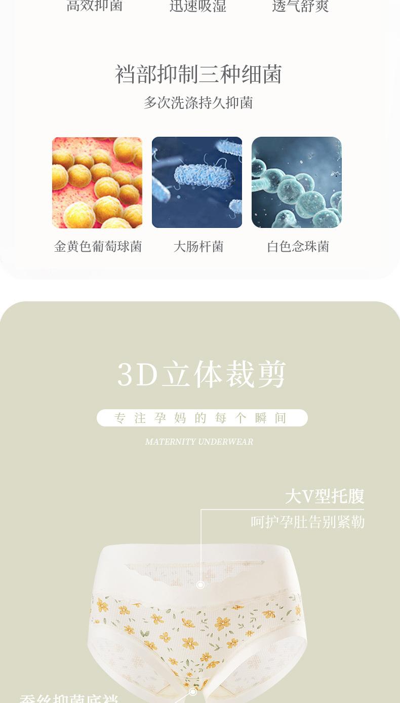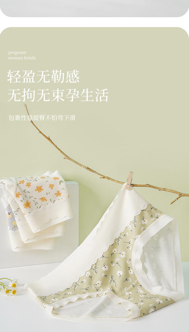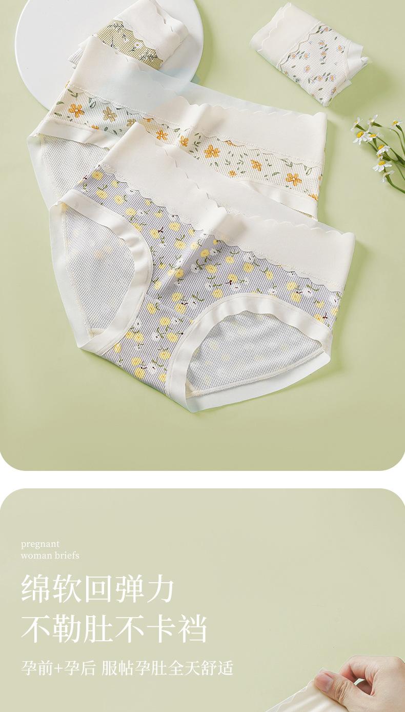 Ropa interior para embarazadas, con soporte abdominal, bragas florales de cintura media, de seda, antibacteriana, no apretada, no pegada, ropa interior estampada para embarazadas