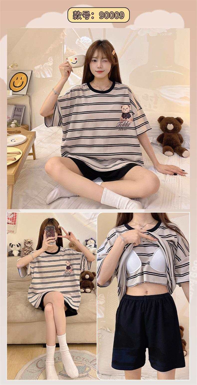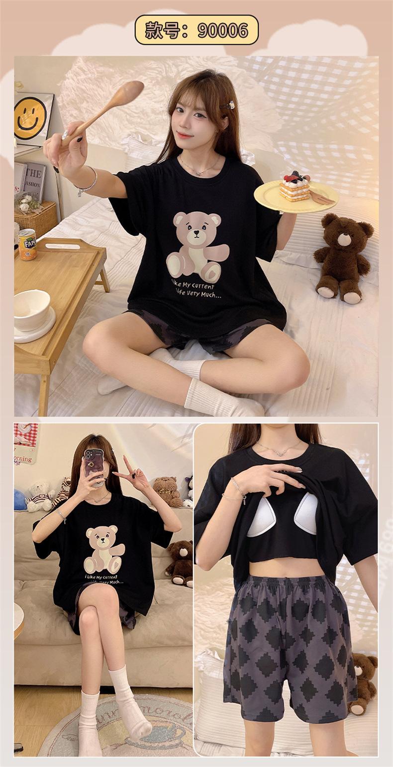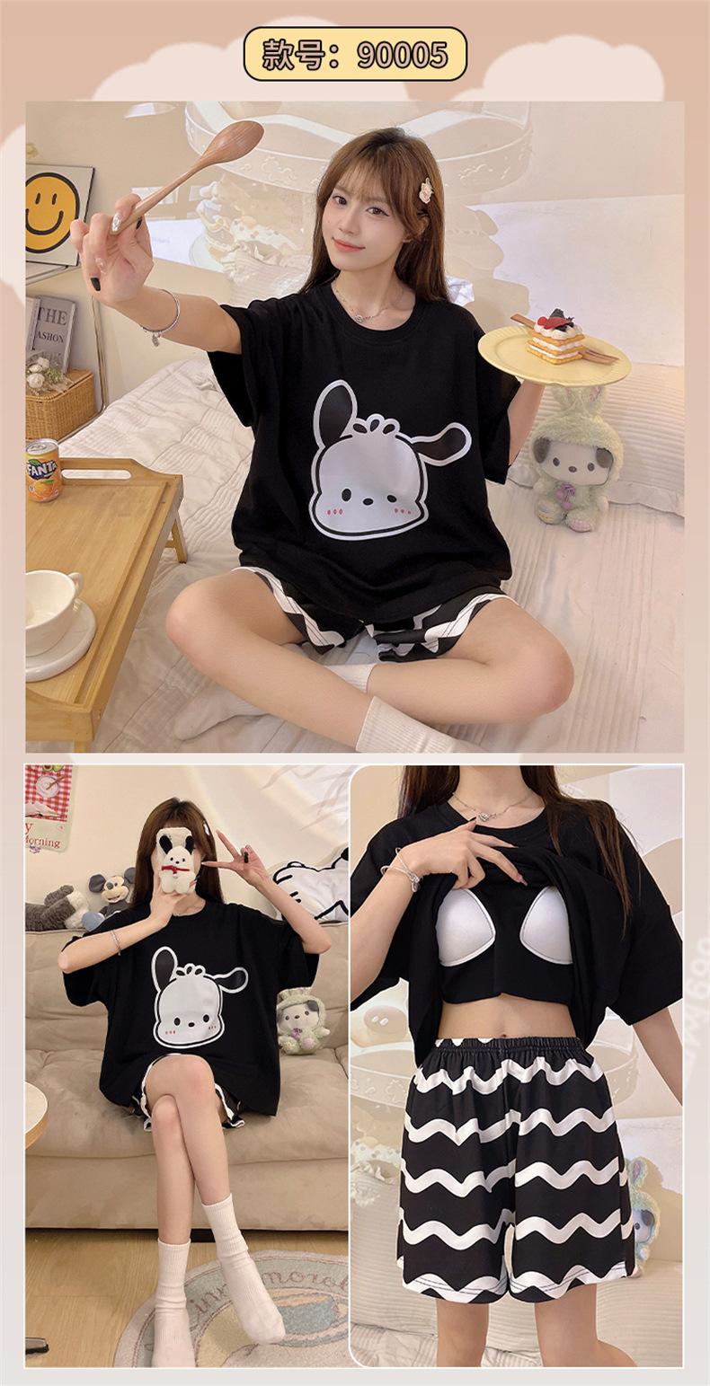 Verano Nuevo Shorts Manga Corta Cuello Redondo Pijamas Niñas Lindo Dibujo Animado Estudiantes con Almohadilla en el Pecho Ropa de Exterior Ropa para el Hogar