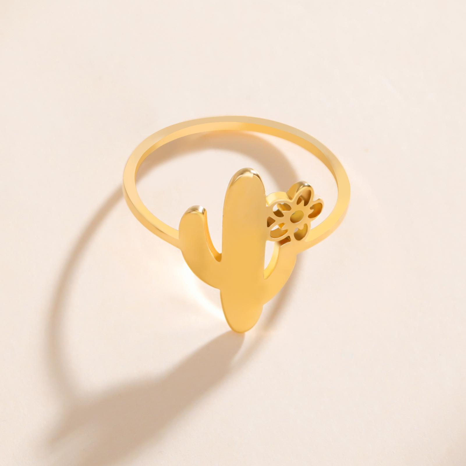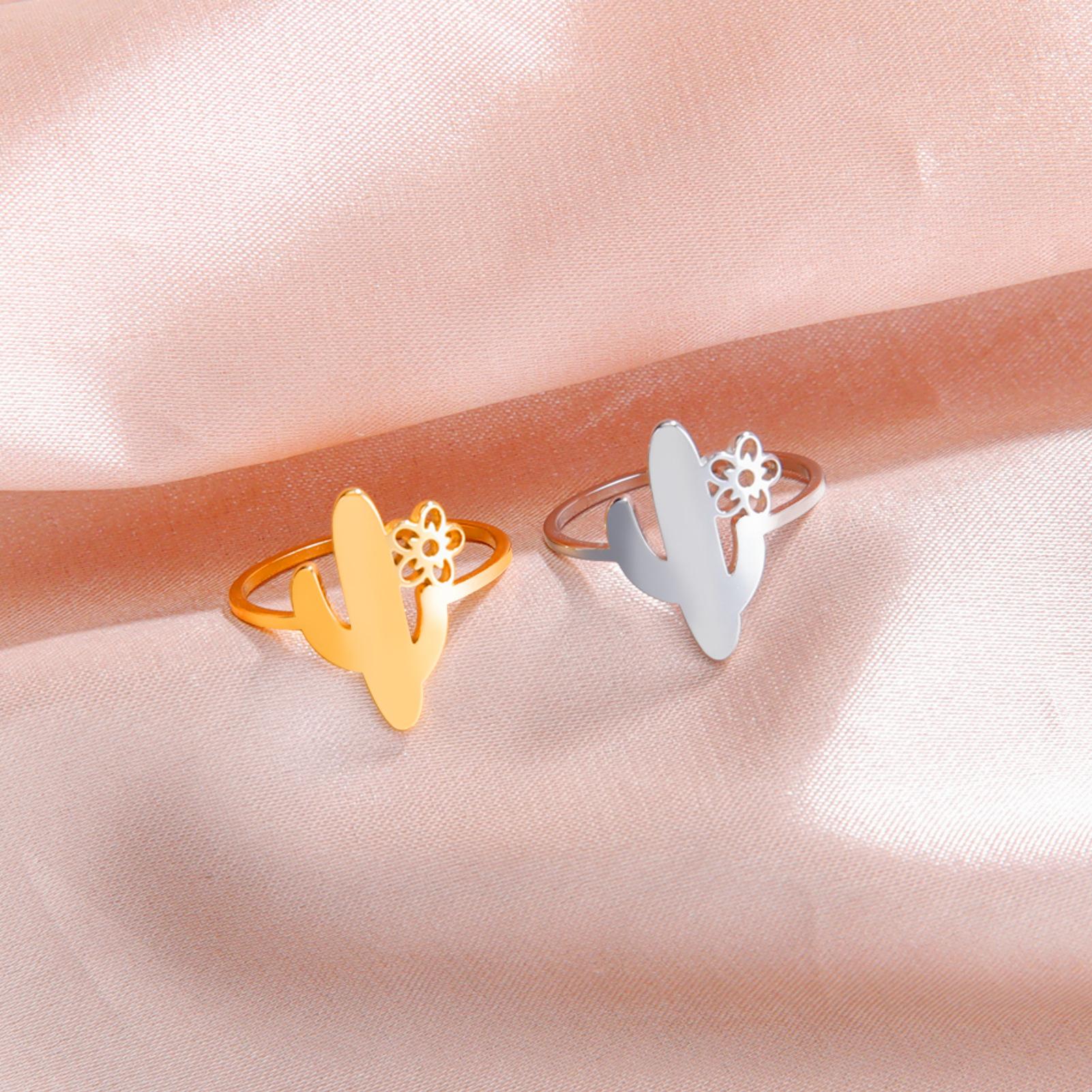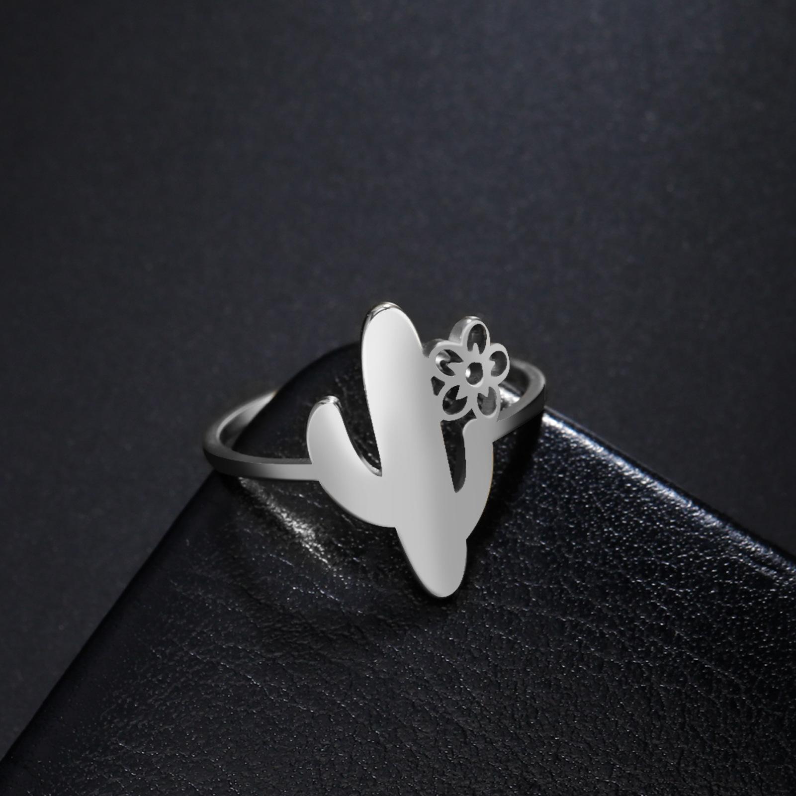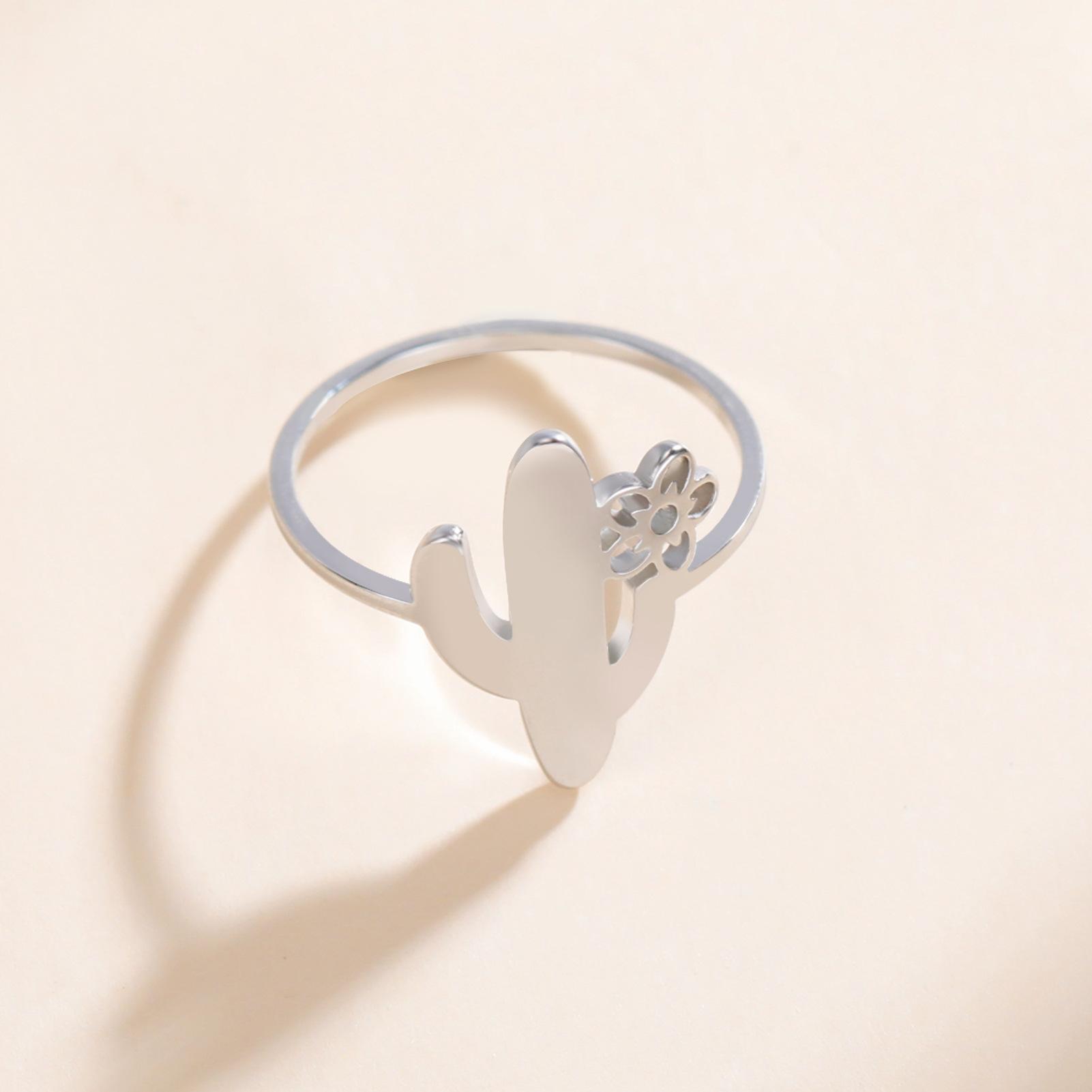 Anillo de cactus simple Anillo minimalista lindo de acero inoxidable para mujer Joyería de planta de moda regalo de cumpleaños