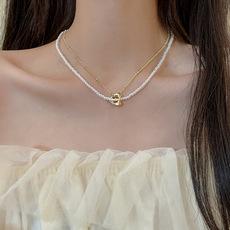 Collar de corazón de perlas de doble capa estilo Ins para mujer, diseño de nicho, cadena de clavícula versátil de internet, nueva tendencia de estilo 2023