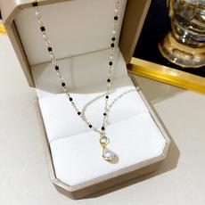 Collar de cristal blanco y negro retro francés para mujer, colgante de perla con personalidad de estilo frío y sencillo, accesorios de chica súper sexy al por mayor