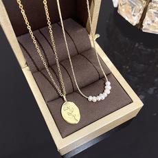 Collar de rosa de marca redonda retro europea y americana para mujer, temperamento súper hada, colgante de perla, cadena para clavícula, accesorios de personalidad para chica hot