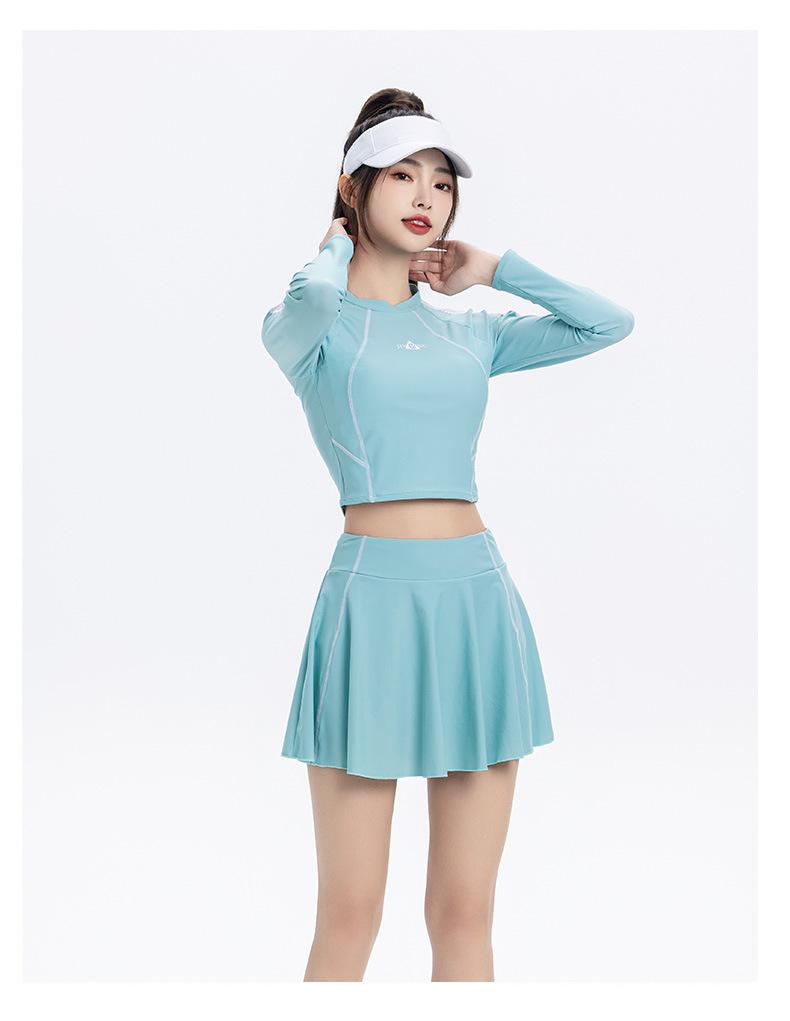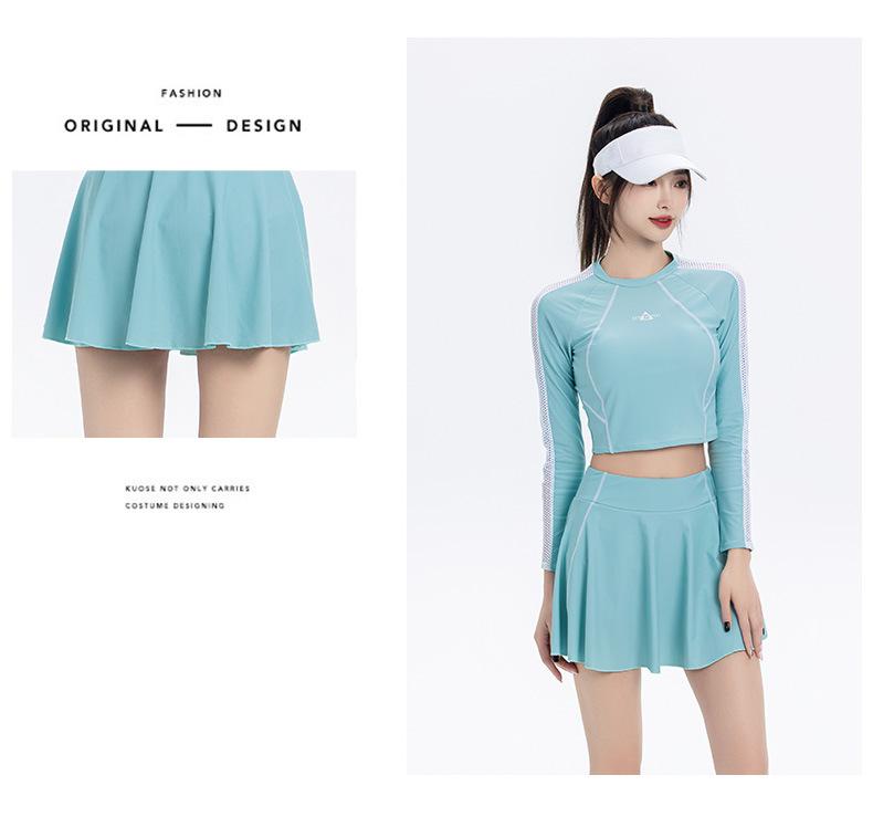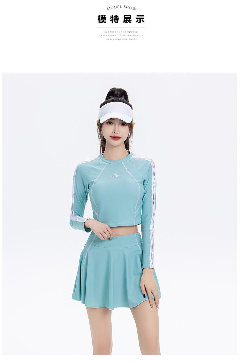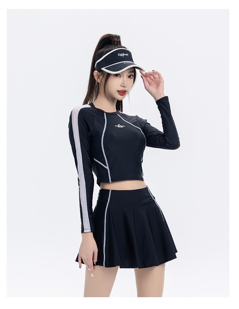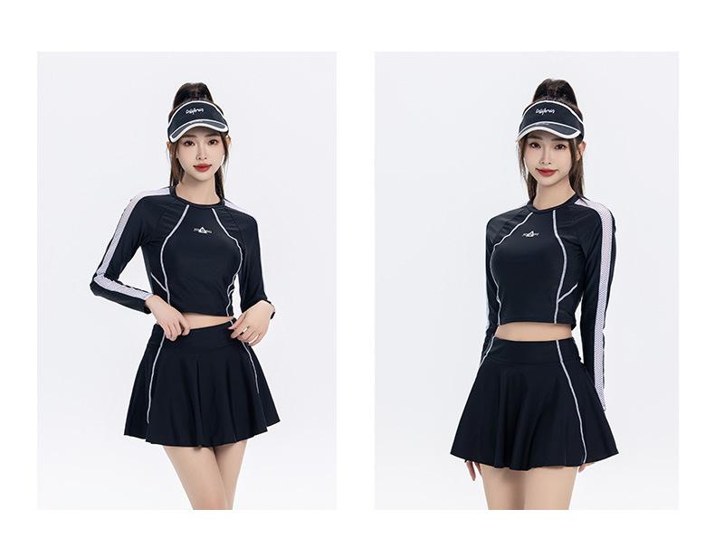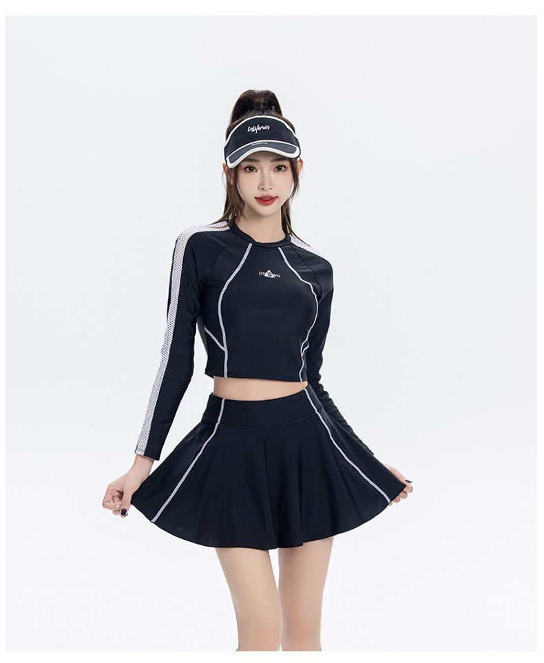 Nuevo traje de baño conservador de manga larga dividido para mujer, estilo deportivo, vestido ajustado y adelgazante, traje de baño, ropa de baño de aguas termales