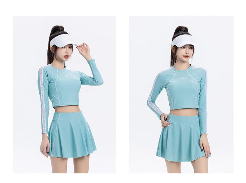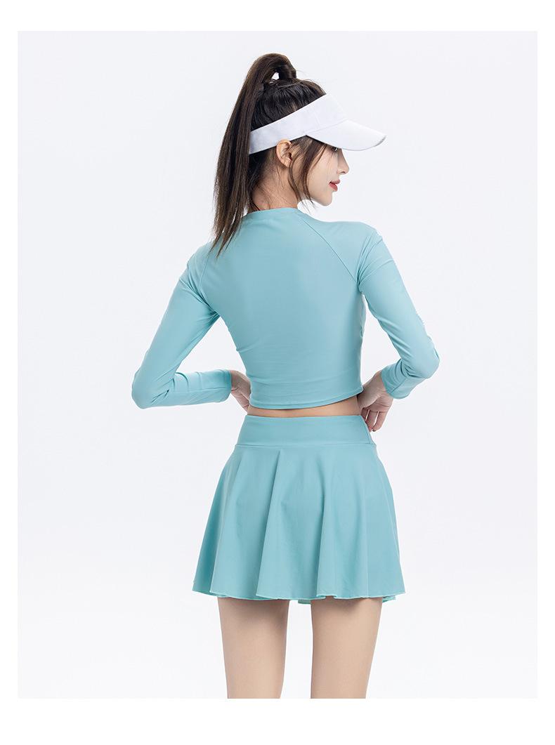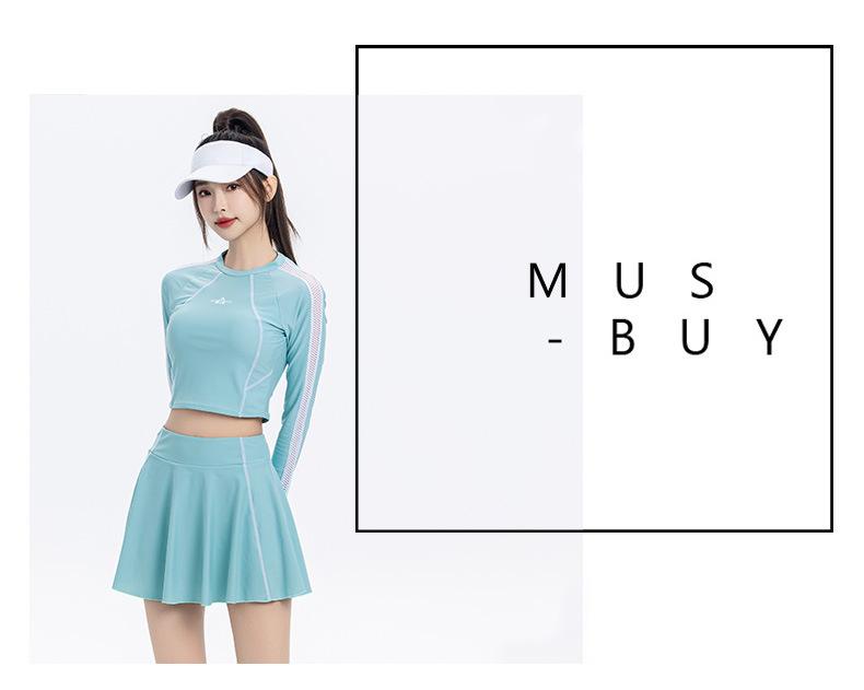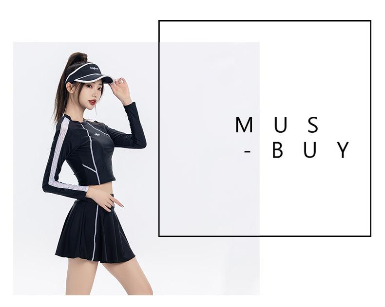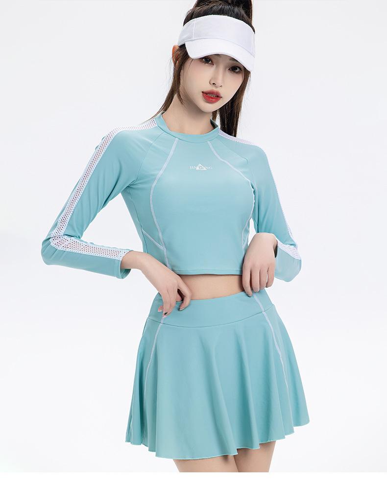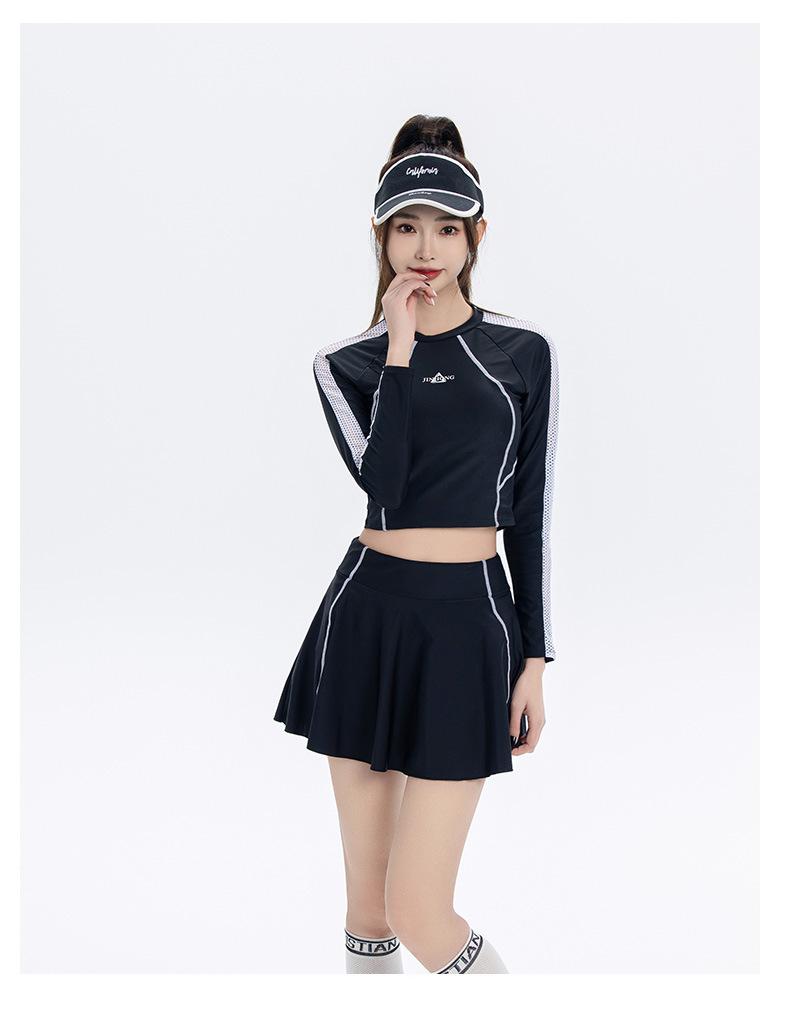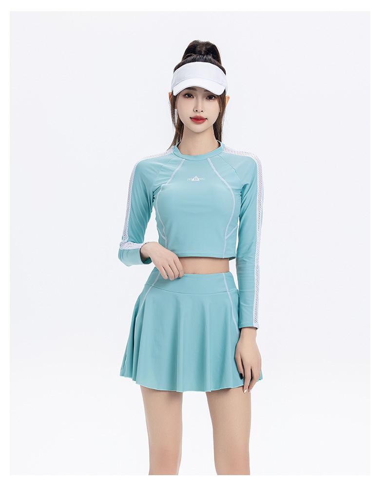 Nuevo traje de baño conservador de manga larga dividido para mujer, estilo deportivo, vestido ajustado y adelgazante, traje de baño, ropa de baño de aguas termales