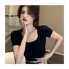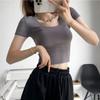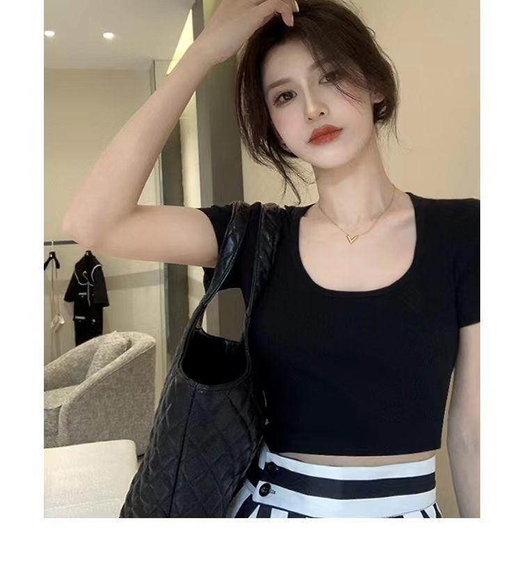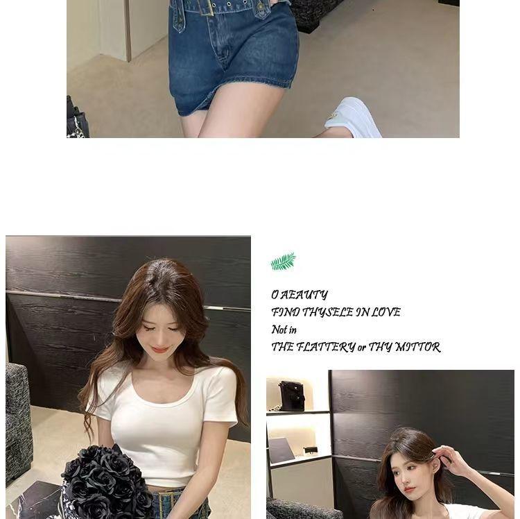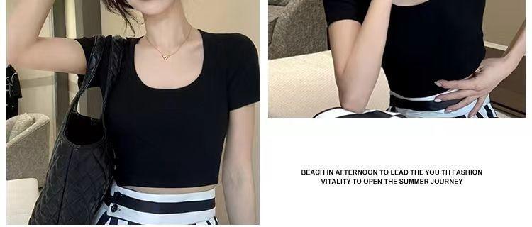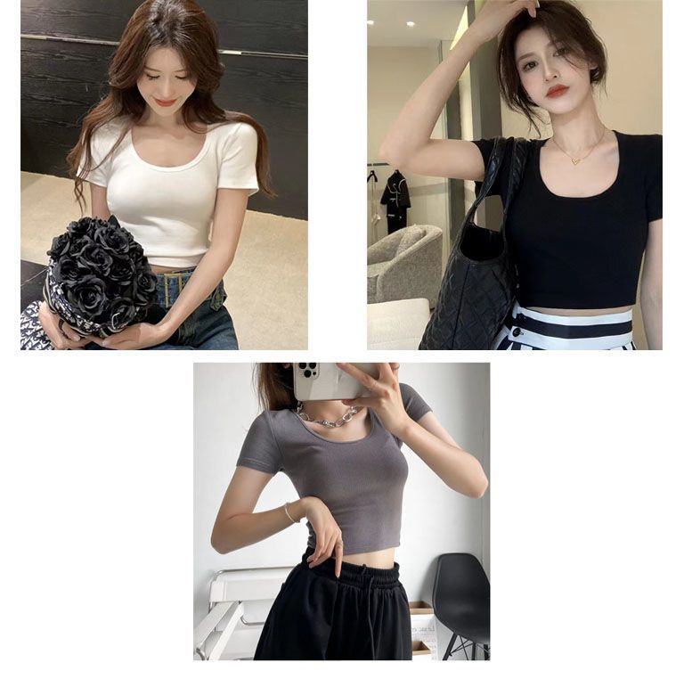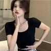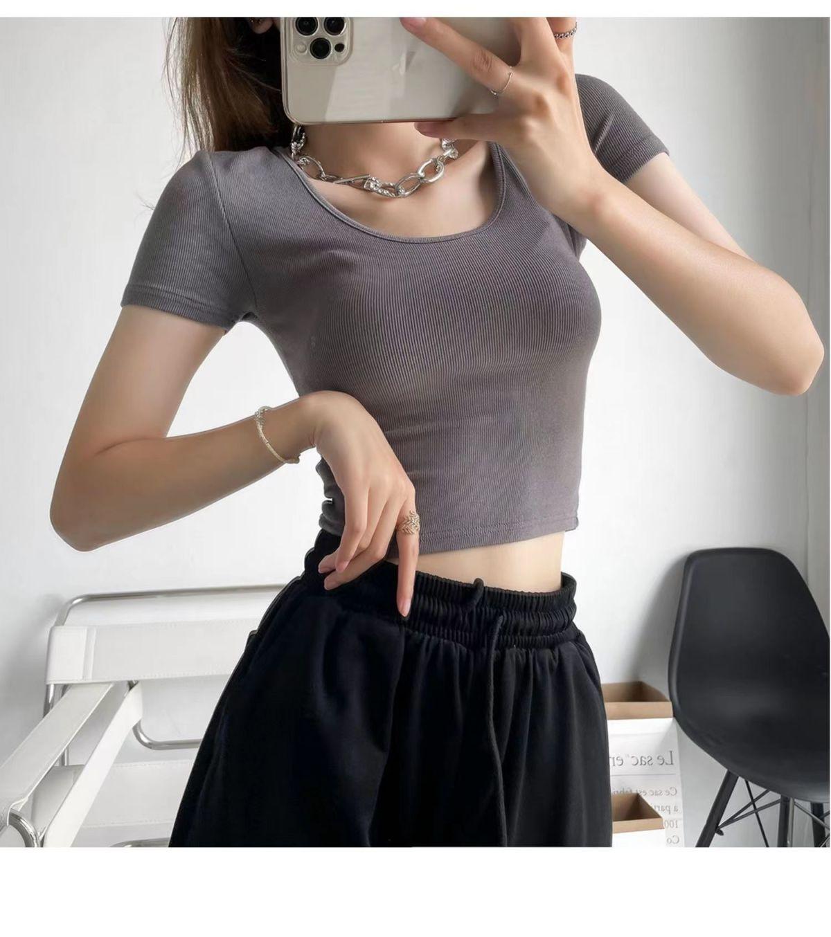 Playera Corta Cuello U Top Chica Picante 2023 Nueva Versión Coreana Ins Cintura Alta Ajustada Camiseta Básica Adelgazante Moda Versátil