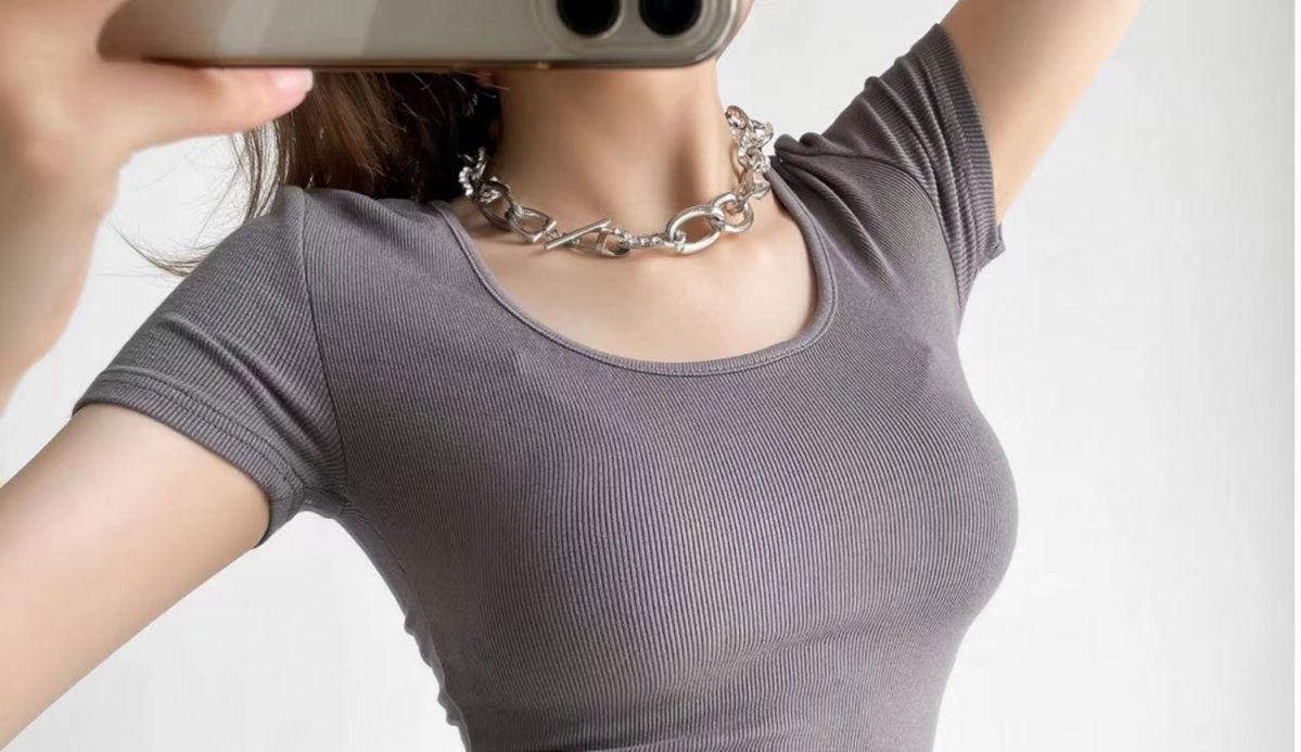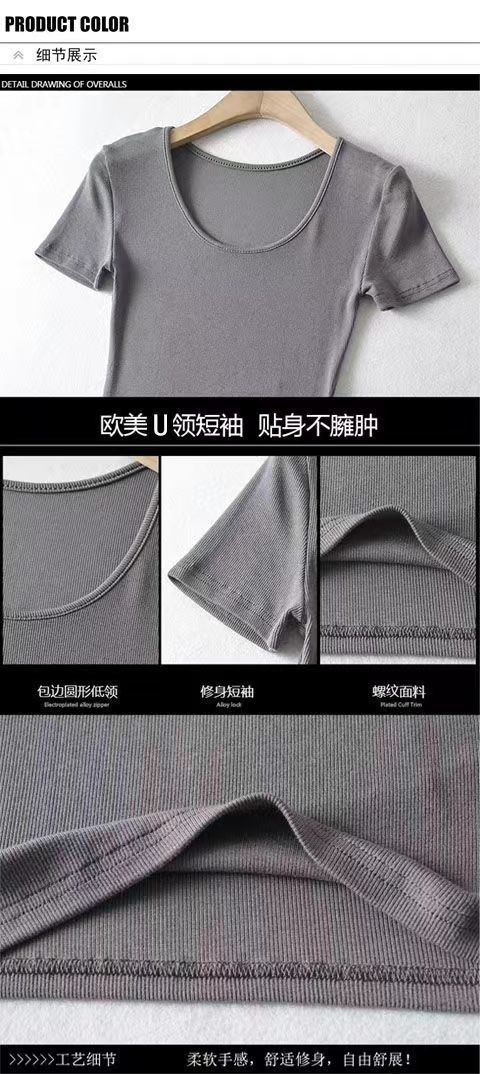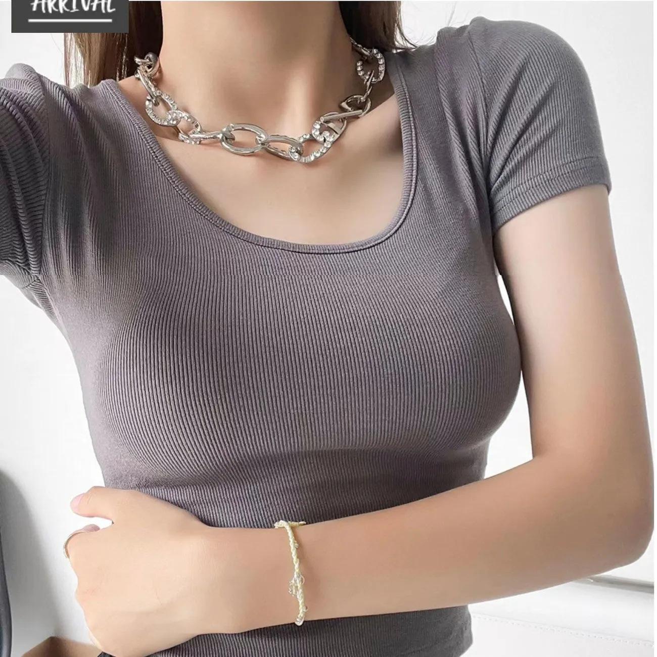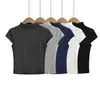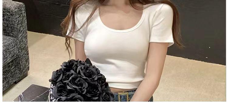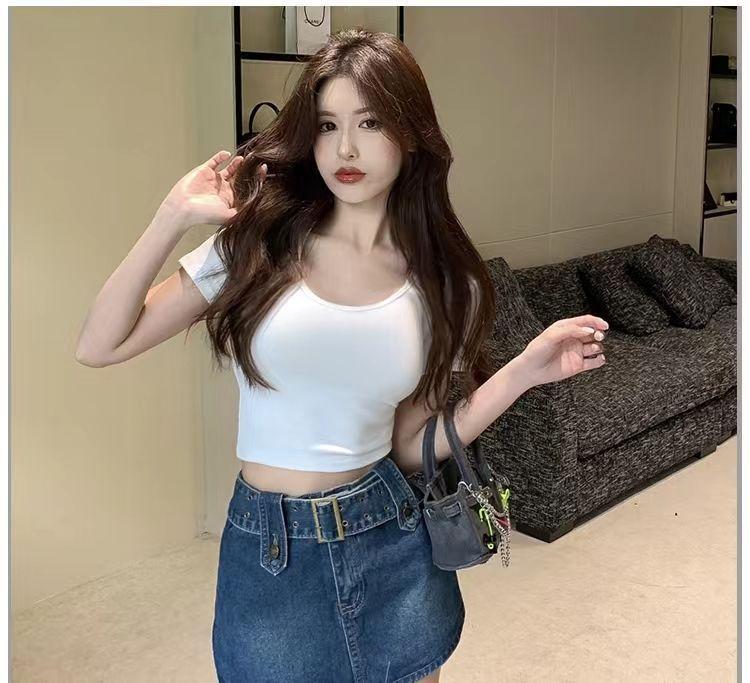 Playera Corta Cuello U Top Chica Picante 2023 Nueva Versión Coreana Ins Cintura Alta Ajustada Camiseta Básica Adelgazante Moda Versátil