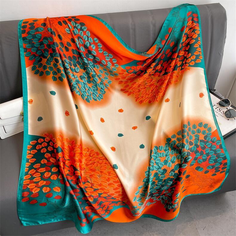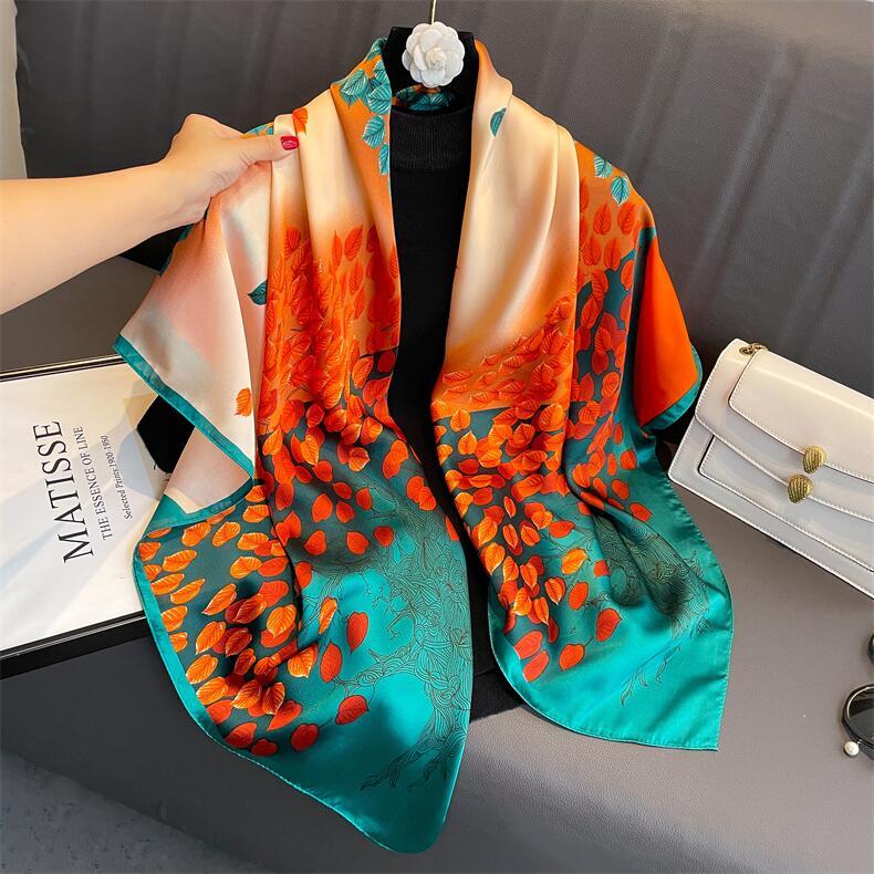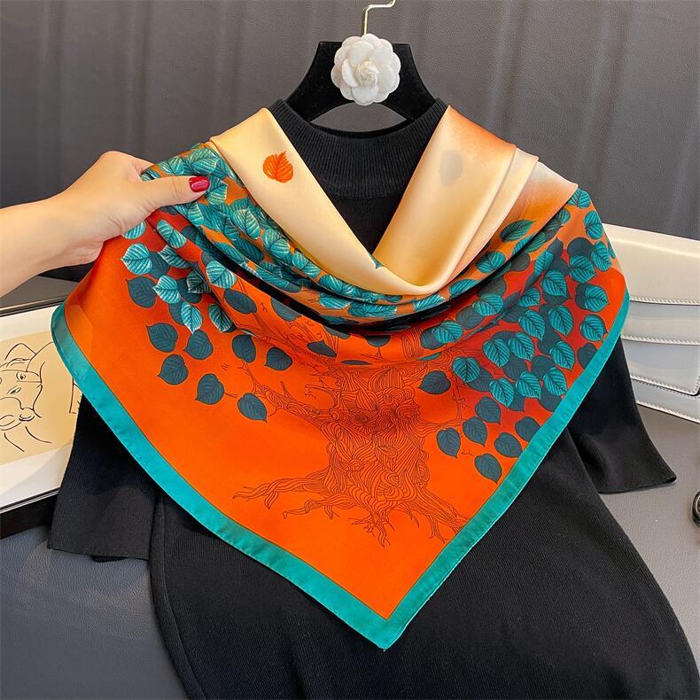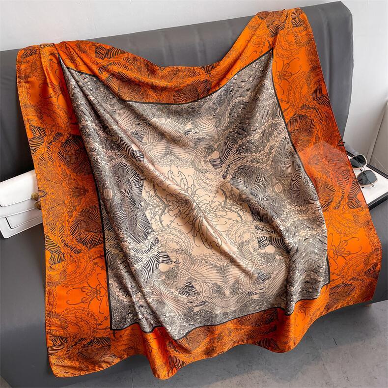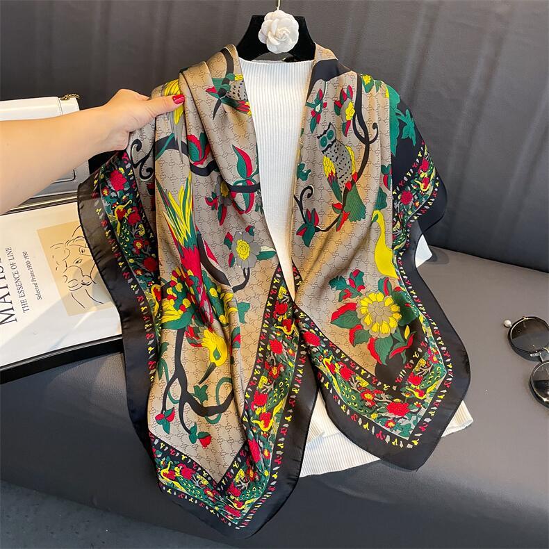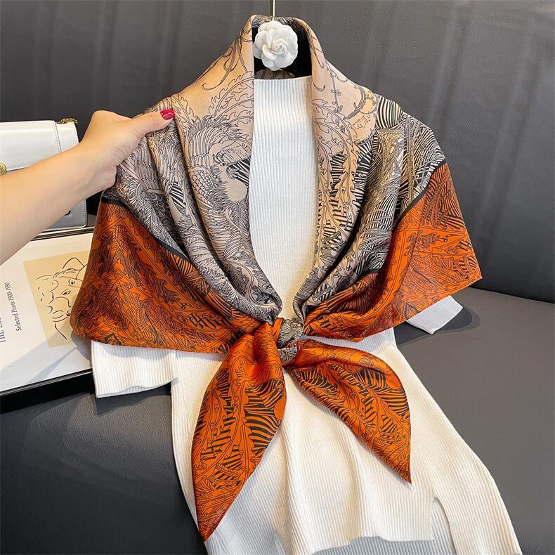 Bufanda de seda de sarga de nuevo estilo, venta al por mayor, bufanda de protección solar estampada de primavera y verano, bufanda cuadrada, bufanda decorativa |
