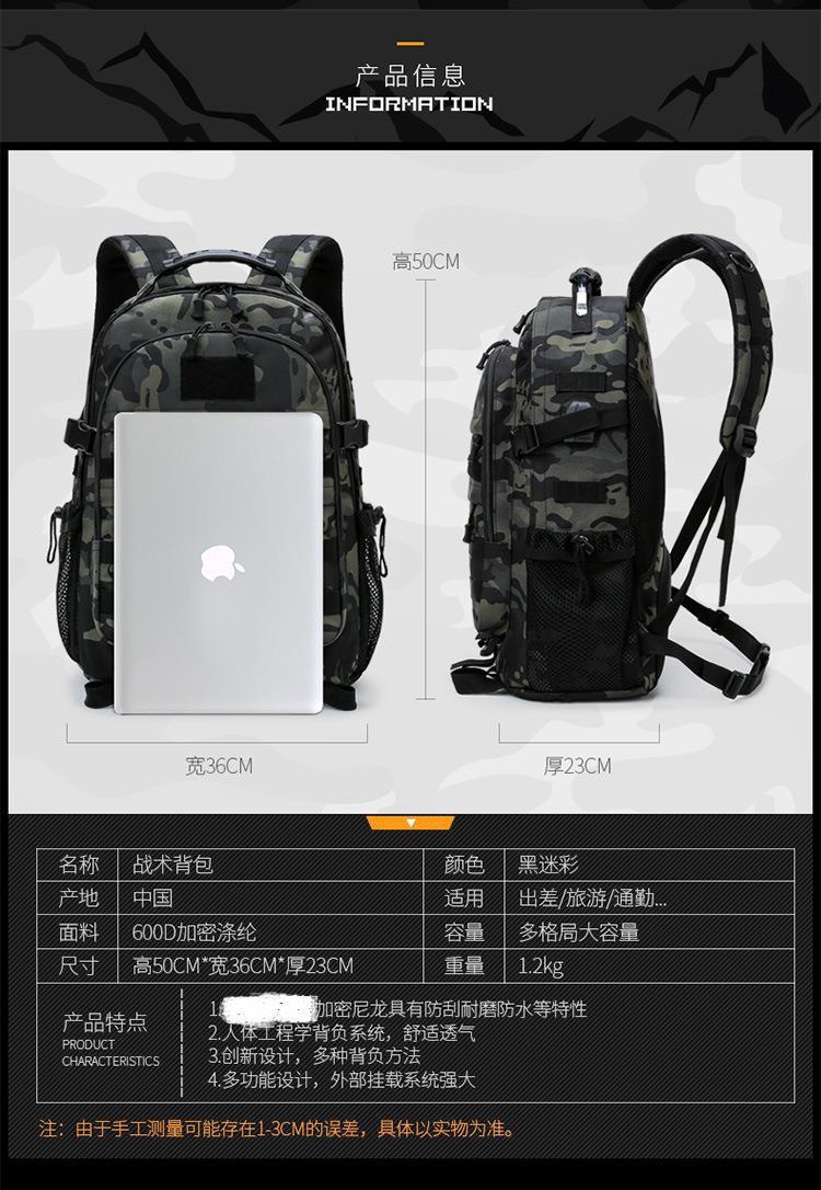Mochila para Hombre para Exterior Táctica Mochila Bolsa de Montañismo Gran Capacidad Deportiva Camuflaje Bolsa Escolar Bolsa de Equipaje para Camping Cojín de Aire