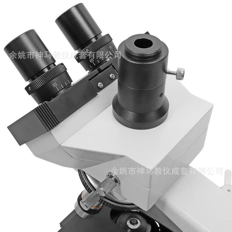 7) Cabeza de observación: Cabezal trinocular tipo deslizante, distancia interpupilar ajustable 55-75 mm, inclinación 45 grados, rotación 360 grados