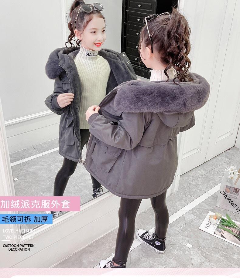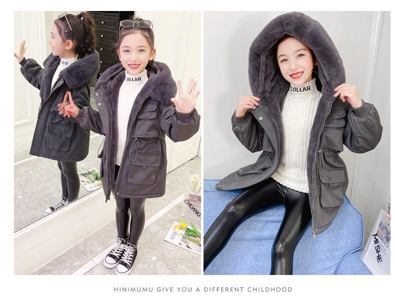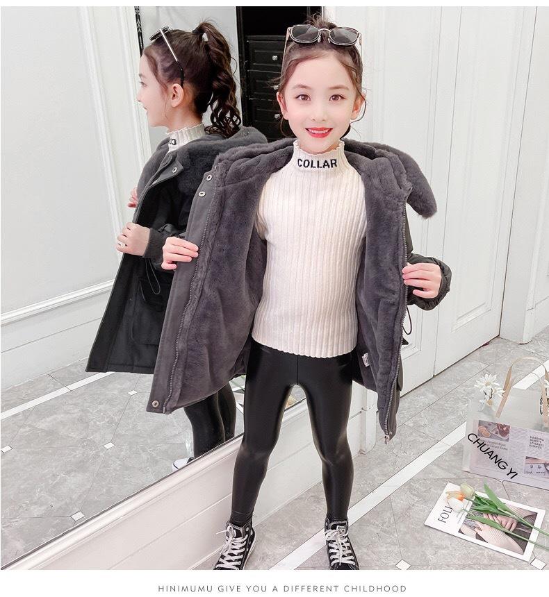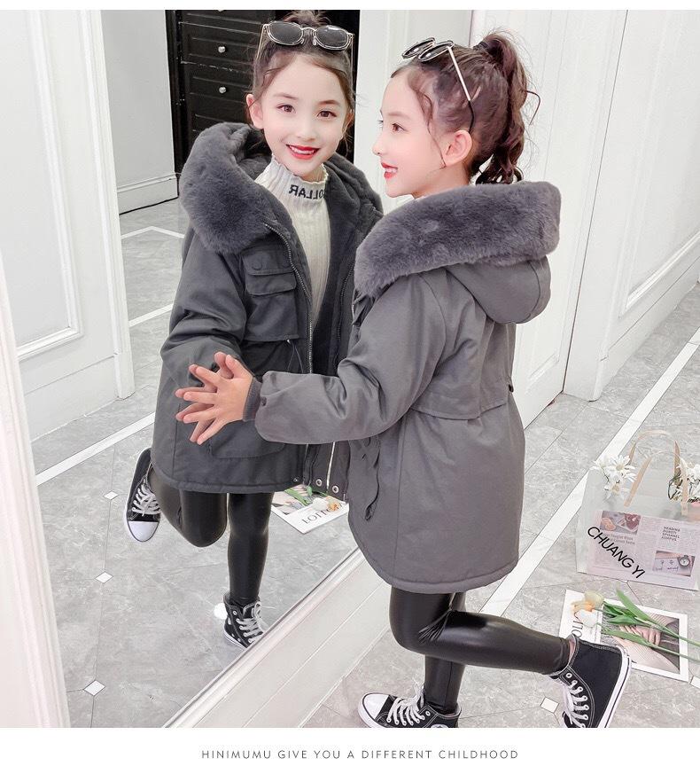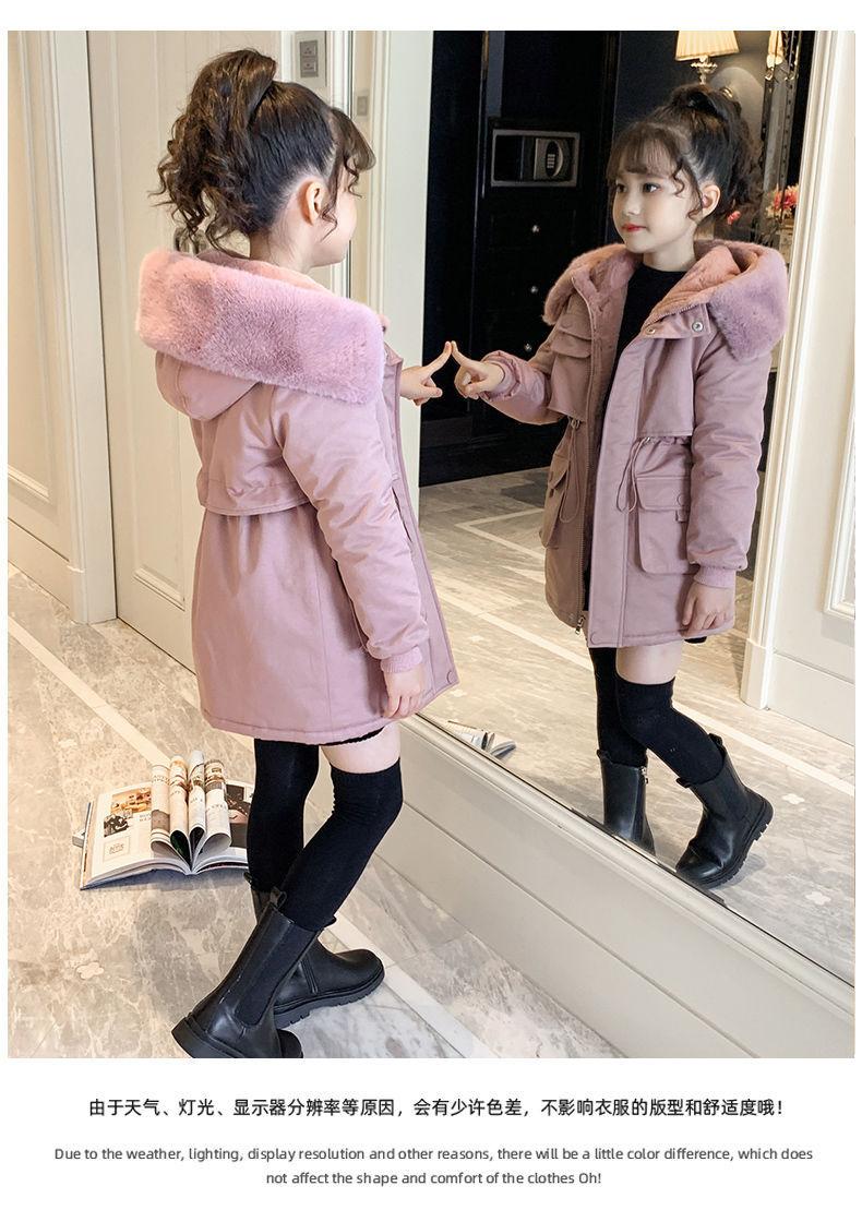 Abrigo de Algodón de Terciopelo para Niñas Otoño e Invierno Largo Medio Estilo Nuevo 2025 Estilo Extranjero Para Niños y Niños Mayores Superar el Abrigo de Algodón