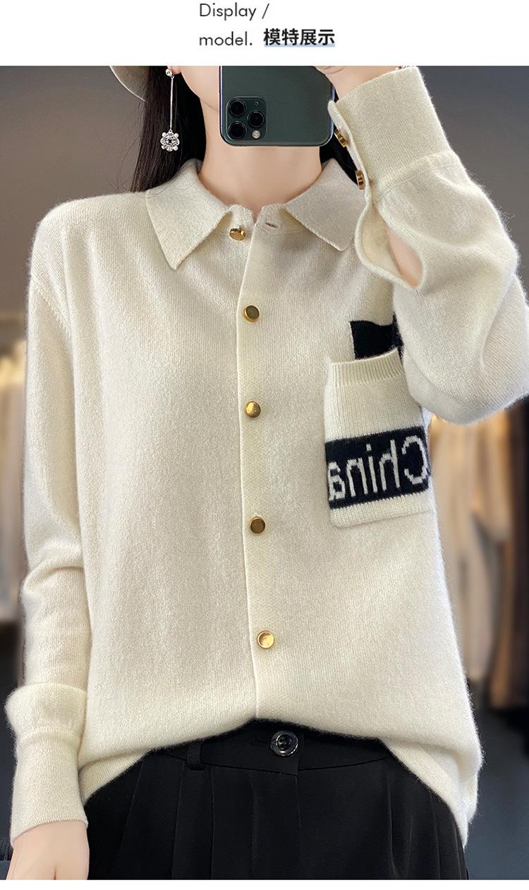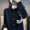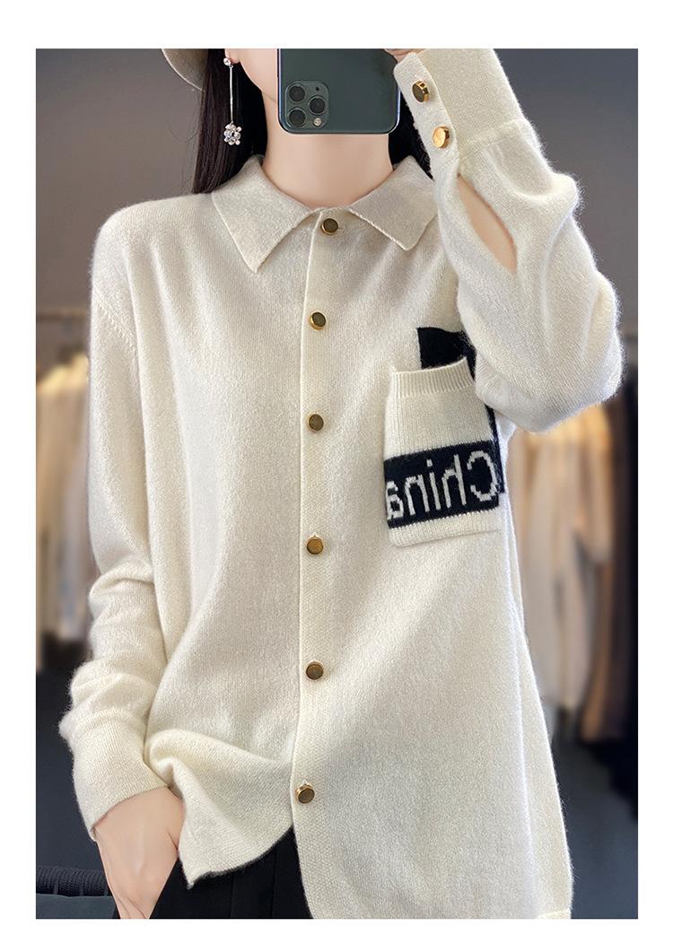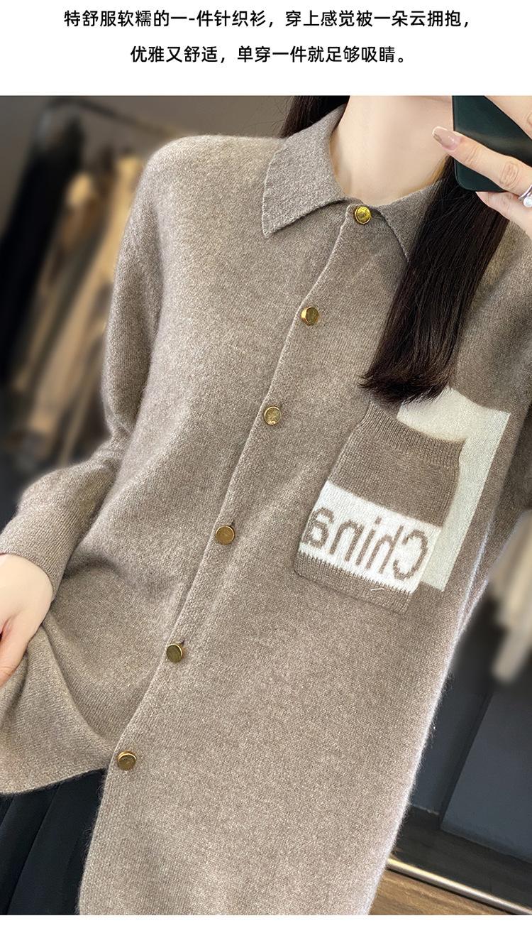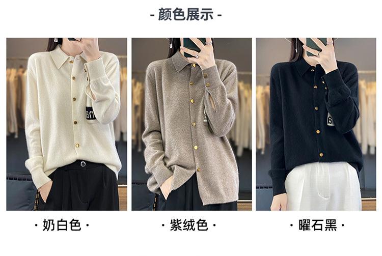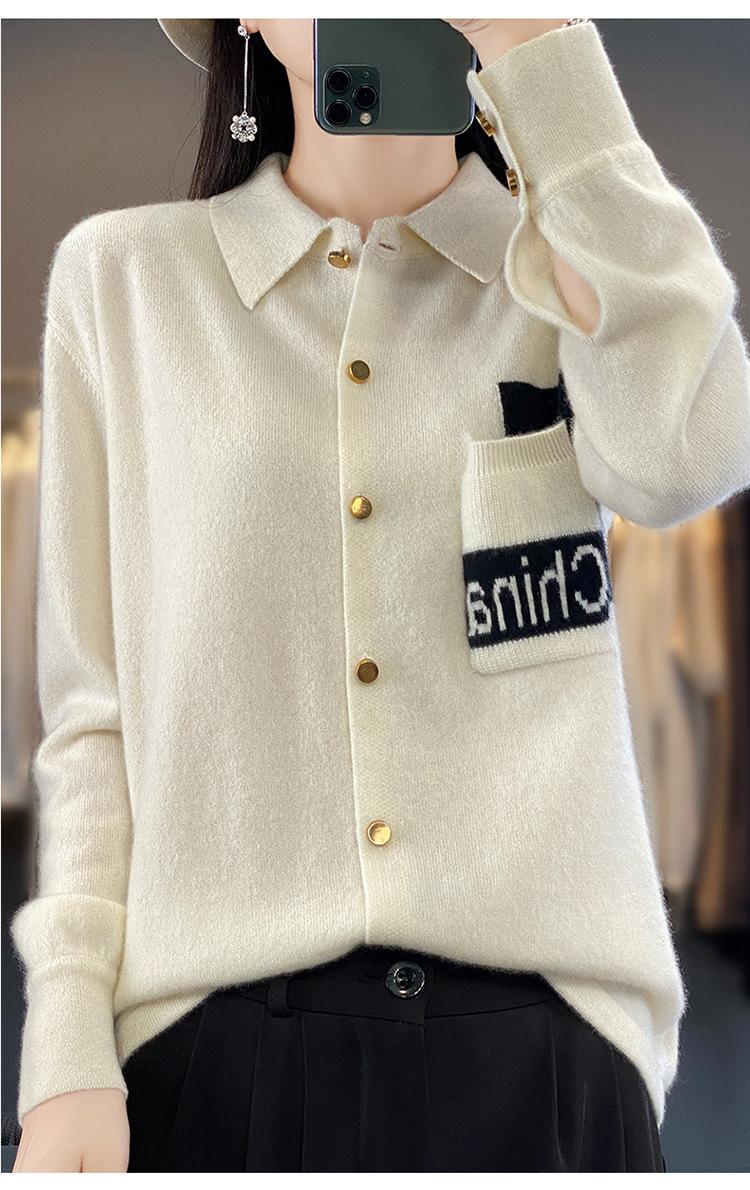 Suéter de Lana Nuevo Otoño e Invierno 2023 para Mujer Cuello POLO Corto Suelto Casual Bolsillo Cárdigan de Punto Top