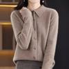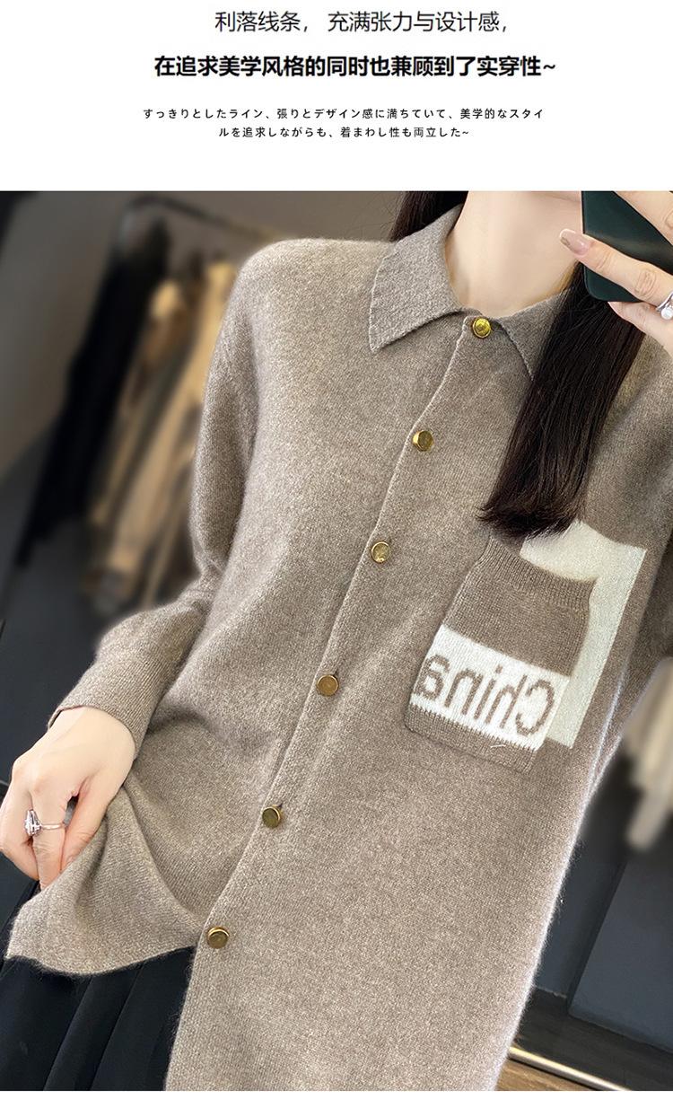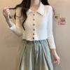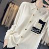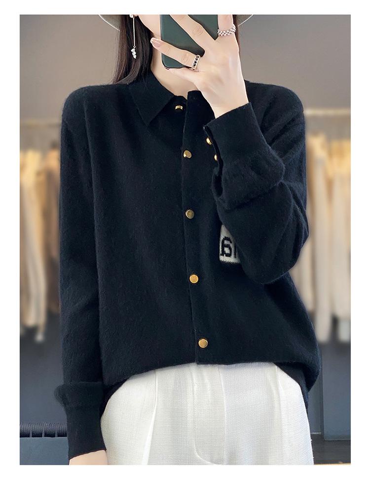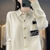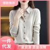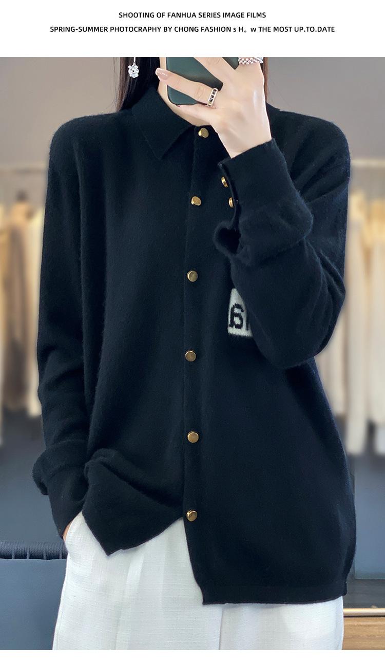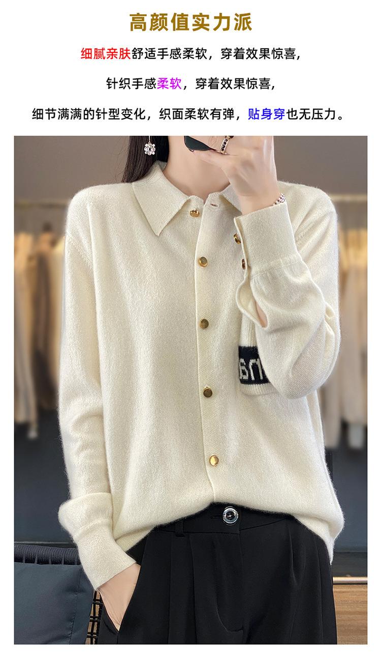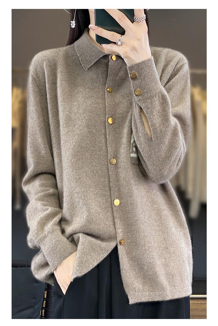 Suéter de Lana Nuevo Otoño e Invierno 2023 para Mujer Cuello POLO Corto Suelto Casual Bolsillo Cárdigan de Punto Top
