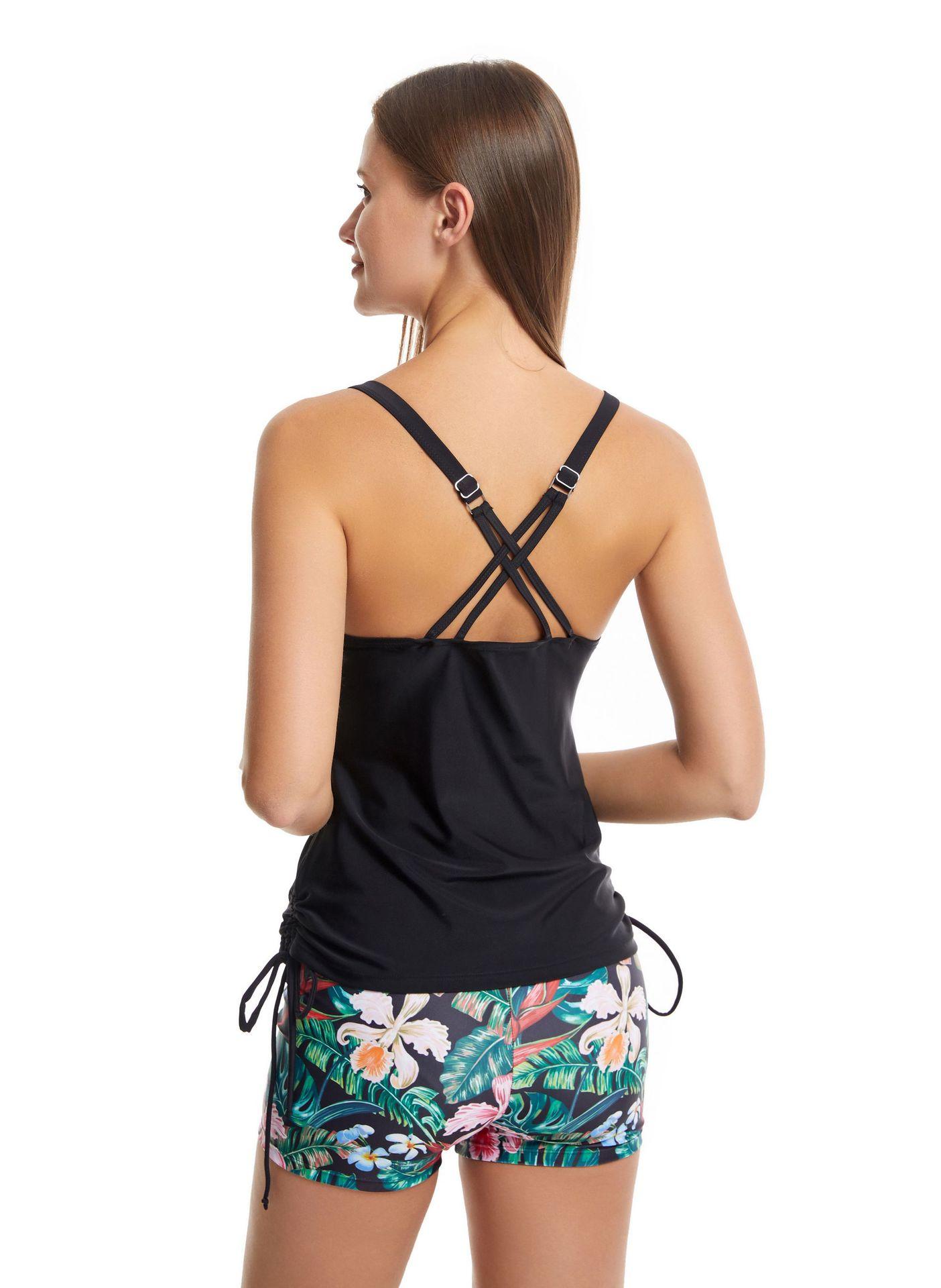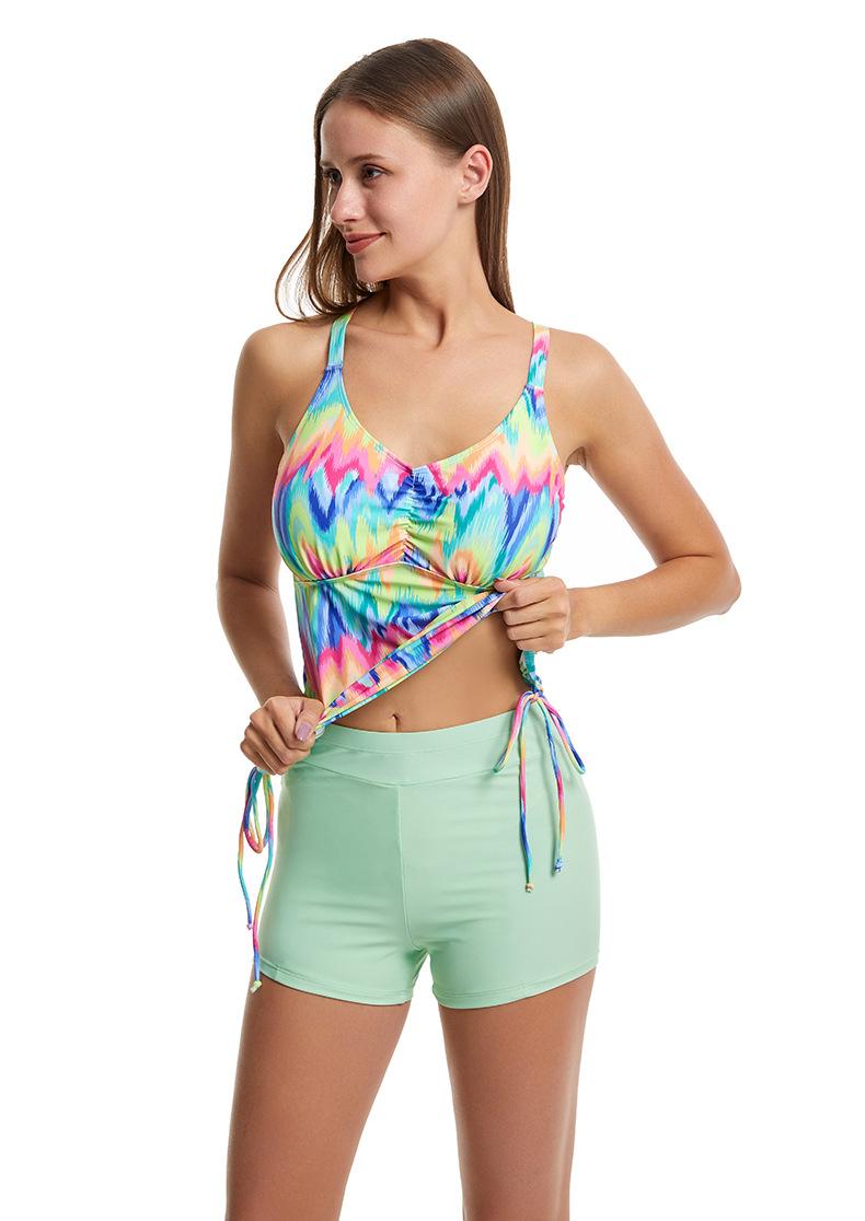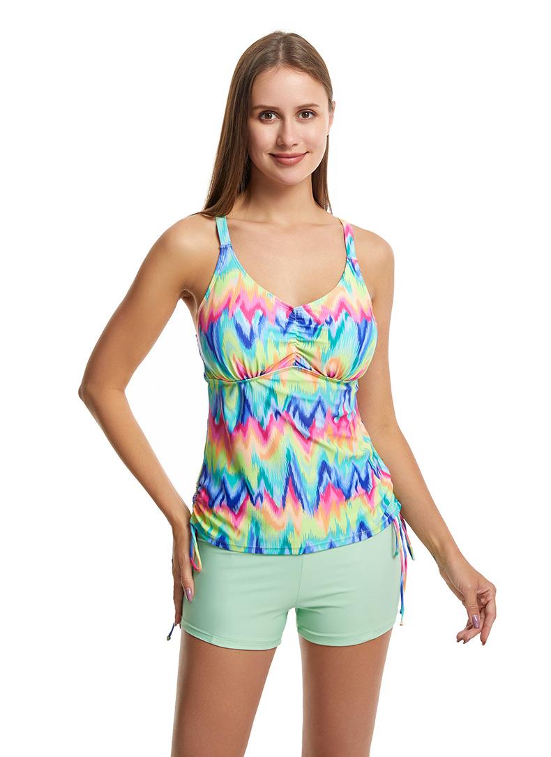 Traje de baño nuevo de 2024 de talla grande europeo y americano, de dos piezas, tipo bóxer takini, con estampado, que cubre el vientre y estiliza