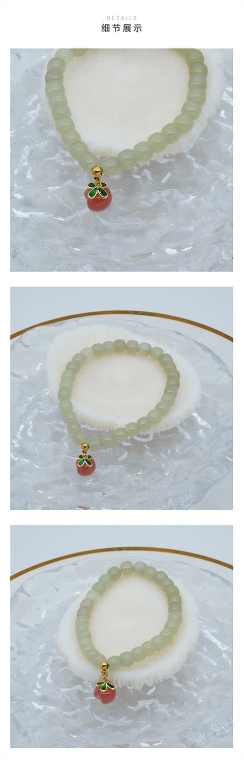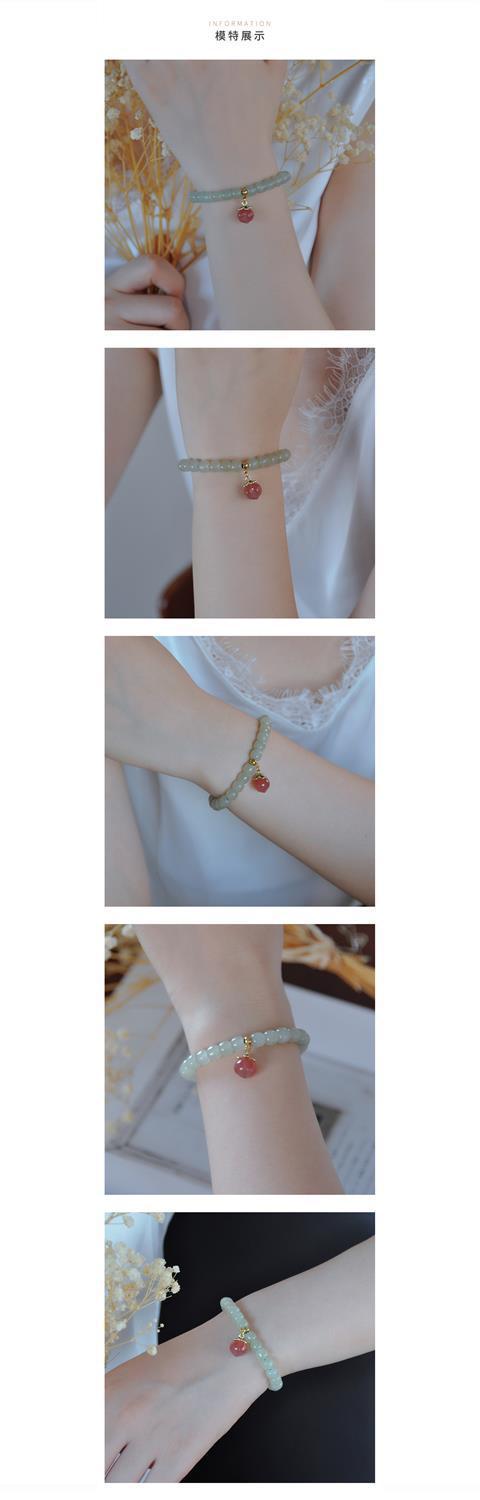 Pulsera Elástica de Imitación de Alta Calidad Hotan yu Melocotón Pulsera ins Nicho con Sentido del Diseño Estilo Mori Pulsera para Novia Lujo Ligero