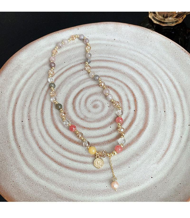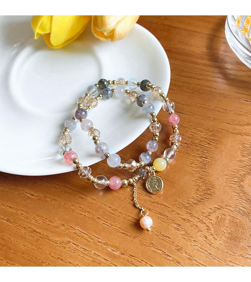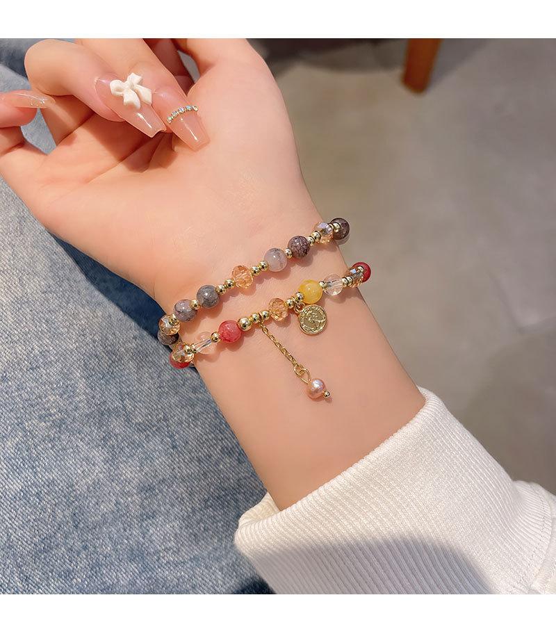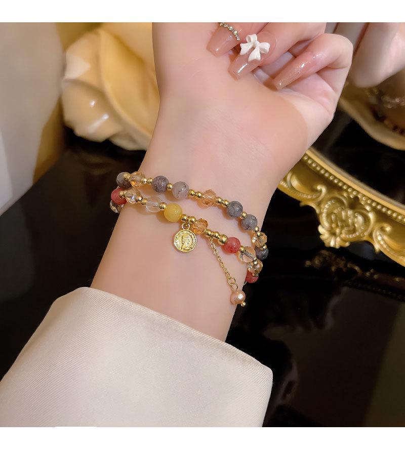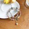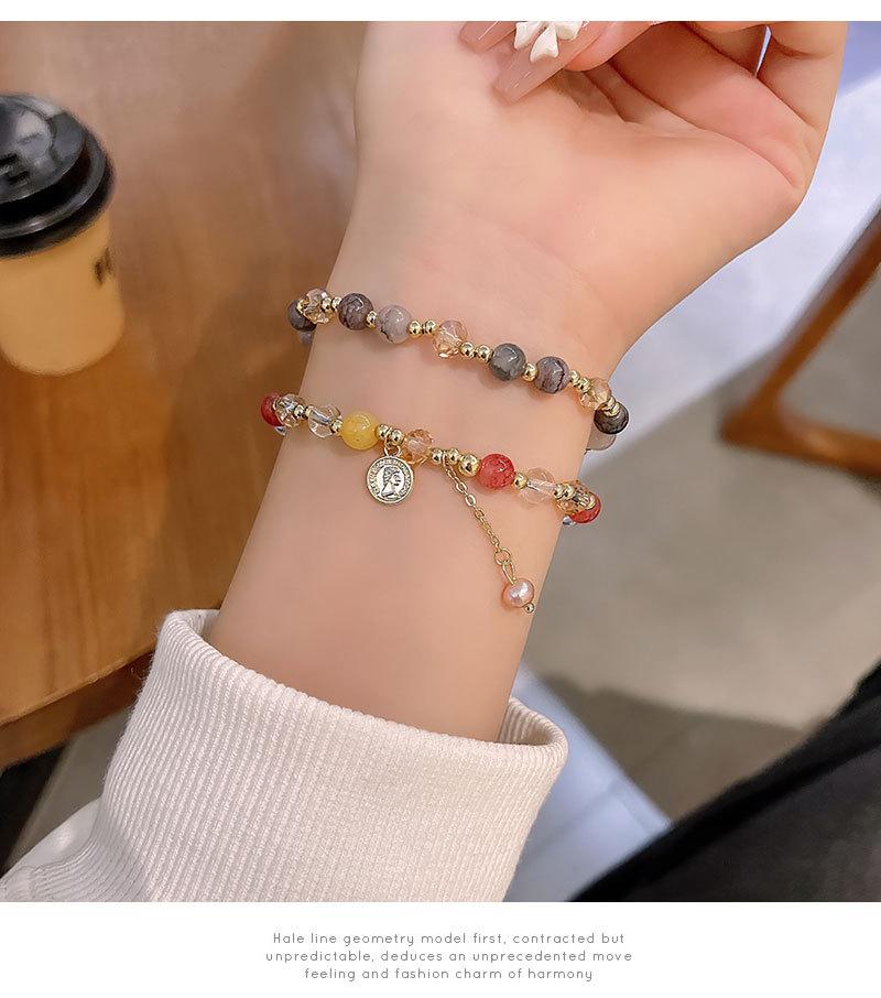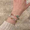 Pulsera de Cuentas de Perlas de Calcedonia de Doble Capa para Mujer Pulsera Superpuesta Vintage de Lujo Ligero Diseño de Nicho ins Pulsera con Sensación de Alta Gama