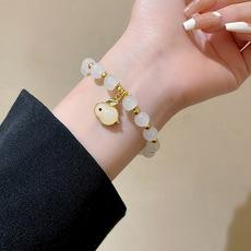 Pulsera de Calcedonia Conejo Año Zodiacal Estilo Nacional Retro Temperamento Cuentas Joyería de Mano Pulsera Pareja Regalo Novia