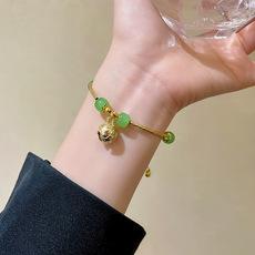 Pulsera de calcedonia verde estilo palaciego de nuevo estilo 2023 para mujer, diseño nicho de alta gama, pulsera de campana, joyería de mano superventas